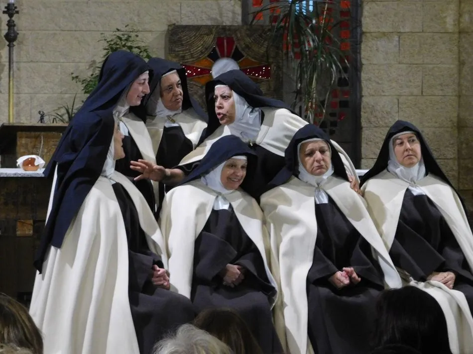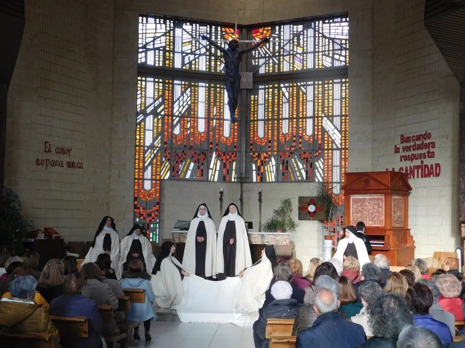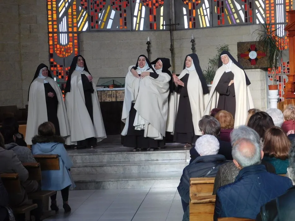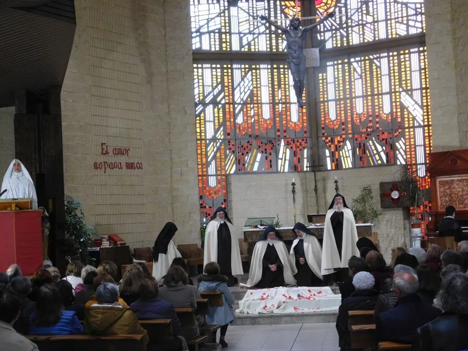 Y gracias a todos ellos se va desglosando la biografía de una Teresa, que no podría tener mejores testigos que los de las figuras que en el altar de esta moderna y sencilla iglesia, salidas de manos de artistas contemporáneos, presidieron la escena. San José, la Virgen, Jesús Crucificado pasan a formar parte de un público que parece incluirlos como necesarios testigos de una historia de mujer que con ?Teresa, la jardinera de la luz? llega a ras de suelo desde lo alto del Cielo.