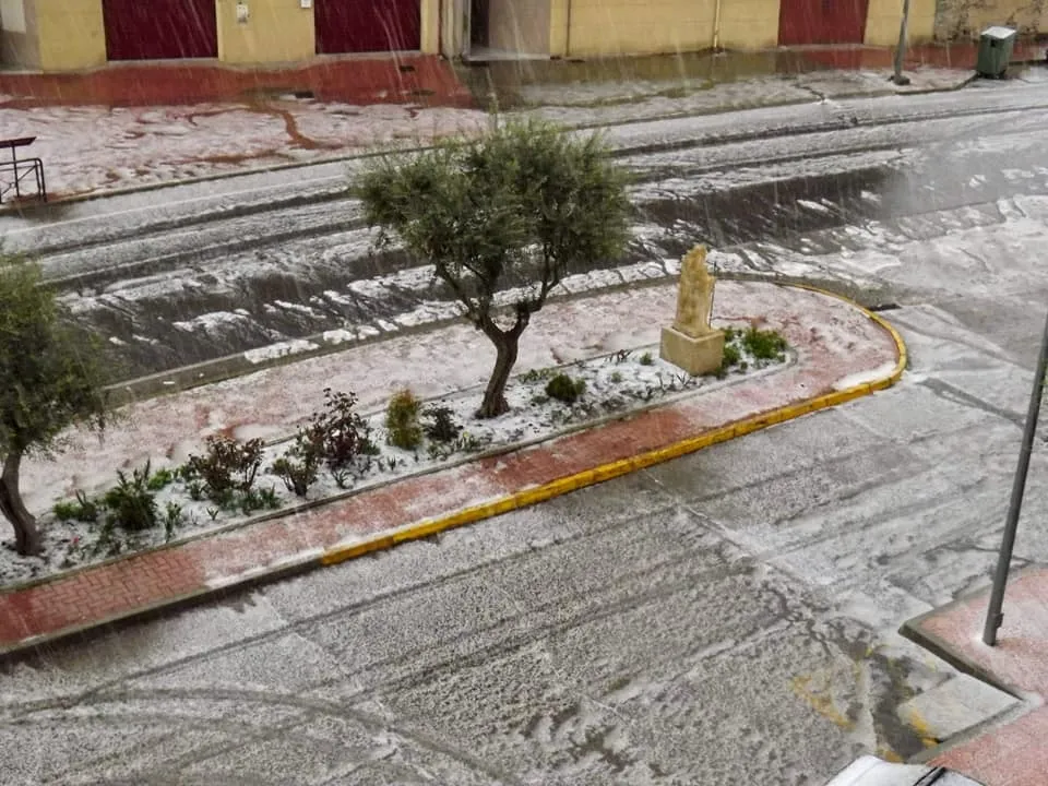 ue han visto como en apenas quince minutos el granizo caído ha dejado cubiertas las calles de blanco.