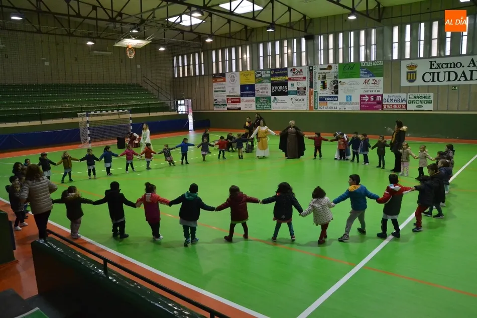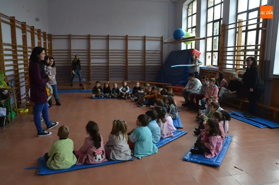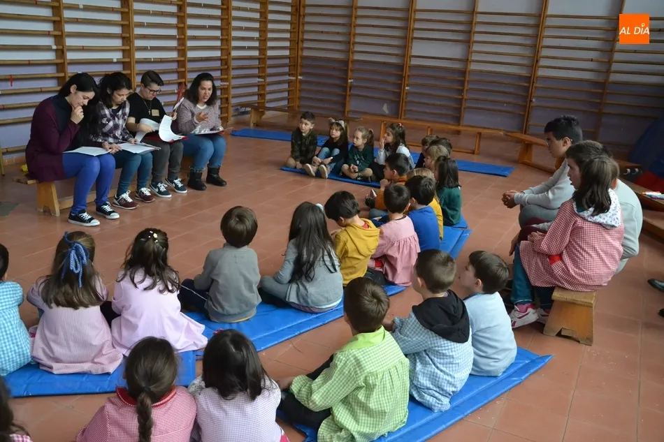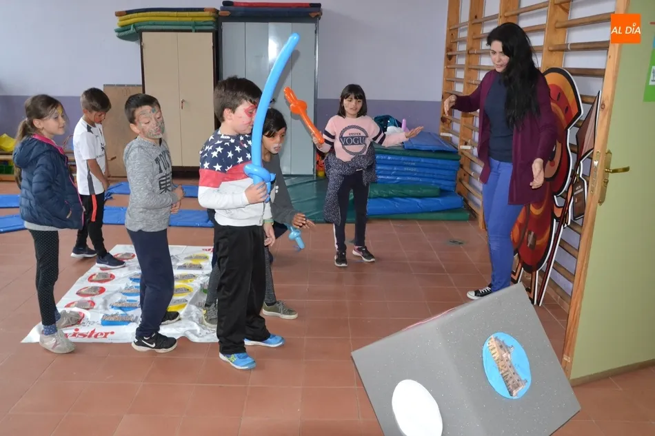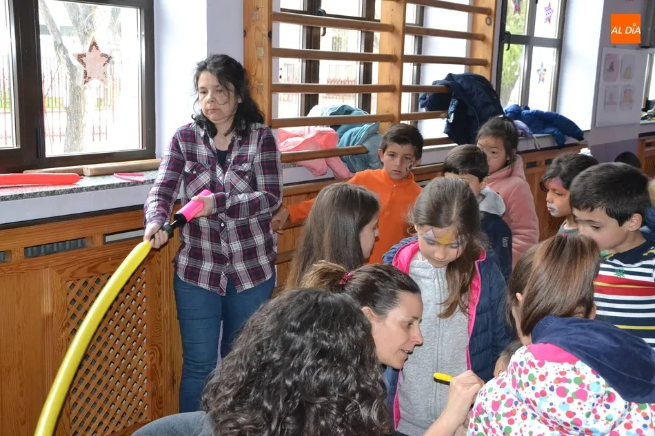 Por otro lado, el Colegio también contó durante la mañana del martes con las integrantes de la acción formativa 75 Aniversario, dentro de la ronda que están haciendo por los centros de Infantil y Primaria al hilo de los 3/4 de siglo que se cumplen de la Declaración de Ciudad Rodrigo como Conjunto Histórico-Artístico. Las alumnas realizaron con varios grupos una sesión en la que contaron un cuento temático, jugaron al Twister, y se pintaron las caras, entre otras actividades.