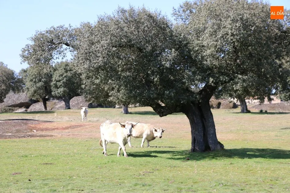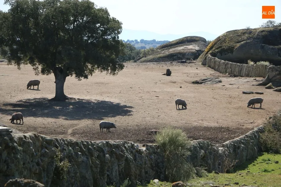 En sus casi 900 hectáreas bañadas por el río Huebra y bajo cientos de encinas pasta ganado bravo, vacuno de carne y cerdos ibéricos, haciendo viable su gestión y colocándose como un recurso turístico gracias, también, al Aula de la Naturaleza.