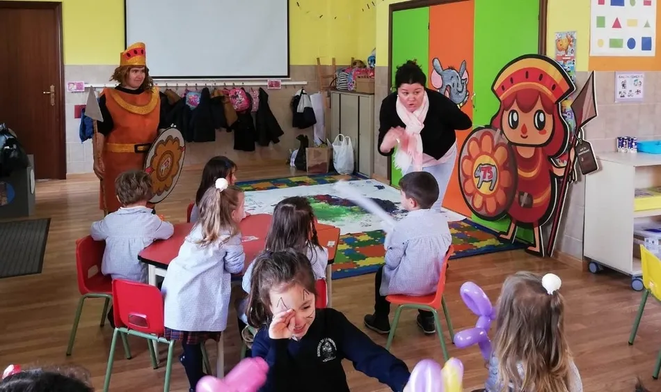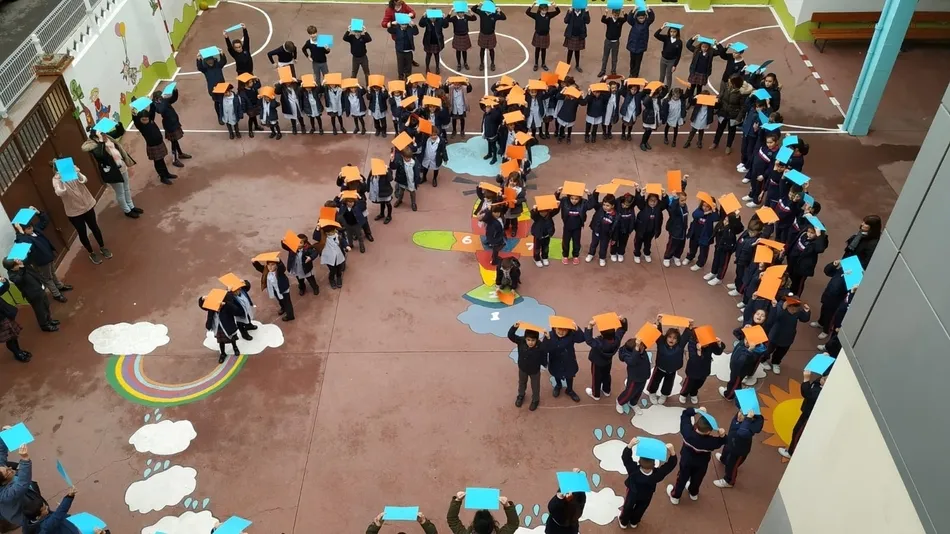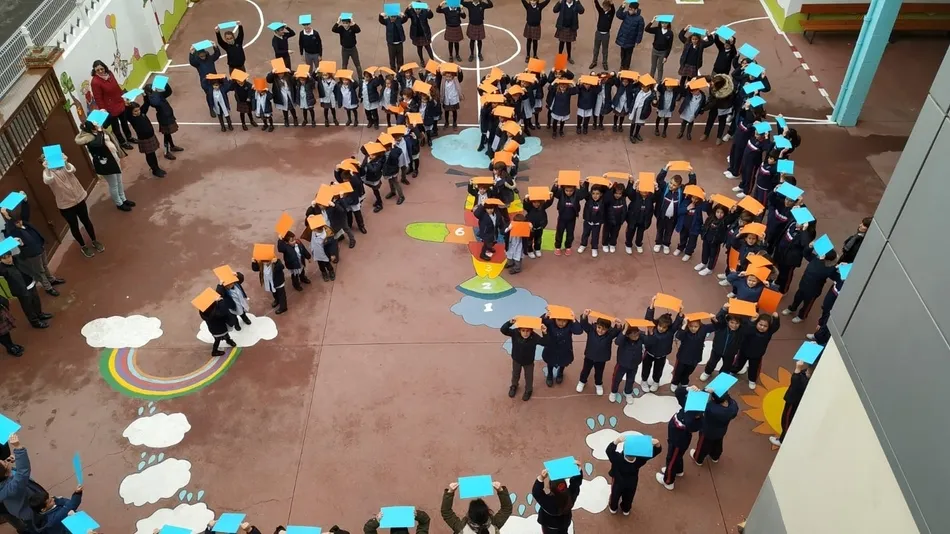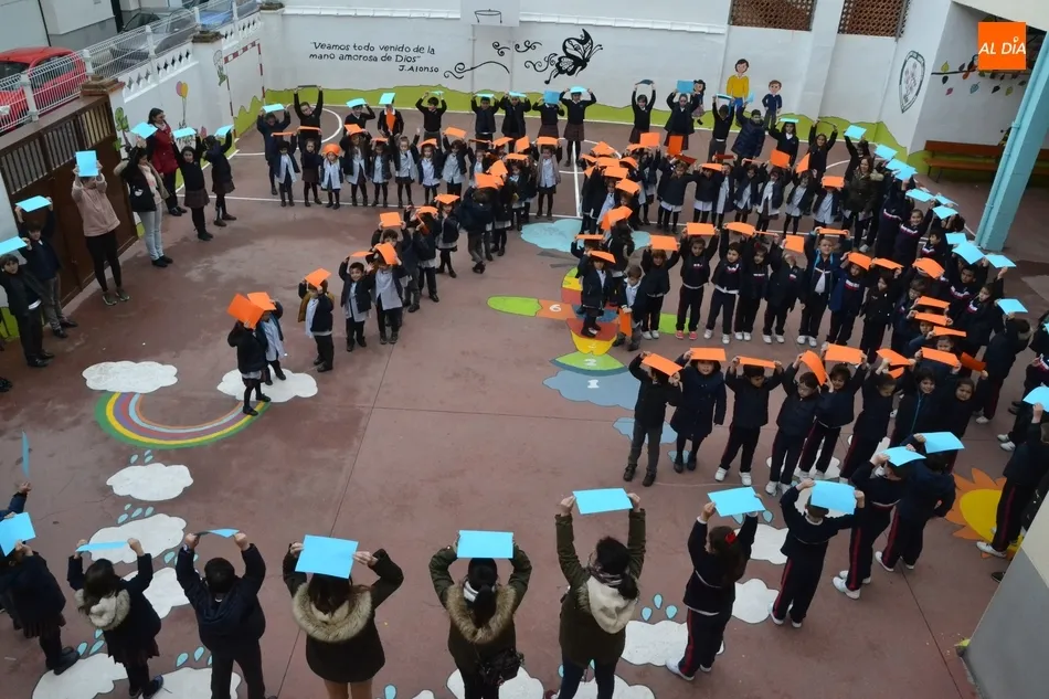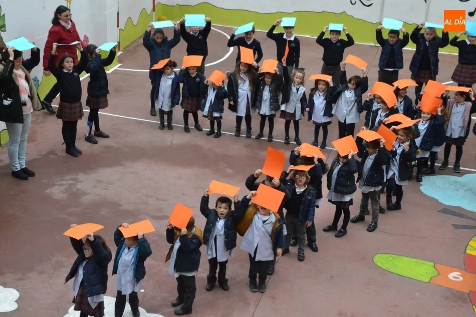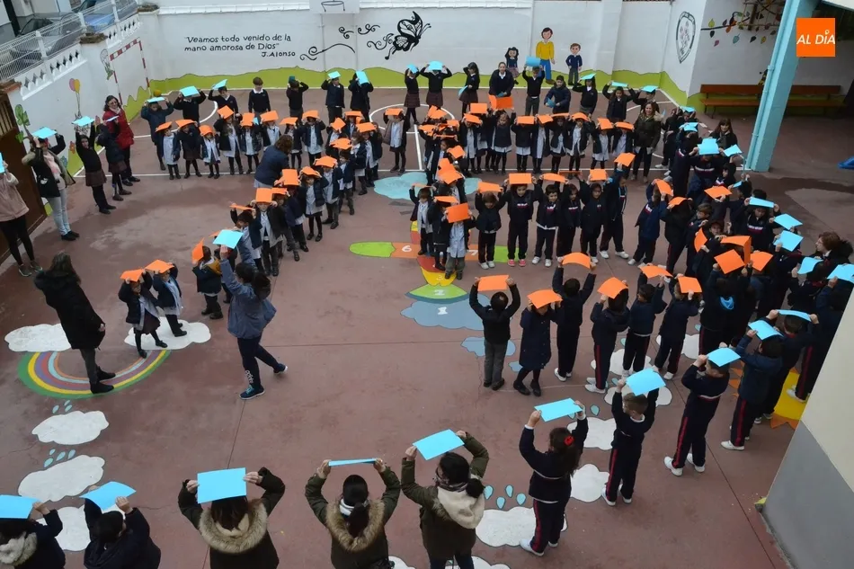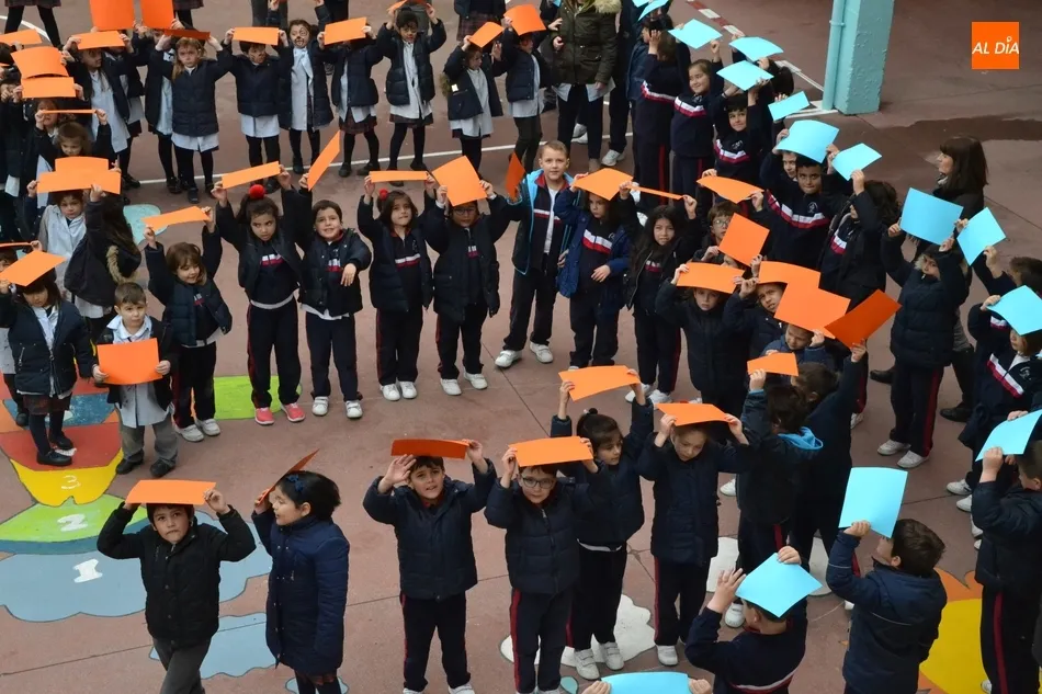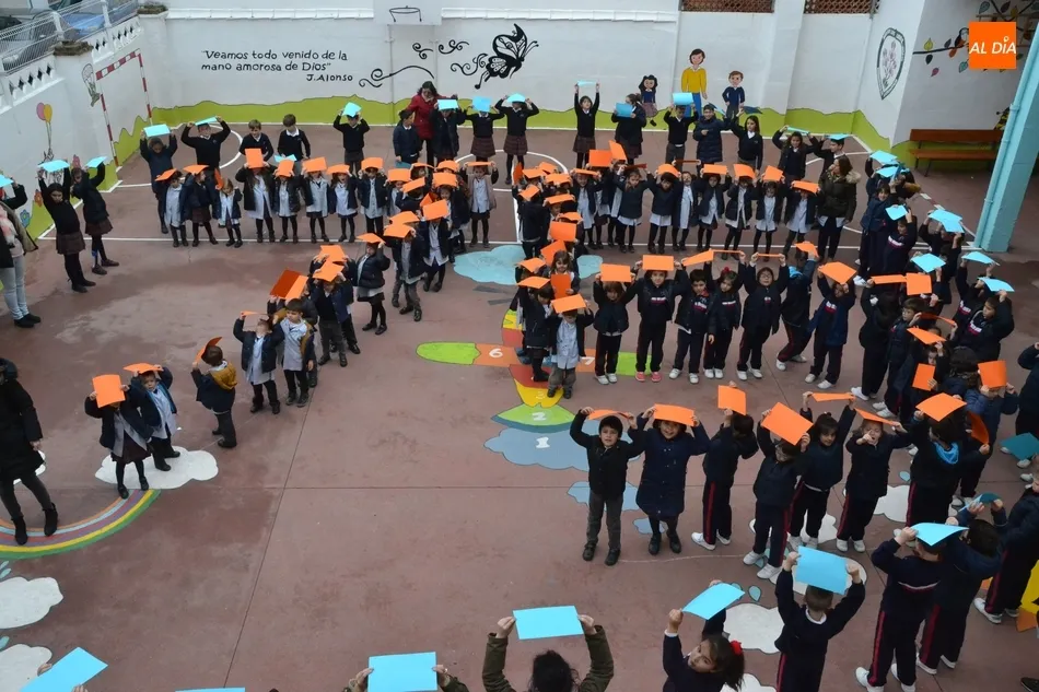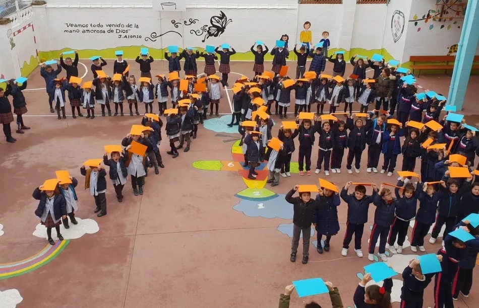 Posteriormente, se acercaron a la sede de Conde de Foxá de Misioneras-Santa Teresa, donde desarrollaron actividades con varios grupos: un Twister, un juego de cartas o una sesión de pintacaras, antes de rematar su estancia en el centro con la configuración gracias a los alumnos de un gran mosaico humano del 75 Aniversario en el patio del centro. Este jueves, la AFE 75 Aniversario llegará a la Escuela Infantil José Manuel Hidalgo.