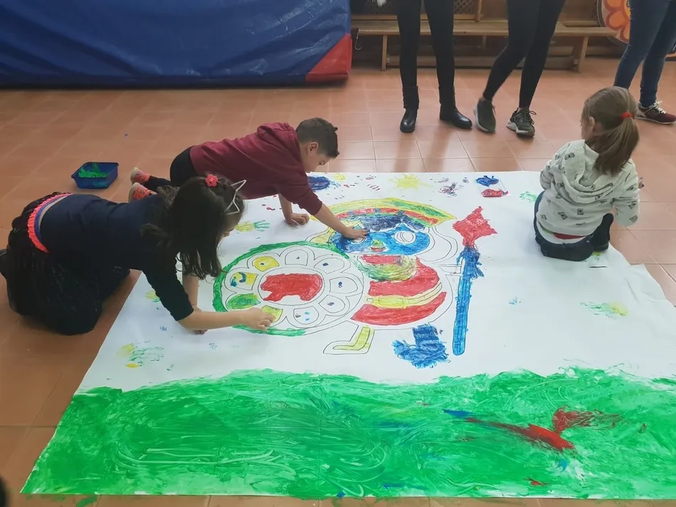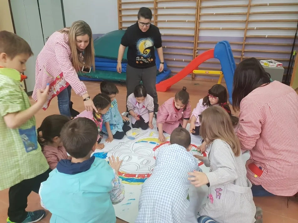 En el primero de ellos -donde ya habían estado también en la mañana del martes-, la actividad estuvo centrada en el pintado de una reproducción a gran tamaño del Ídolo de Ciudad Rodrigo.