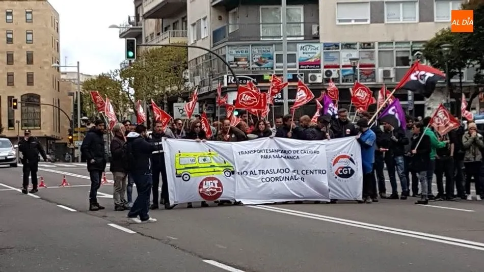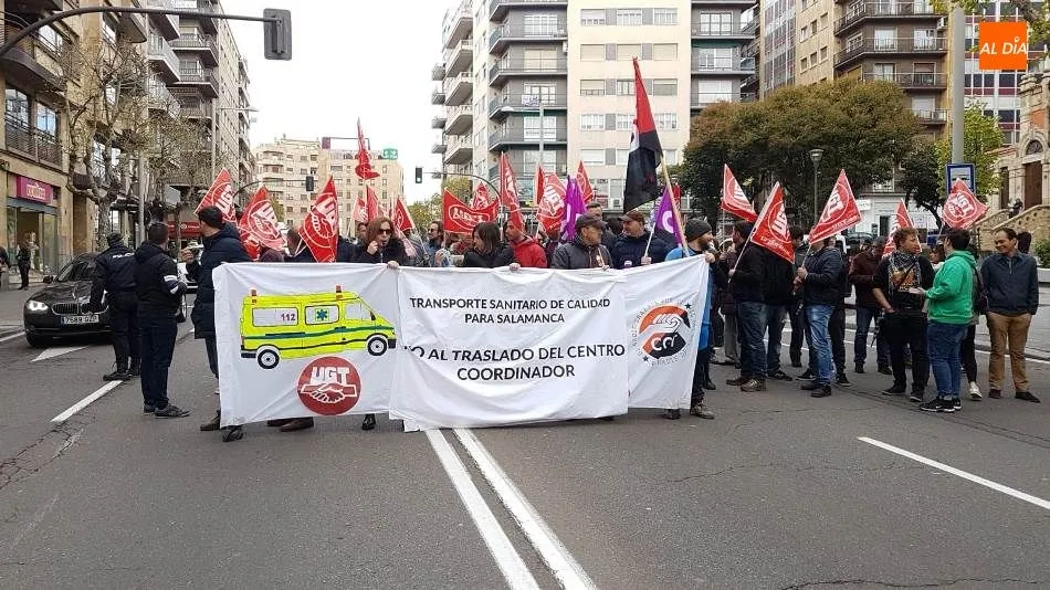 Los trabajadores de ambulancias de Salamanca siguen con sus movilizaciones contra el cierre de su centro de coordinación. La última concentración tenía lugar este miércoles, en la avenida de Mirat, ante la Gerencia de Salud de Área, donde reclamaban que se mantenga este servicio en la ciudad, ya que ?da trabajo a 14 personas y gestiona los recursos sanitarios no urgentes de la provincia?.