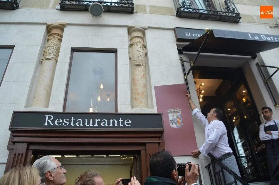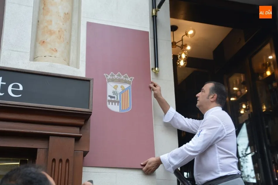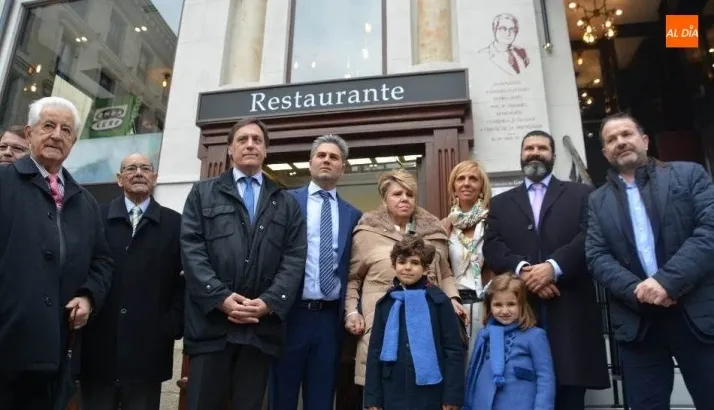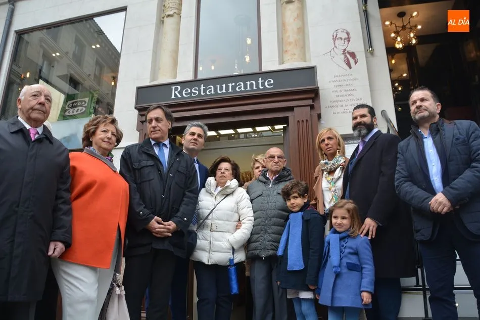 Emotivo acto para el descubrimiento de la inscripción en la fachada del restaurante, promovida por el Ayuntamiento y la Asociación de Empresarios de Hostelería de Salamanca