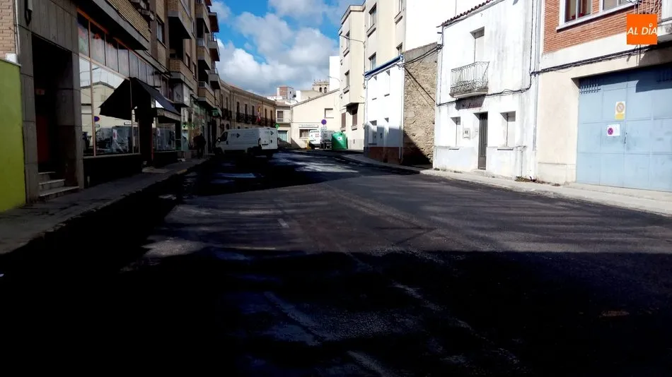 Operarios de la empresa adjudicataria comenzaban con el vertido de asfalto sobre la calle Pedro Velasco, a la que seguirá San Roque y Amparo