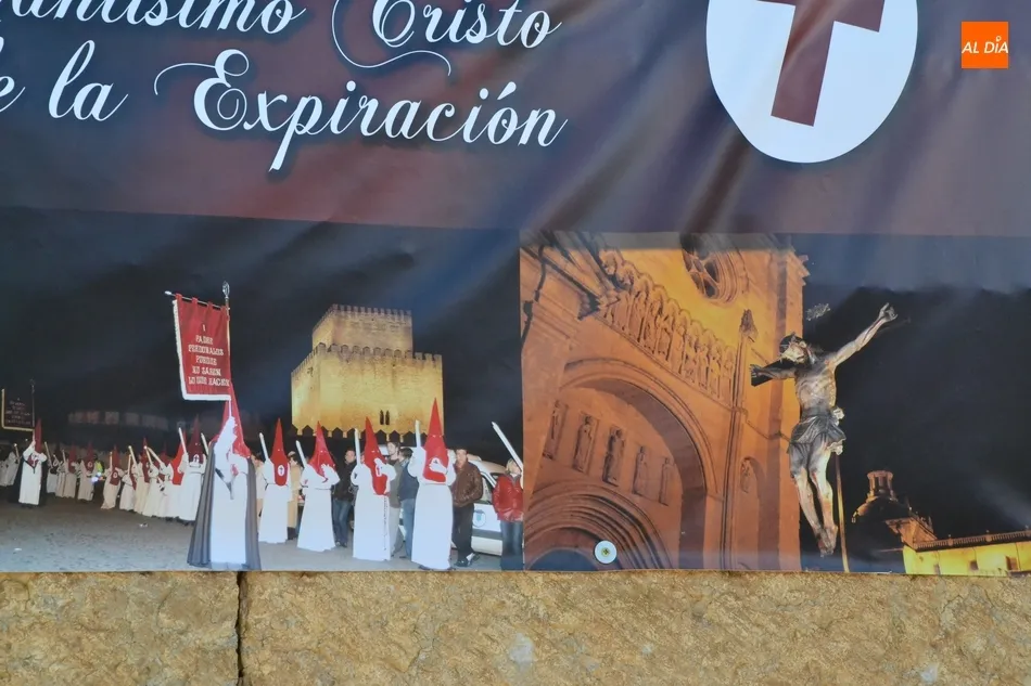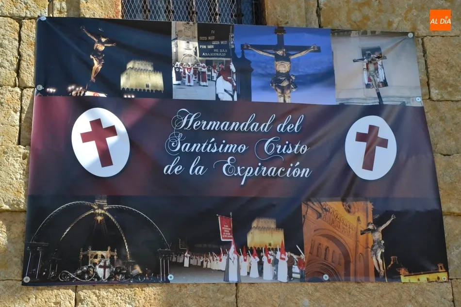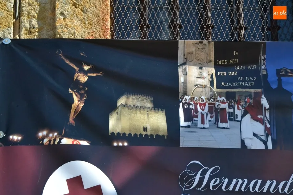 La Hermandad del Santísimo Cristo de la Expiración/Cofradía del Silencio de Ciudad Rodrigo ha decidido ir dotando de ambiente semanasantero a la Plazuela Cristóbal de Castillejo donde se encuentra su sede eclesiástica, la Iglesia de San Pedro-San Isidoro, con la colocación de una lona.
