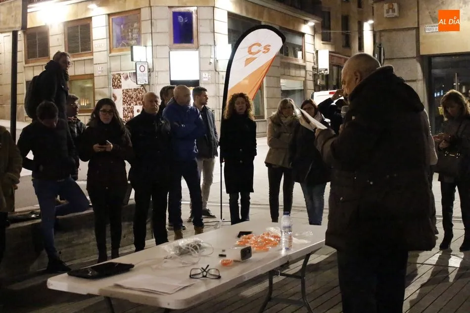 Los candidatos de Ciudadanos por Salamanca al Congreso de los Diputados y al Senado han realizado esta noche la tradicional pegada de carteles con motivo de la apertura de campaña para las elecciones generales del 28 de abril.