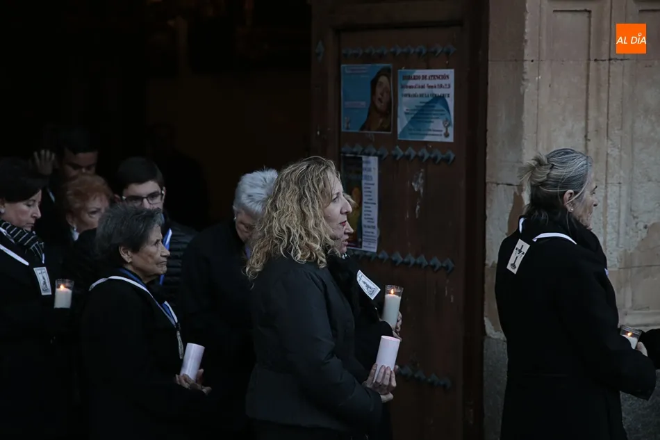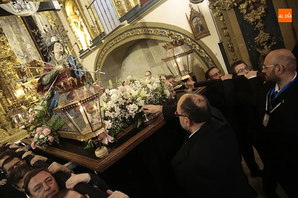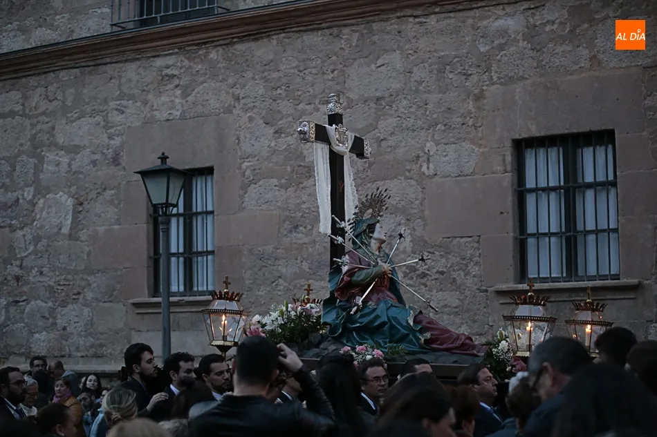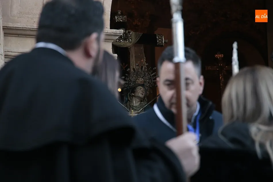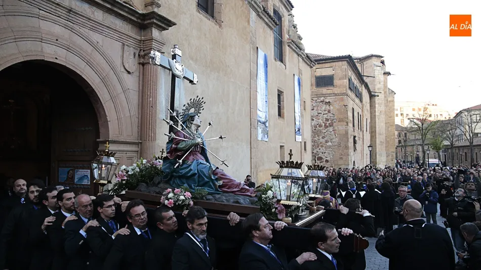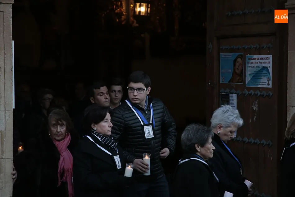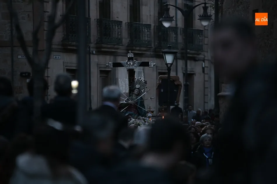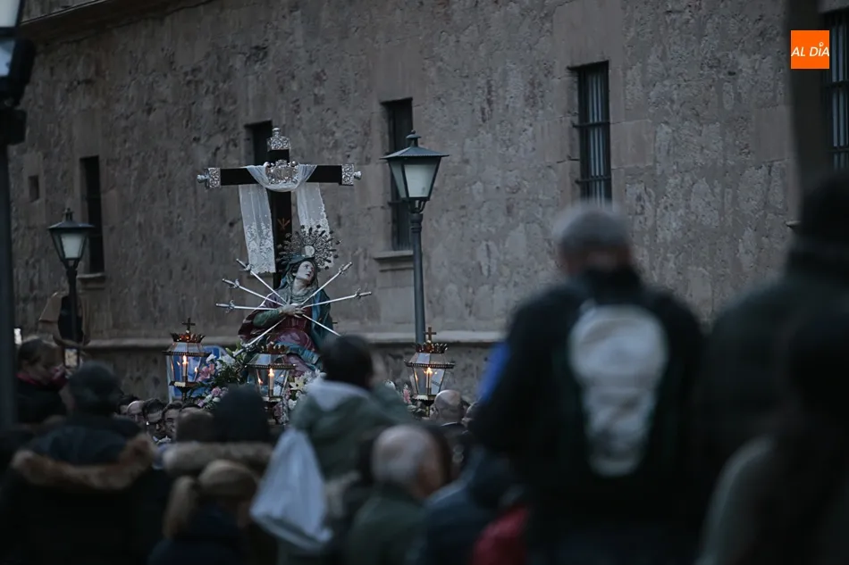 La procesión de La Dolorosa de la Vera Cruz ha inaugurado esta tarde los actos de la Semana Santa salmantina. Después de que la lluvia impidiera su salida el año pasado, los fieles han podido acompañar a la imagen en el recorrido que ha partido a las 20.30 horas de la iglesia de la Vera Cruz y que ha repetido la estructura habitual del desfile.