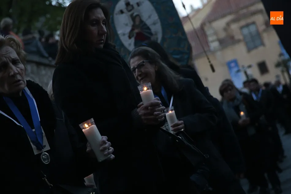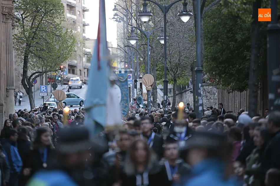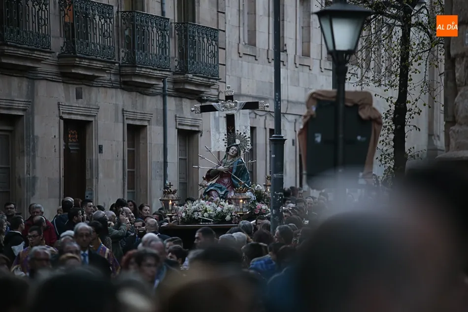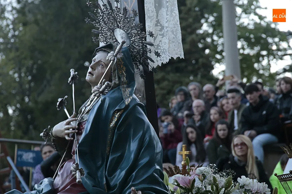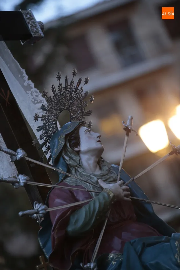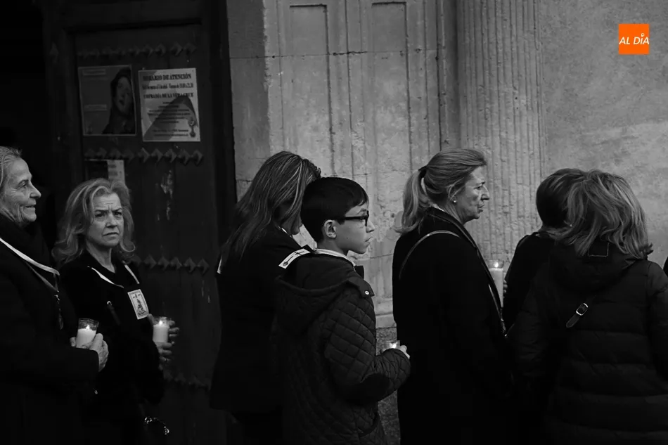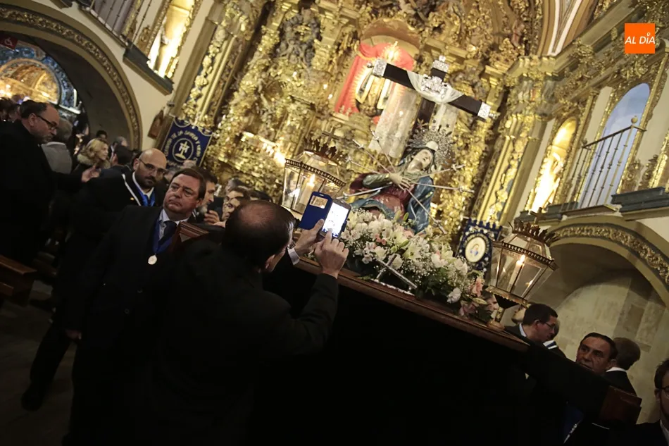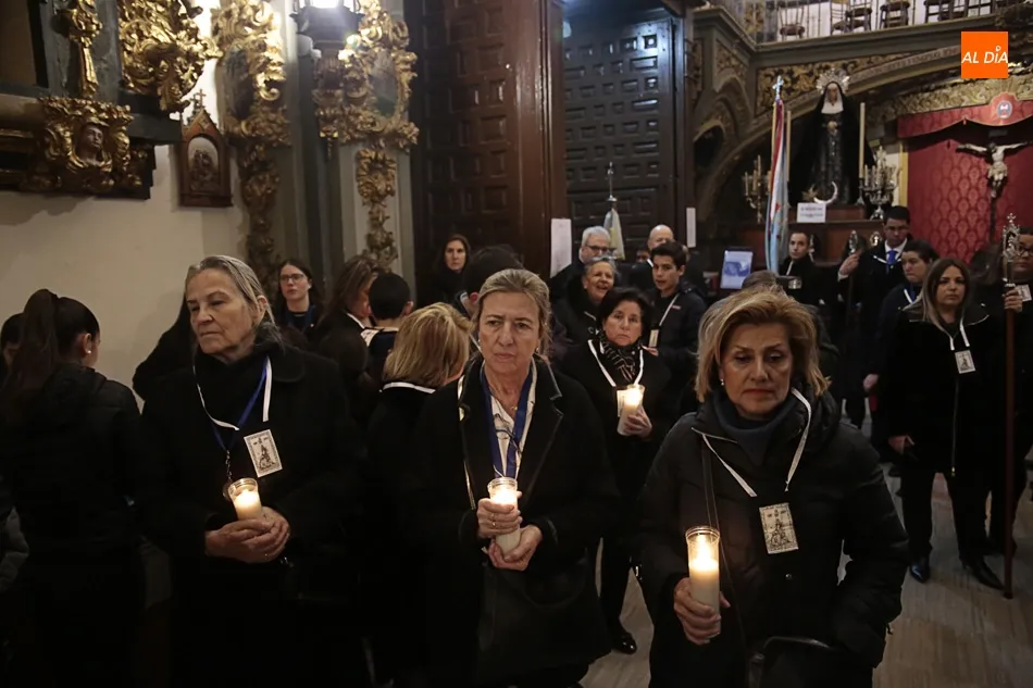 La procesión de La Dolorosa de la Vera Cruz ha inaugurado esta tarde los actos de la Semana Santa salmantina. Después de que la lluvia impidiera su salida el año pasado, los fieles han podido acompañar a la imagen en el recorrido que ha partido a las 20.30 horas de la iglesia de la Vera Cruz y que ha repetido la estructura habitual del desfile.
