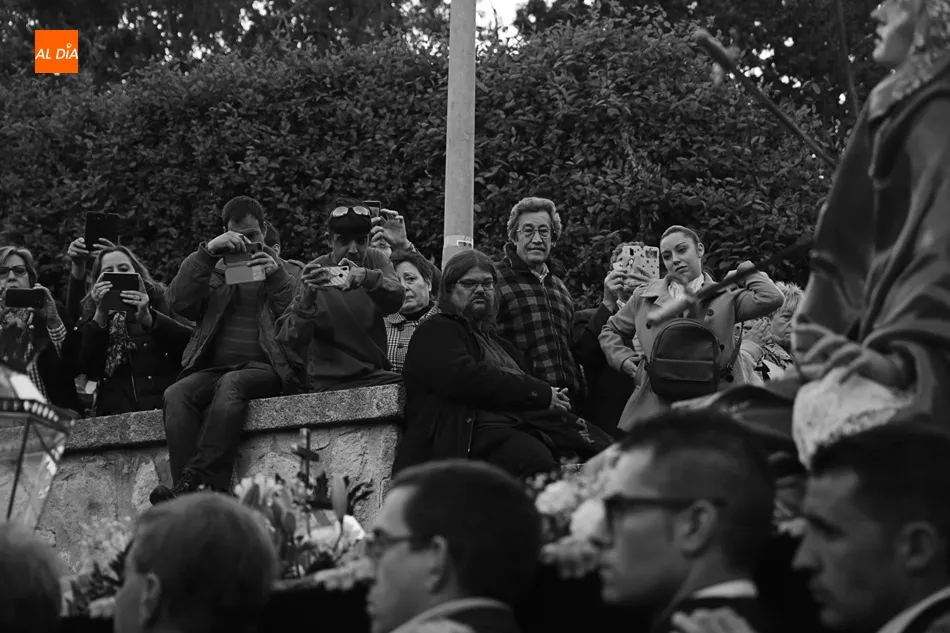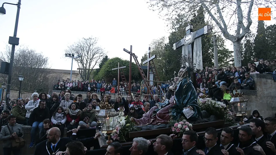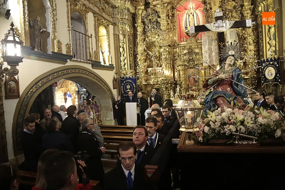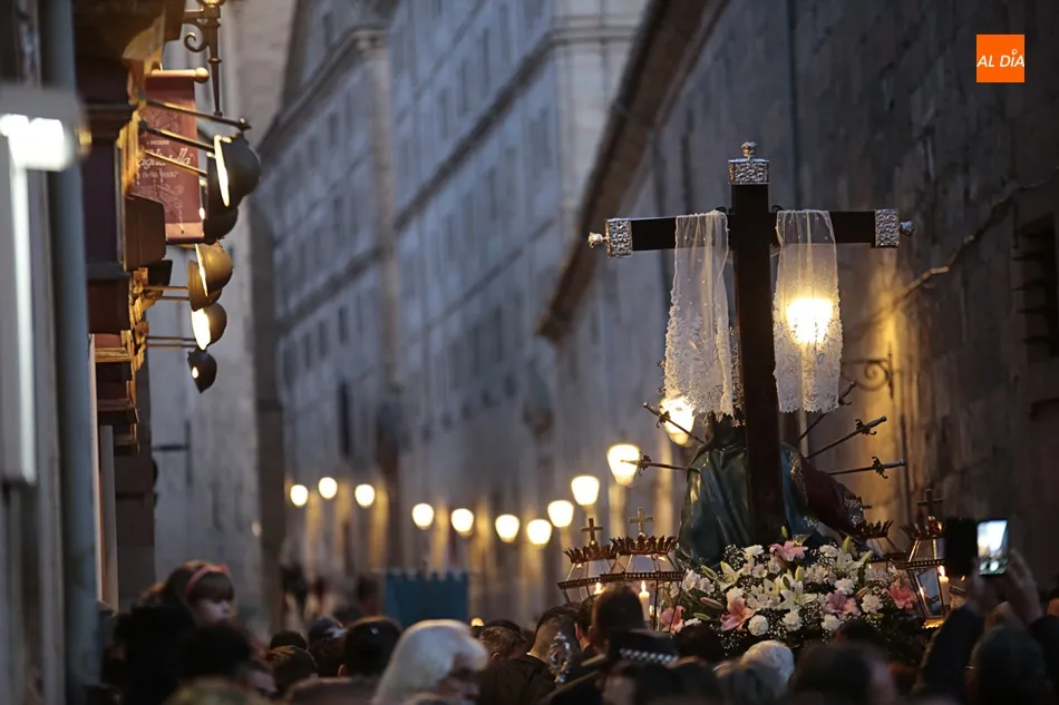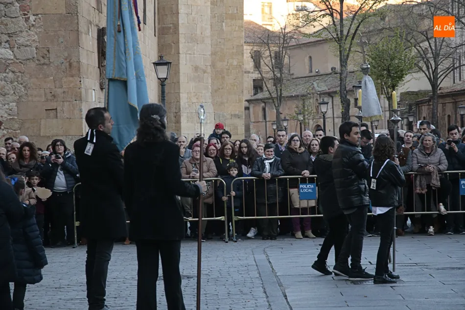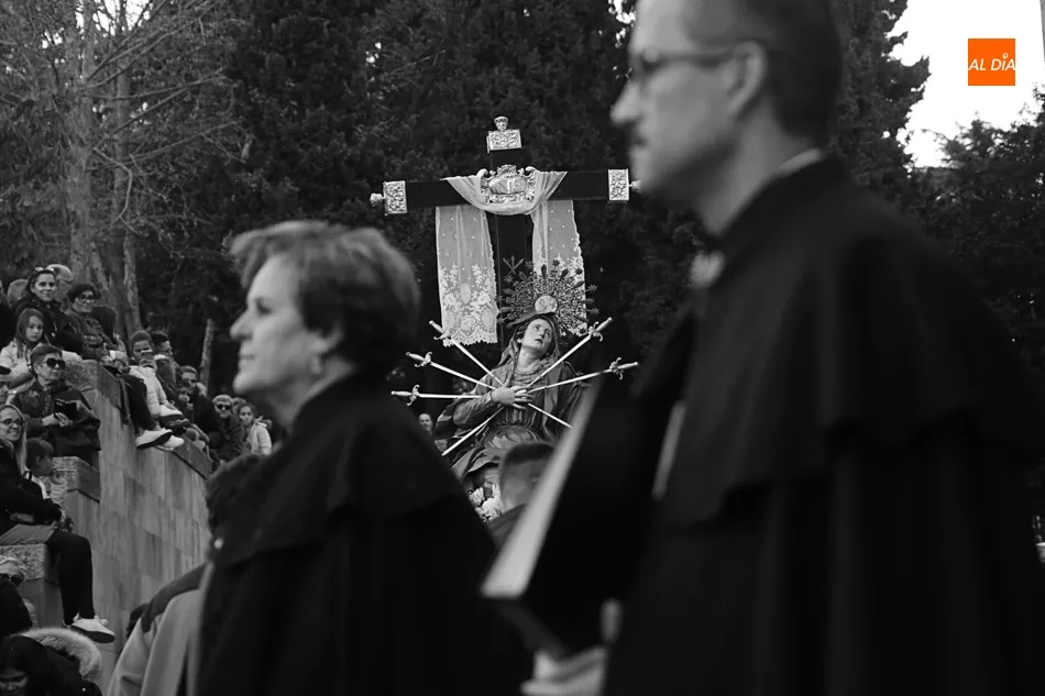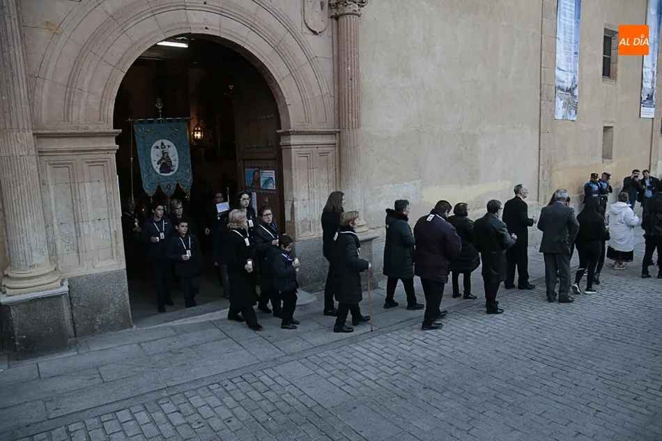 El desfile de la Ilustre Cofradía de la Santa Cruz del Redentor y de la Purísima Concepción de la Virgen, que exhibe el paso de Nuestra Señora de los Dolores, de Felipe del Corral (siglo XVIII), ha recorrido las calles Domínguez Berrueta, Ramón y Caja, Plaza de las Agustinas, Compañía y Plaza de San Benito, donde ha tenido lugar el acto Vía Matris frente a la casa de las Madres de Dios.
