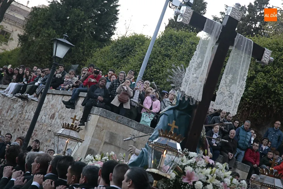 De esta manera, el acto central, el Vía Matris, se ha celebrado en la Plaza de San Benito con la lectura de los dolores de la Virgen, el camino que recorrió María de regreso desde el Santo Sepulcro hasta su casa.