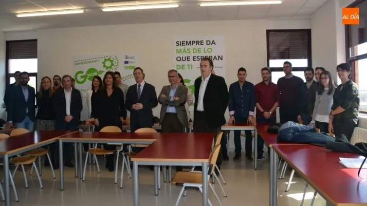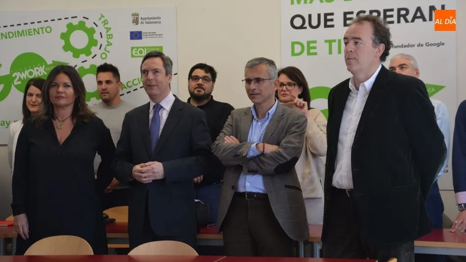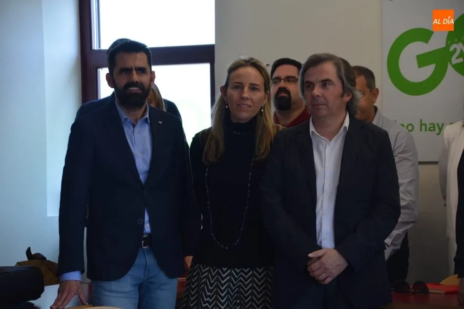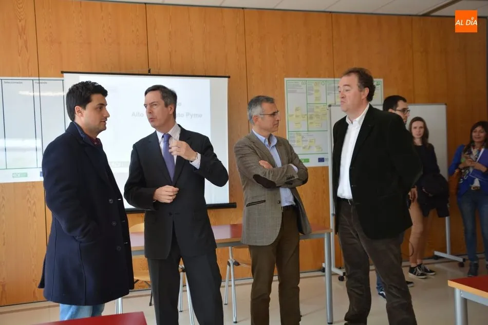 El concejal de Economía, Enrique Sánchez-Guijo, acompañado por el director de programas de la Escuela de Organización Industrial, Luis Sánchez Henríquez, y al presidente de la Confederación de Organizaciones Empresariales de Salamanca (Confaes), Juan Manuel Gómez, ha dado esta tarde la bienvenida a los veinte empresarios salmantinos participantes en el Centro de Alto Rendimiento PYME.