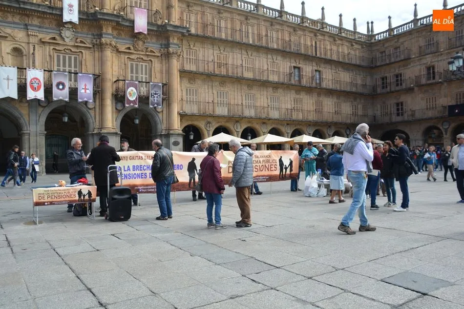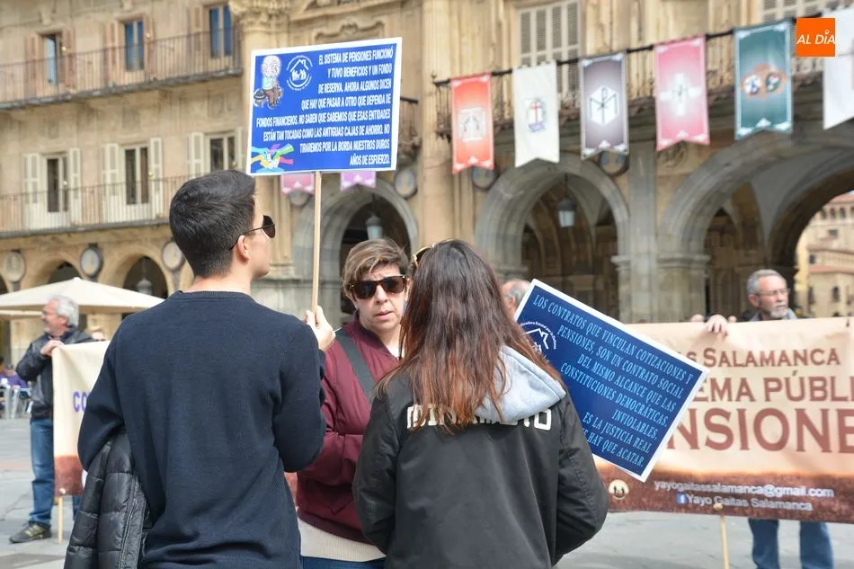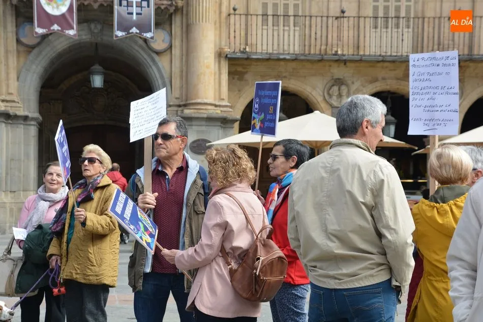 Por eso, y para hacerse oír, se manifestaron esta mañana en la Plaza Mayor con el objetivo de hacer un llamamiento a toda la ciudadanía para preservar el futuro de las pensiones actuales y futuras.