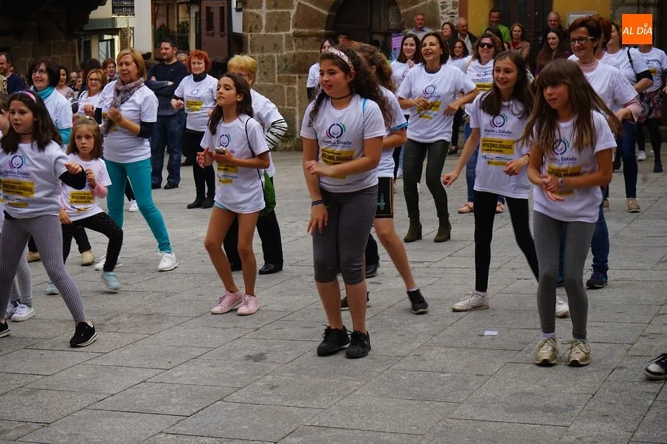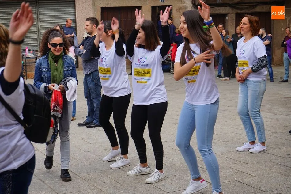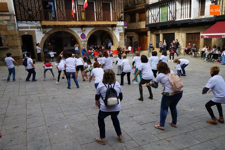 El Ayuntamiento de Sotoserrano ha hecho bailar a los vecinos con una entretenida propuesta que además ha servido para concienciar al público sobre la violencia de género. A las seis de la tarde se convocó a todo el que quisiera a participar en una animada sesión de baile, y cada participante recibió una camiseta de regalo. Más de medio cente