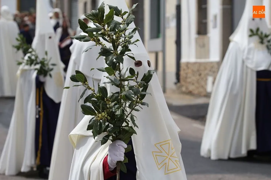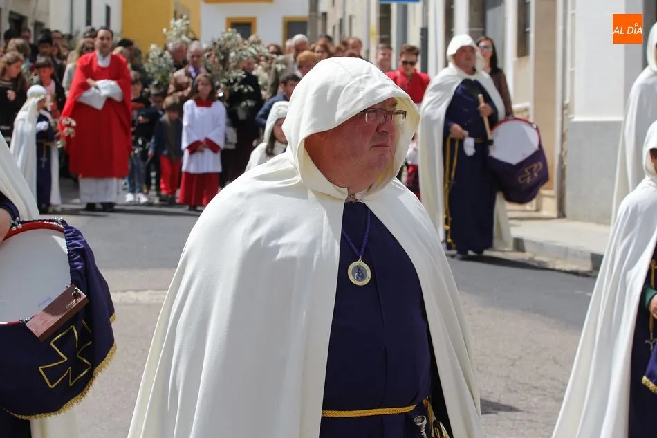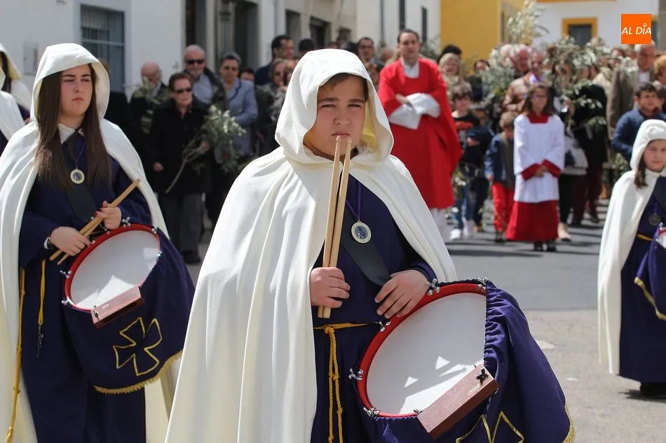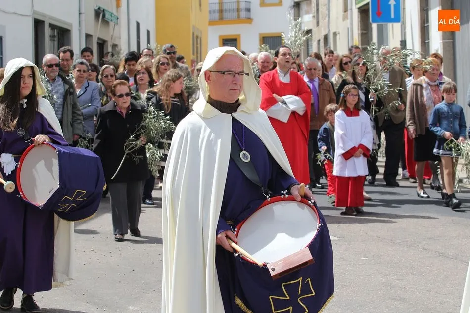 A la una de la tarde se reunieron los fieles en la iglesia parroquial para la bendición de ramos, para a continuación desfilar por las calles del centro de Ledrada. Los hermanos cofrades encabezaron la procesión con los diferentes símbolos y el pendón con la imagen de Jesucristo. No faltó la sección musical de la Cofradía, que marcó el ritmo de la procesión, la cual se realizó con el debido respeto y silencio. De regreso al templo, se celebró la santa misa.