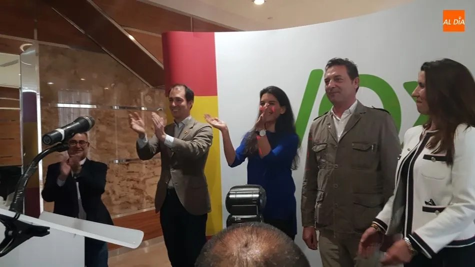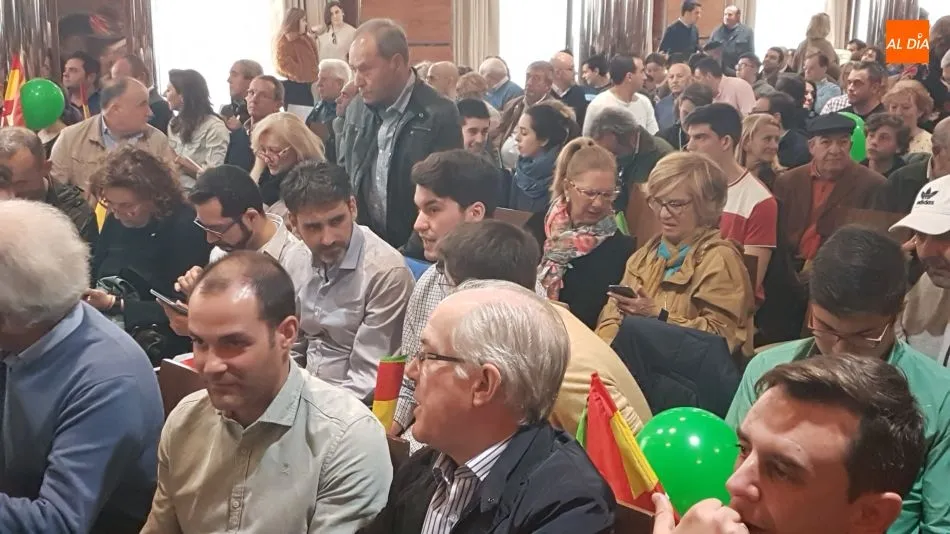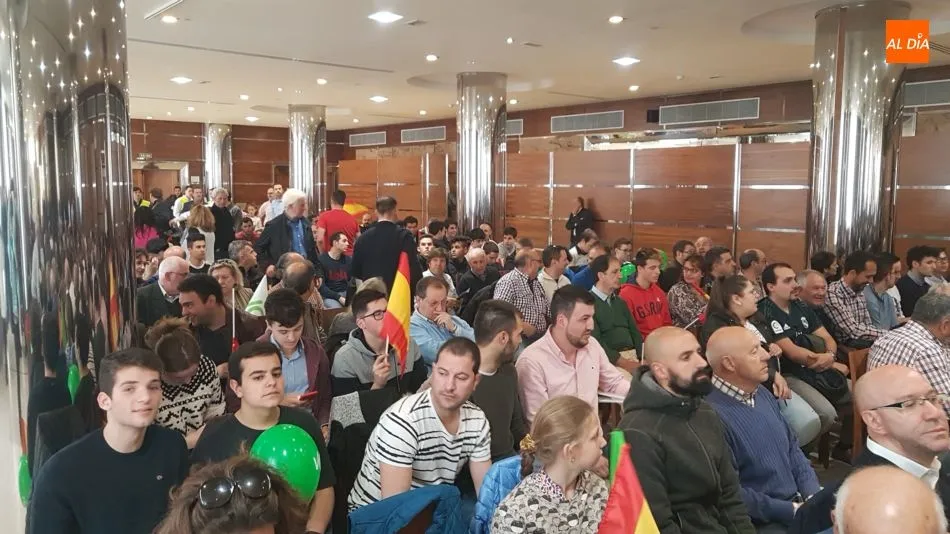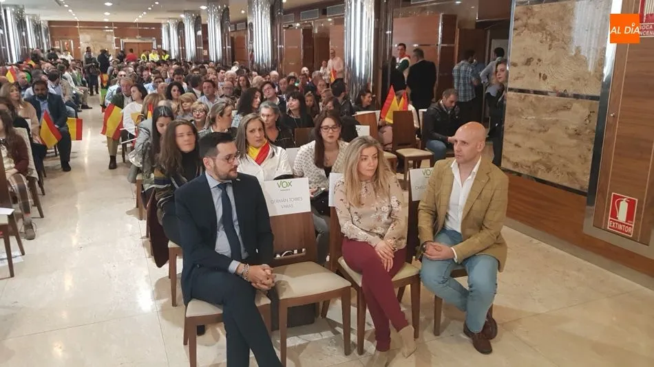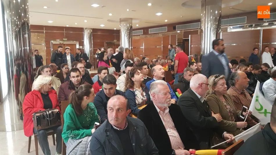 Víctor González, candidato de VOX al Congreso por Salamanca y vicesecretario primero del partido, se ha presentado ante los simpatizantes de la formación de Santiago Abascal en un acto que ha contado con la presencia de Rocío Monasterio, presidenta de VOX Madrid y vicesecretaria de Acción Social. Ni público a la puerta por falta de espacio en el interior, ni salón a rebosar, como sí ocurrió en la visita a Salamanca de Javier Ortega Smith el pasado 30 de enero. Menos público, pero de todas las edades y llegados de toda la provincia para la presentación del hasta ahora desconocido candidato de VOX al Congreso por la provincia.