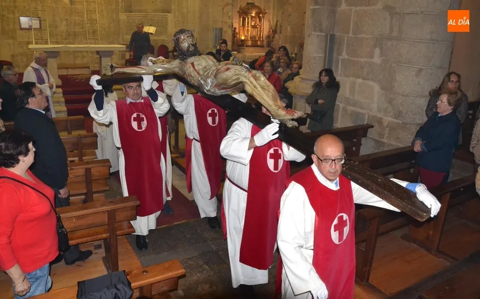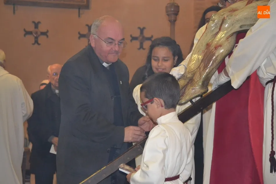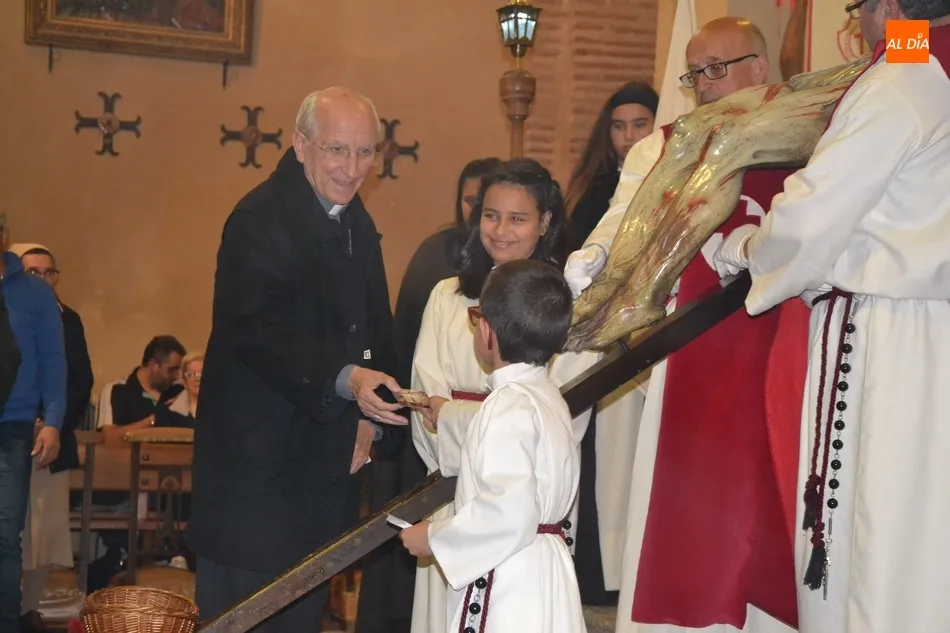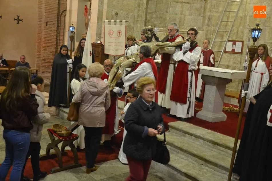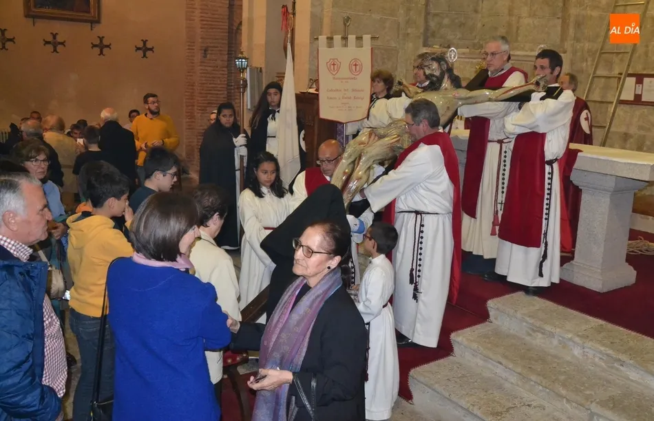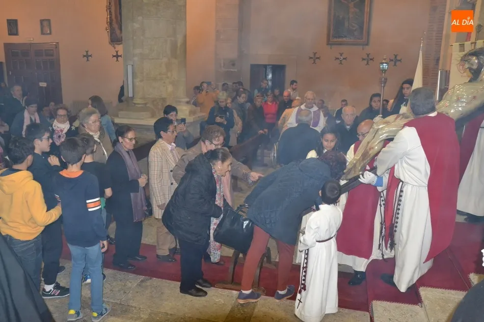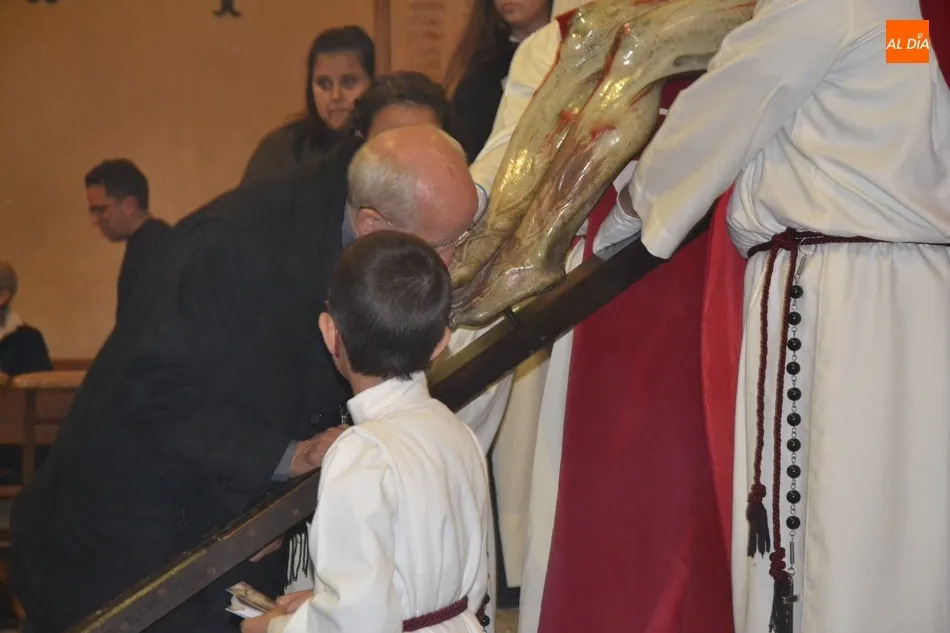 La Hermandad del Santísimo Cristo de la Expiración/Cofradía del Silencio de Ciudad Rodrigo celebró en la tarde del Martes Santo su primer acto público de esta Semana Santa: el tradicional besapiés a la imagen del Cristo que recorrerá en procesión las calles mirobrigenses en la noche del próximo Jueves Santo.