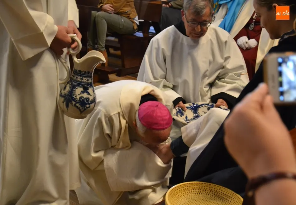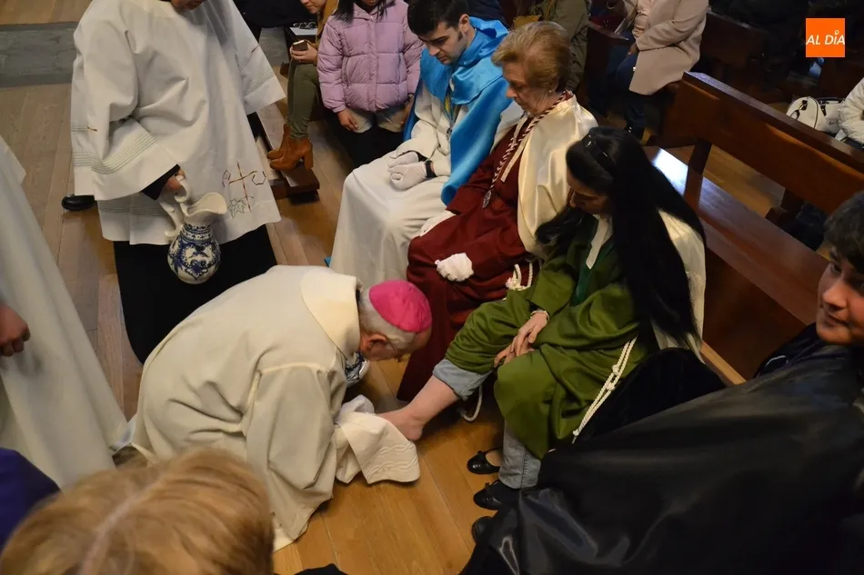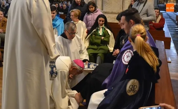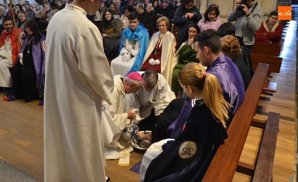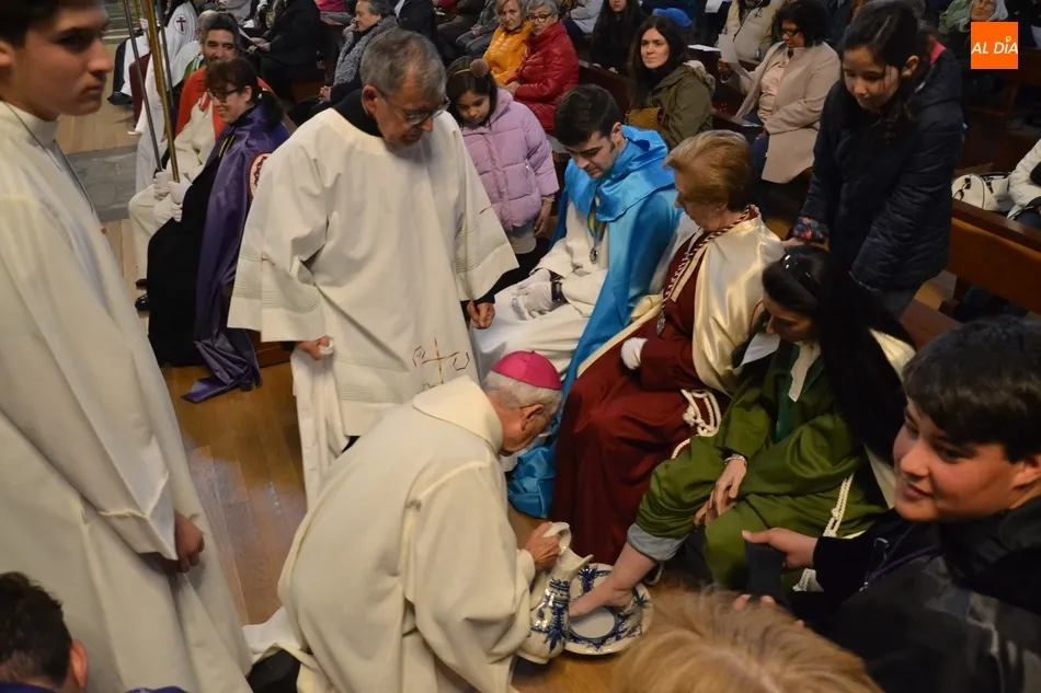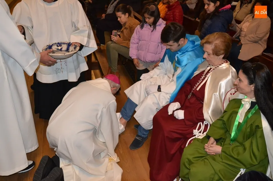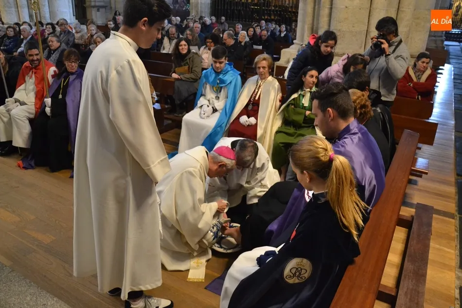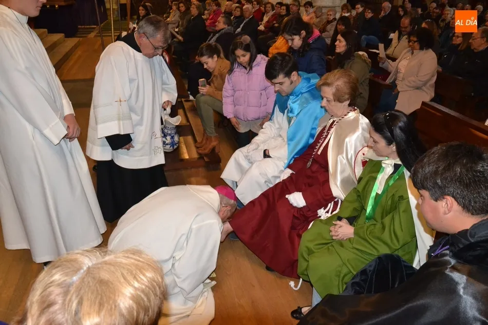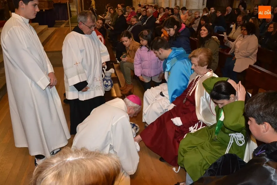 La celebración en la Seo incluyó el lavatorio de pies a miembros de las 7 Cofradías de la Semana Santa de Ciudad Rodrigo por parte de Jesús García Burillo, un rito implantado durante el tiempo que estuvo Raúl Berzosa como Obispo de la Diócesis Civitatense, para remarcar cómo se desarrolló la Última Cena de Jesucristo.