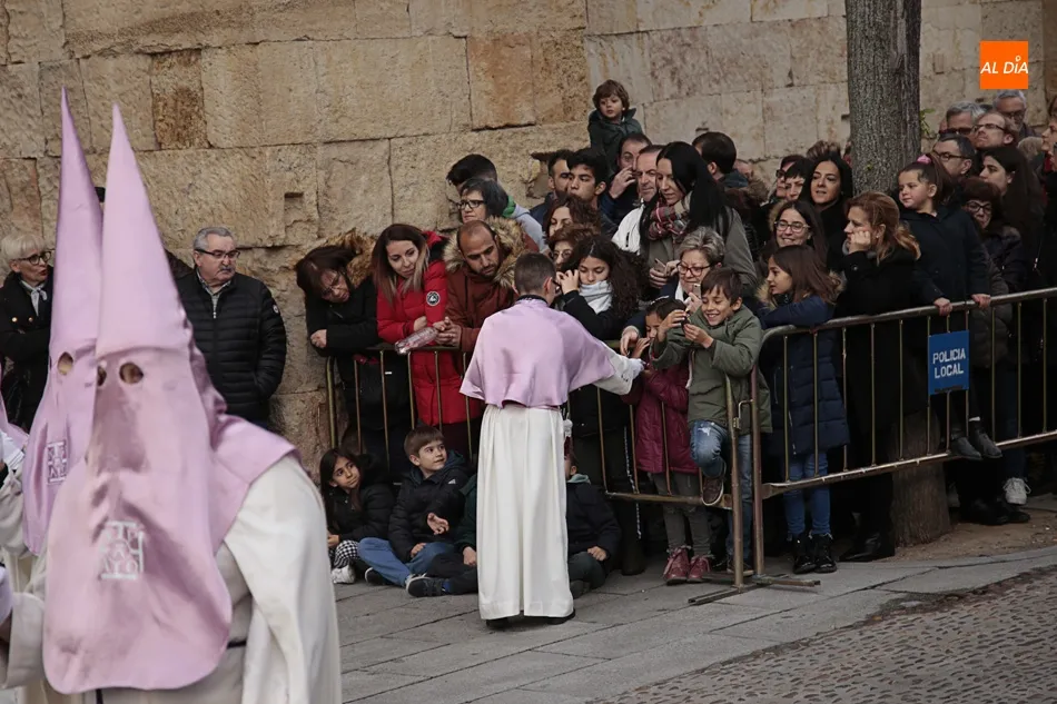 Recorrido (acortado por la amenaza de lluvia) : Convento de las Úrsulas, Domínguez Berrueta, Ramón y Cajal, Plaza de las Agustinas, Compañía, Serranos, Libreros, Calderón de la Barca, Benedicto XVI, Rúa Mayor, Quintana, Plaza del Poeta Iglesias, Plaza Mayor, Corrillo, Meléndez, Compañía, Plaza de Monterrey, Bordadores, Úrsulas y regreso al convento.