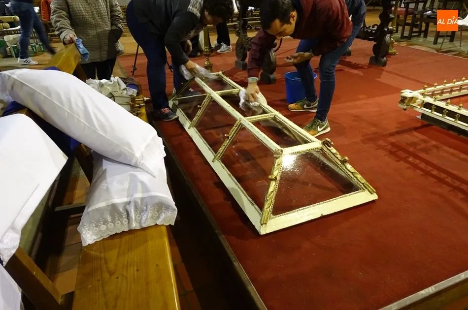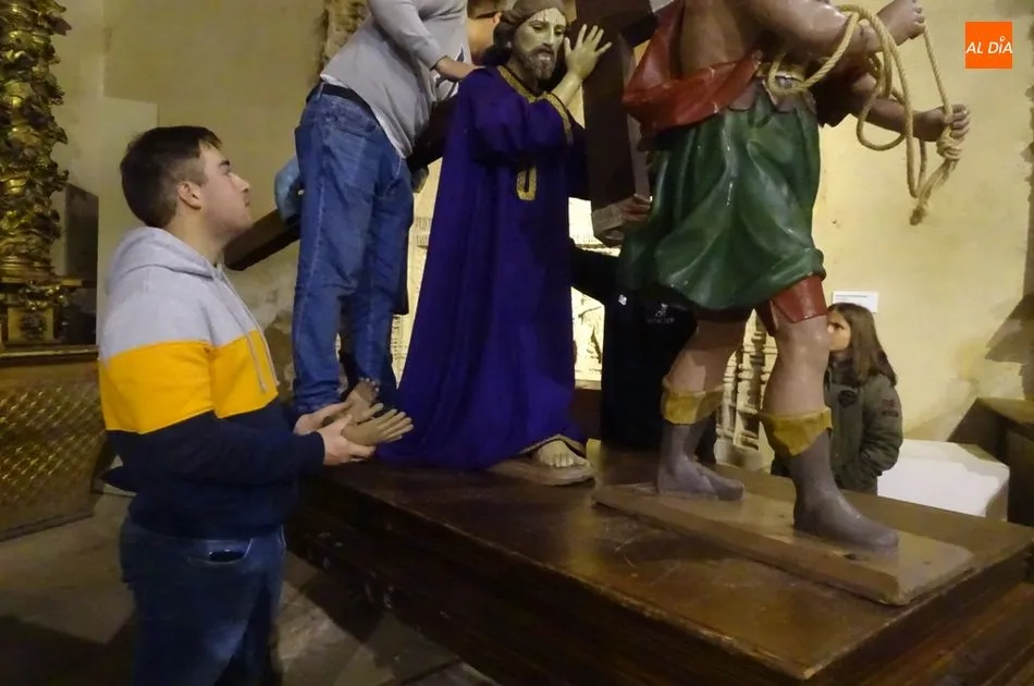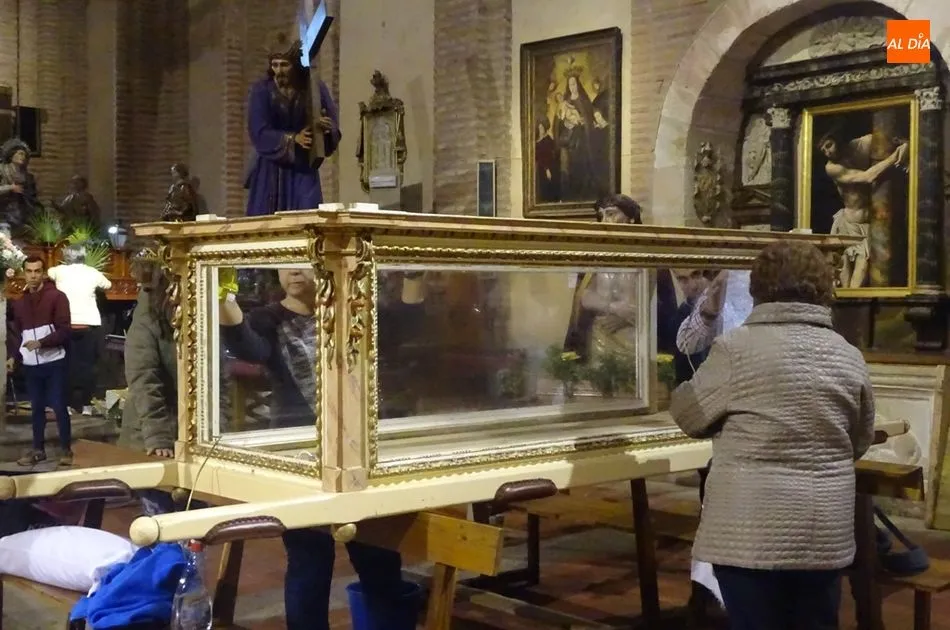 Los feligreses preparan los pasos para el Viernes Santo