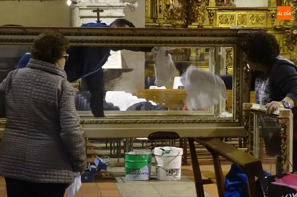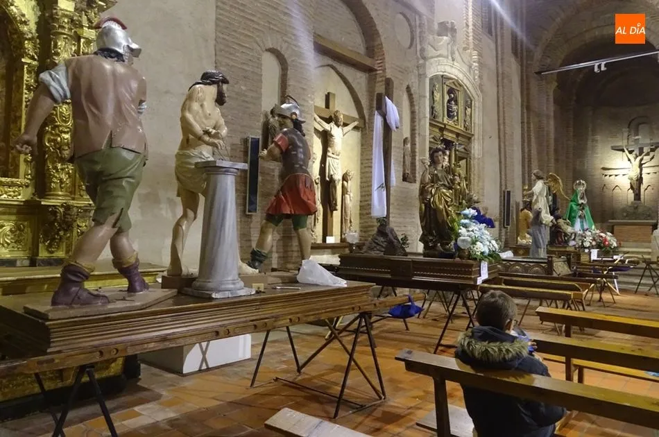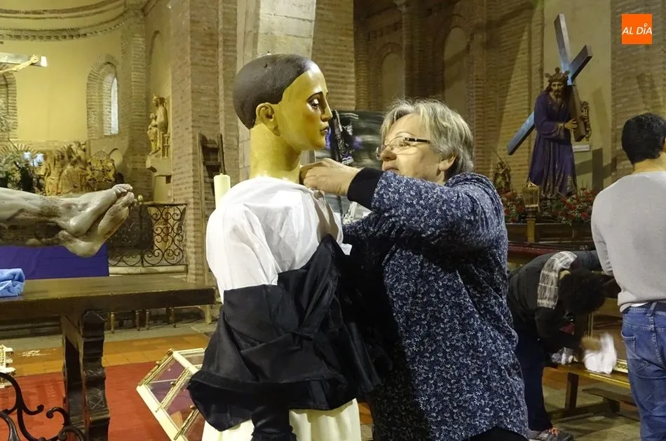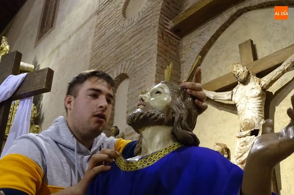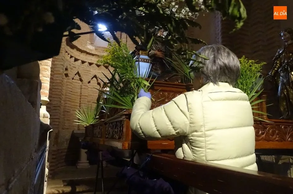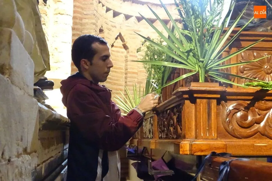 Los feligreses de la Cofradía de la Cruz y del Amor y los de la Cofradía de la Madre de Dios se han reunido esta mañana en la iglesia de San Juan para ultimar los preparativos de la semana santa albense. Entre los actos que han realizado se encuentran montar los pasos para el Viernes Santo, arreglar los imperfectos que se puedan encontrar en los pasos y colocar flores en cada uno de ellos.
