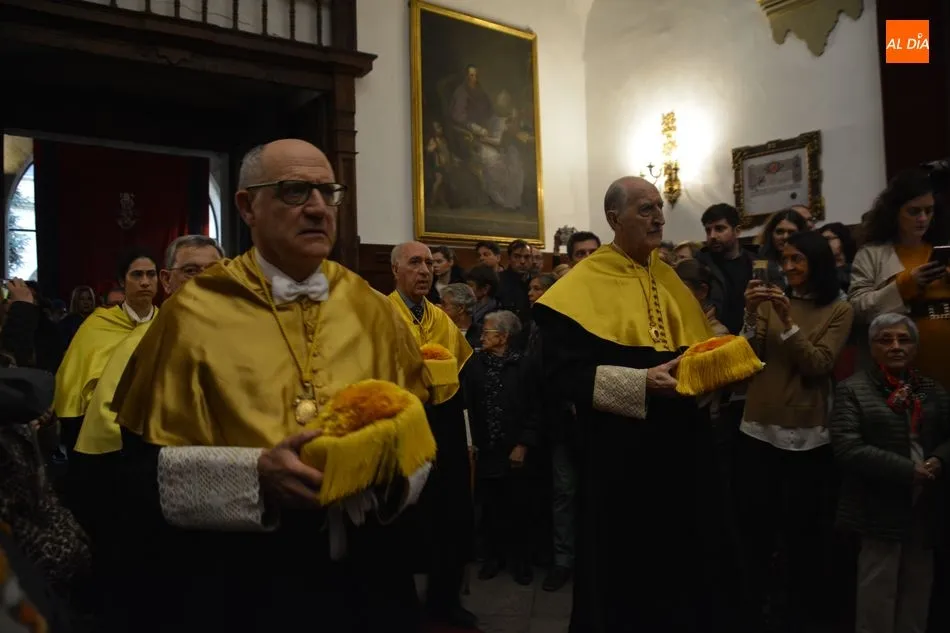 La Real Capilla Universitaria, en las Escuelas Mayores, celebra la Semana Santa con los oficios del Jueves Santo. La misa de la Cena del Señor ha contado con la presencia de Enrique Cabero, vicerrector de Política Académica y Participación Social, y Pilar Jiménez, vicesecretaria de la institución.
