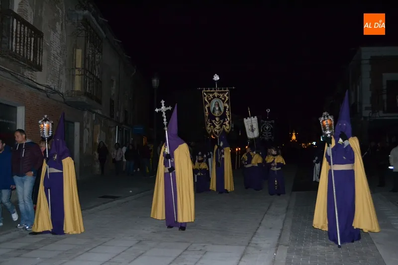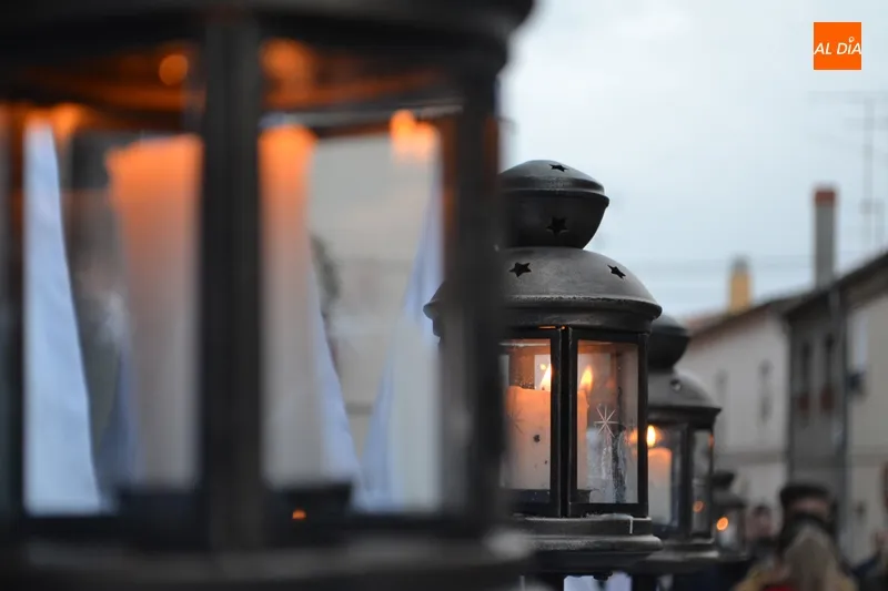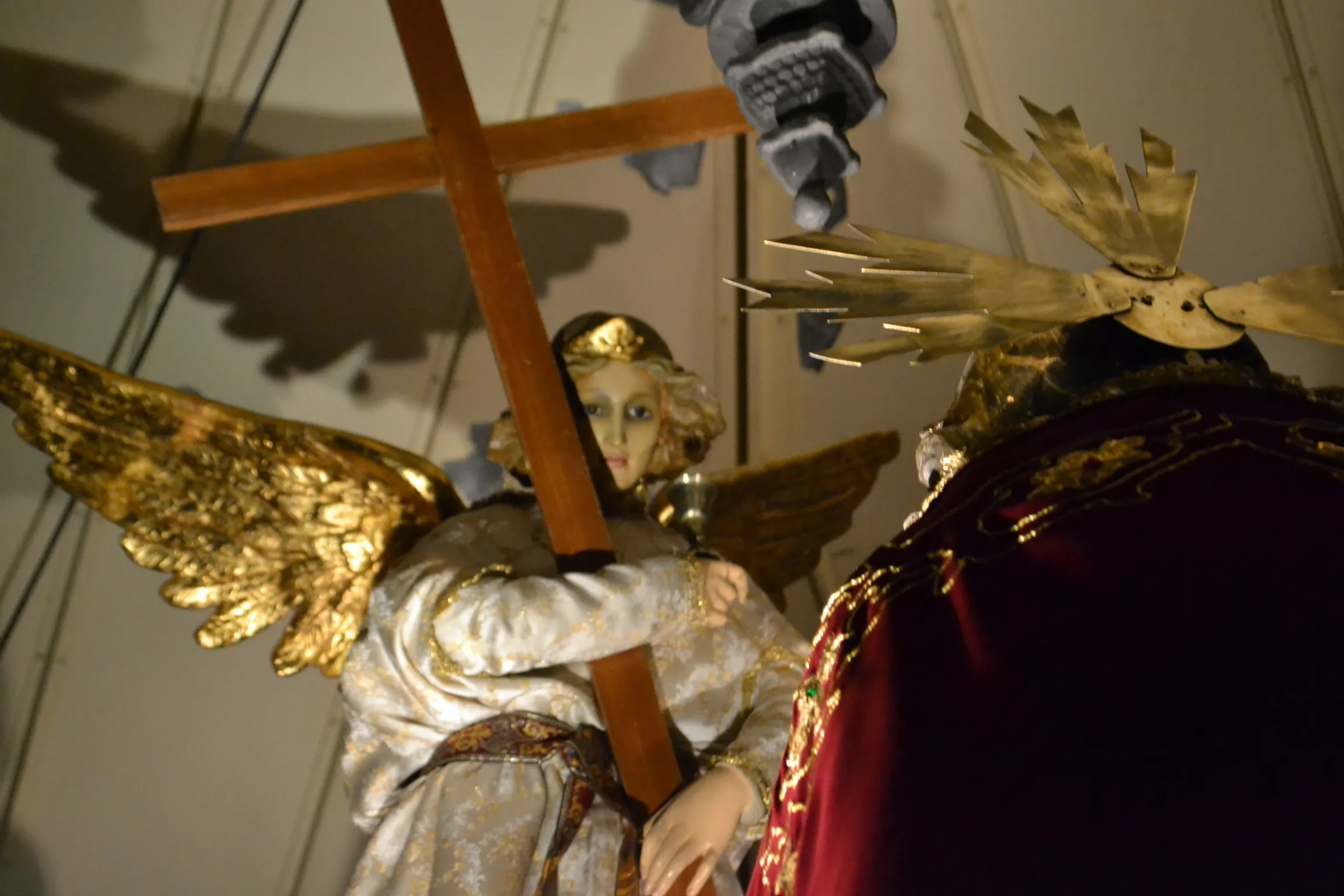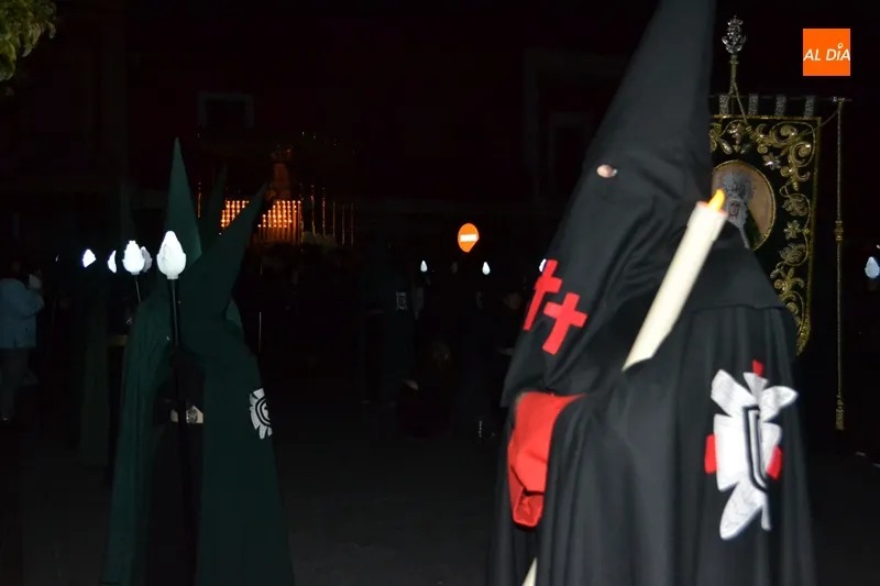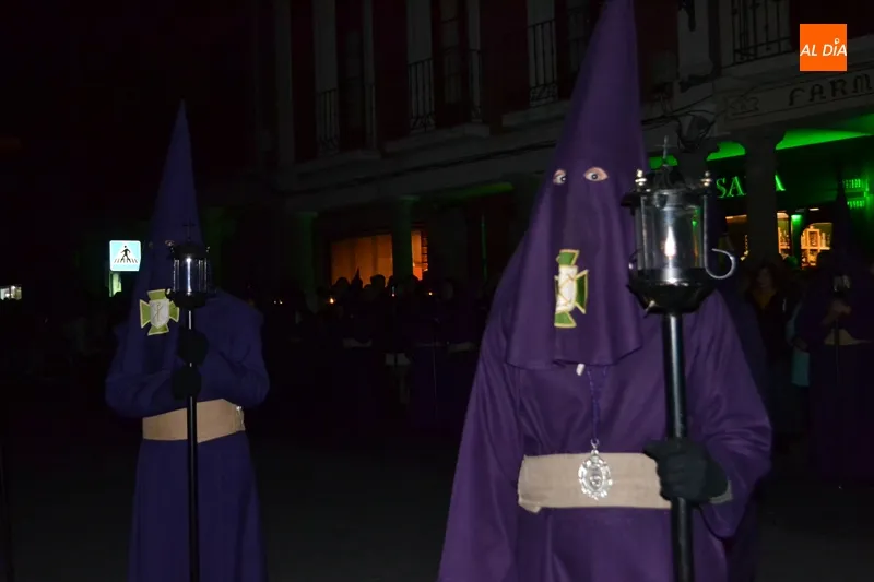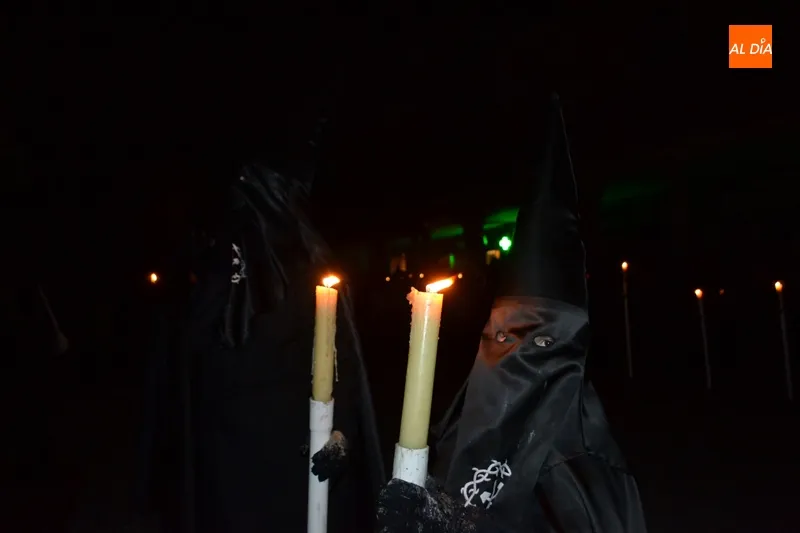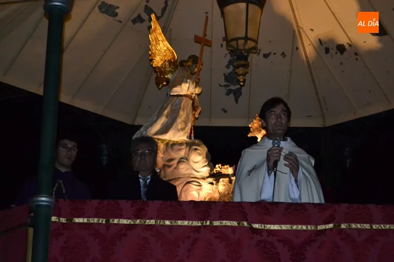 Ya con la noche cerrada, la oscuridad se adueñaba del ágora, solo interrumpida por los faroles y las velas, situándose cada imagen en una de las esquinas de la plaza, mientras el párroco Lauren Sevillano realizaba una sentida oración ante la imagen de Jesús en el Huerto, tras la que se reanudaron las marchas rumbo a la iglesia parroquial.