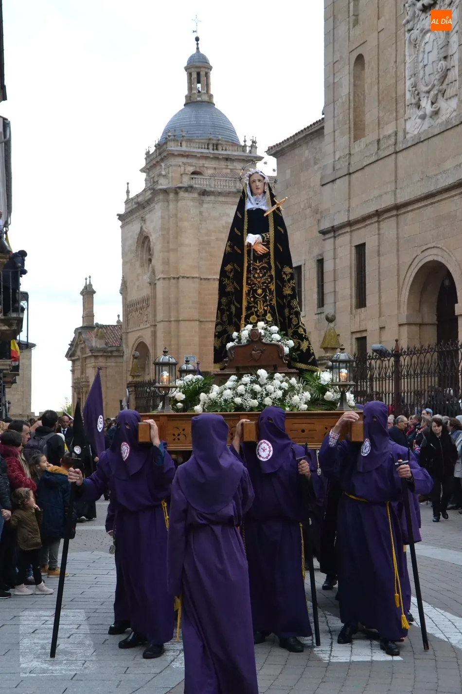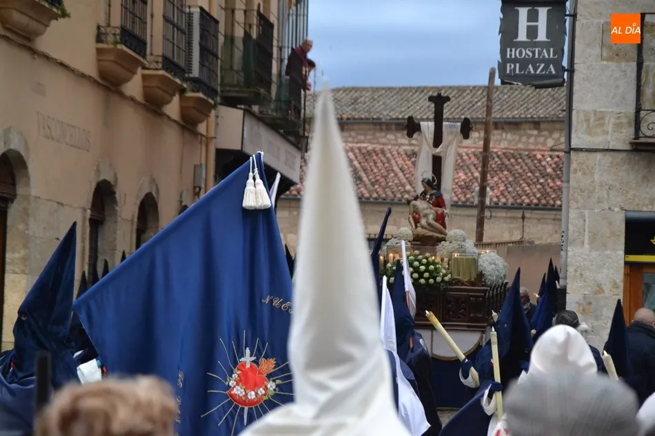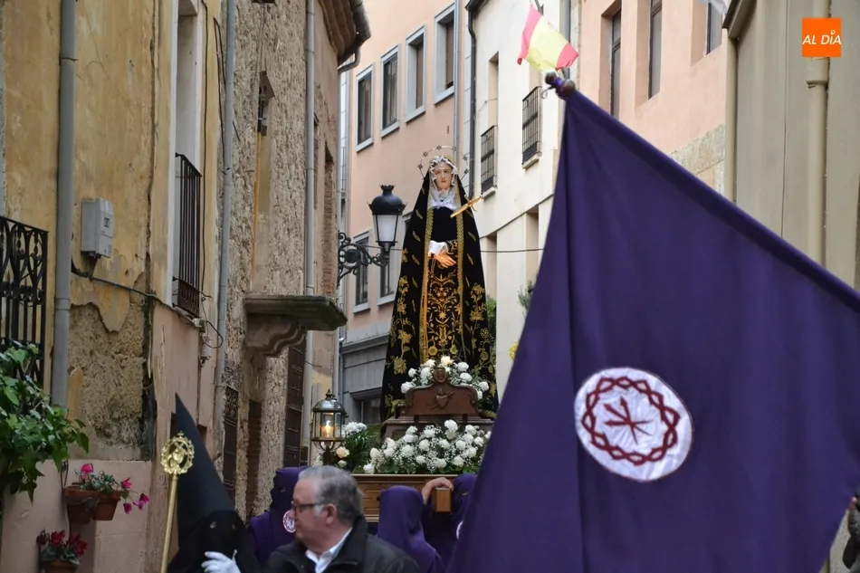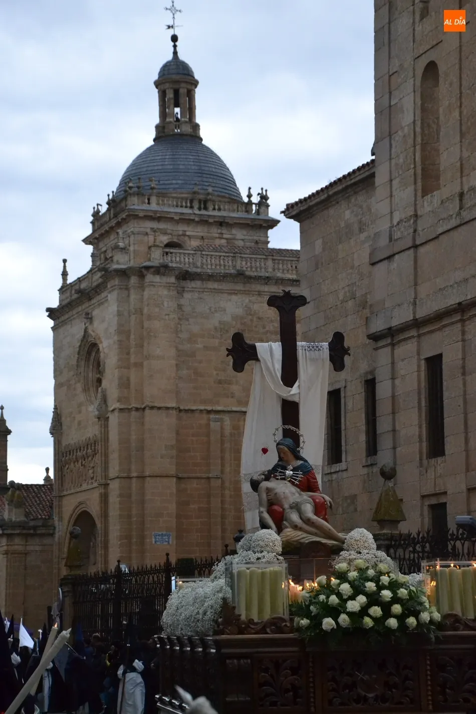 Miles de personas disfrutaron en la tarde del Viernes Santo en las calles de Ciudad Rodrigo de la emblemática procesión del Santo Entierro de la Semana Santa Mirobrigense, conocida popularmente como La Carrera, aunque precisamente su ritmo deja mucho que desear: en la tarde del Viernes, la procesión tardó una hora de reloj en ponerse en marcha. Por ejemplo, en el punto de realización de la mayoría de las fotografías, la confluencia de Cardenal Pacheco con Julián Sánchez, La Carrera empezó a pasar a las 19.04 horas y no concluyó hasta las 20.08 horas, pese a que el cielo llegó a pintar bastante negro.