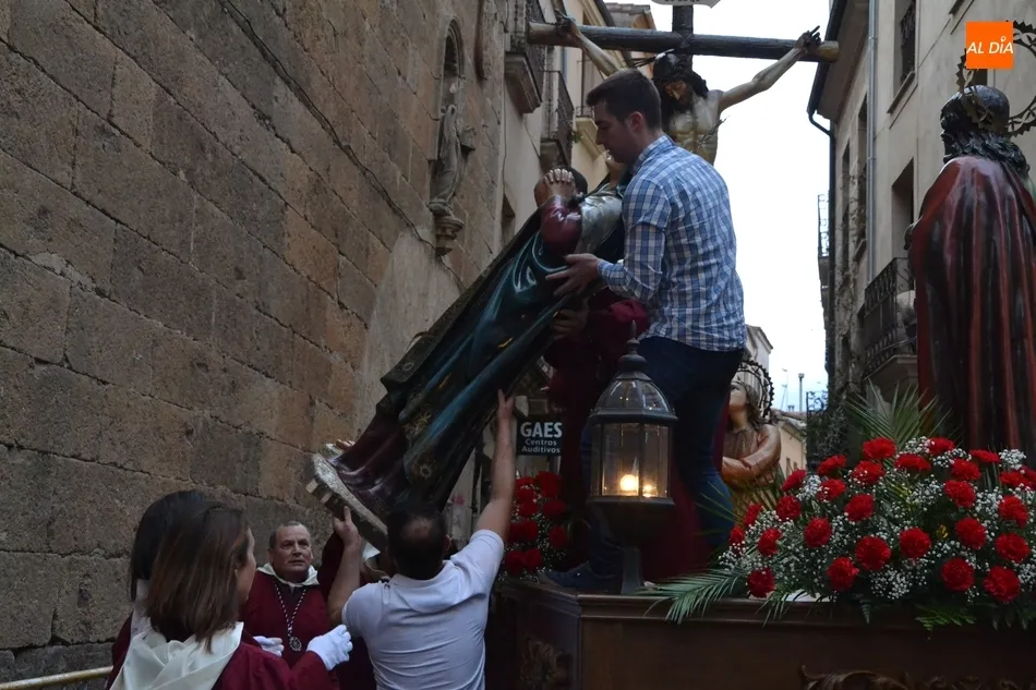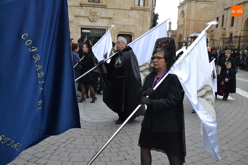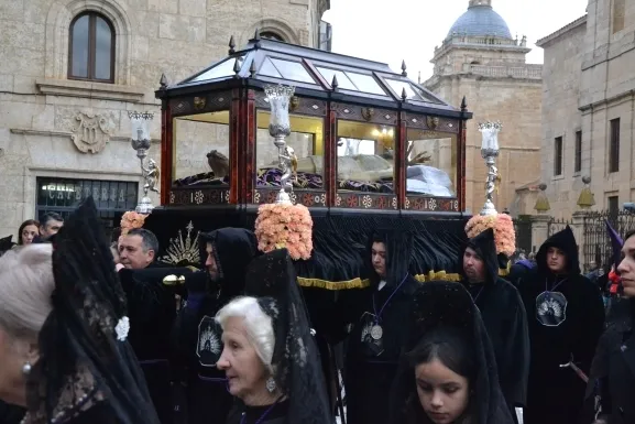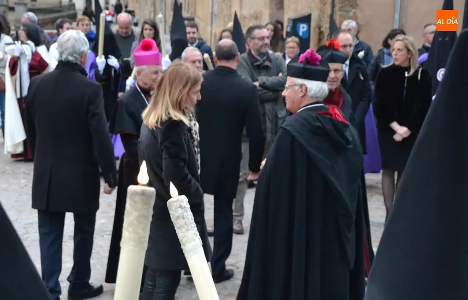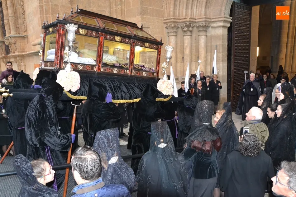 El tramo final de la comitiva sí fue hasta la Catedral: el Sepulcro de la Cofradía de La Soledad (con un amplio número de mujeres de luto a su alrededor) y La Dolorosa de la Cofradía de Jesús Nazareno, tras la cual desfilaron Vidal Rodríguez Encinas y Paco Cemir. A continuación marcharon el Administrador Apostólico de la Diócesis Jesús García Burillo, el presidente del Cabildo Catedralicio Ángel Martín Carballo y Nicolás Martín Matías; varias banderas de la Cofradía de Jesús Nazareno; los concejales del PP de la Corporación Municipal, y la Banda Municipal de Música.