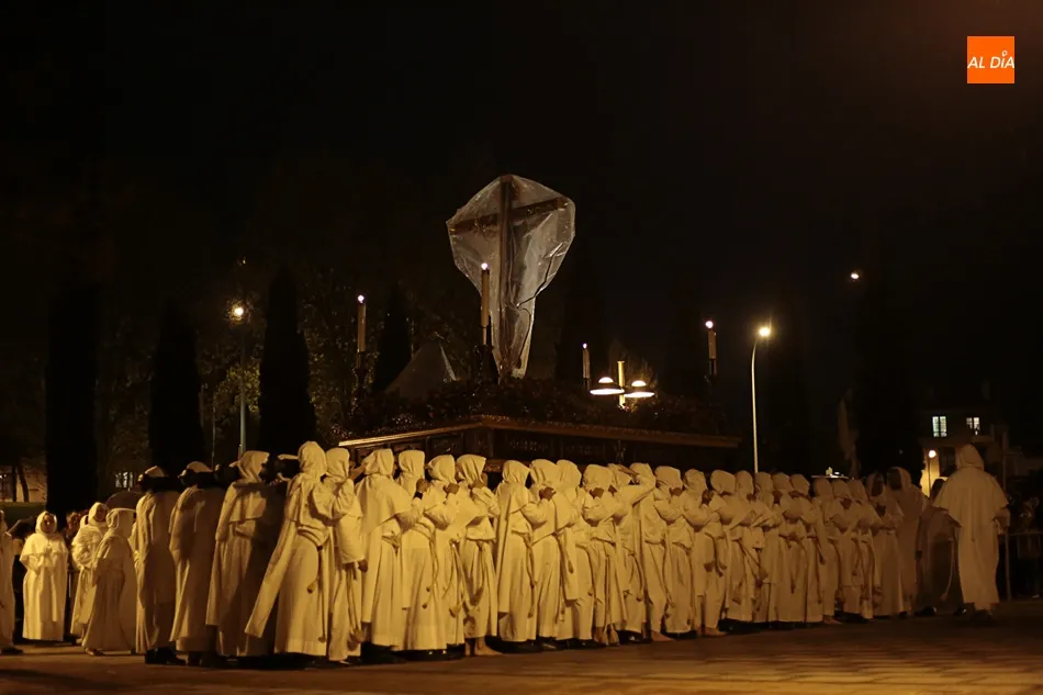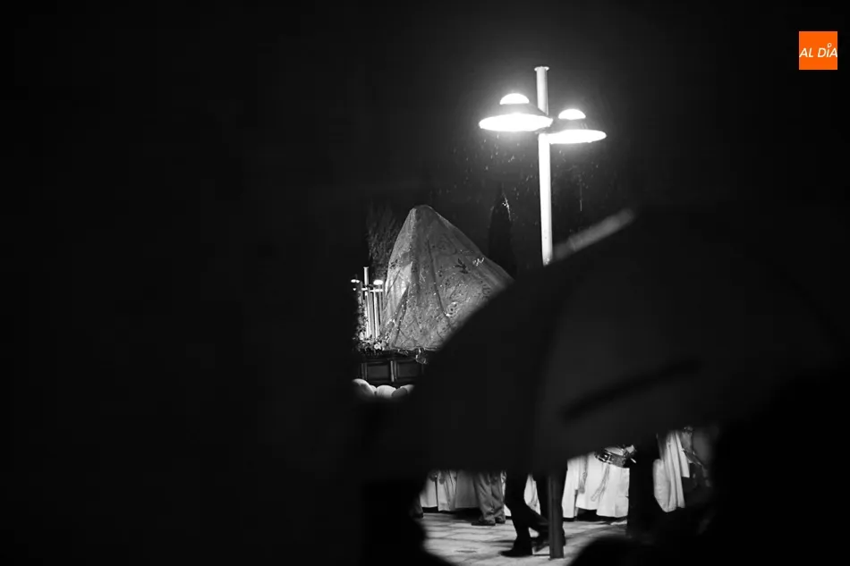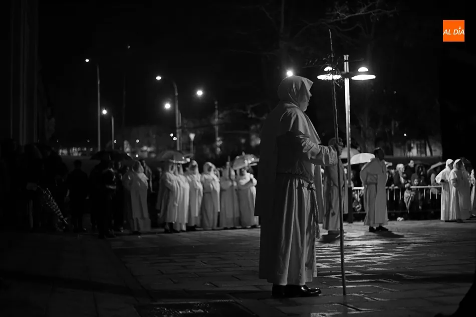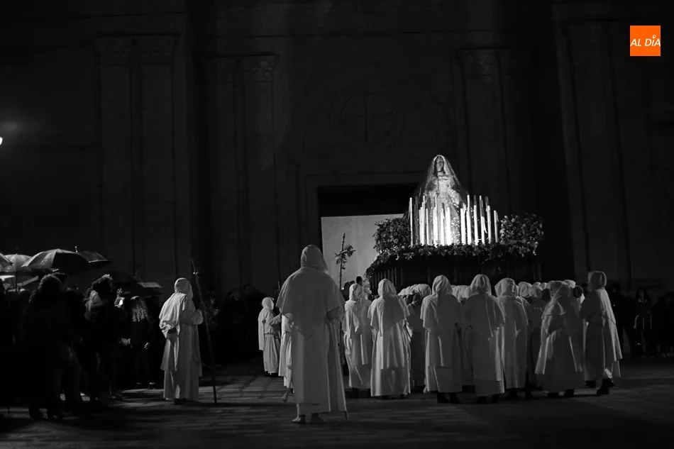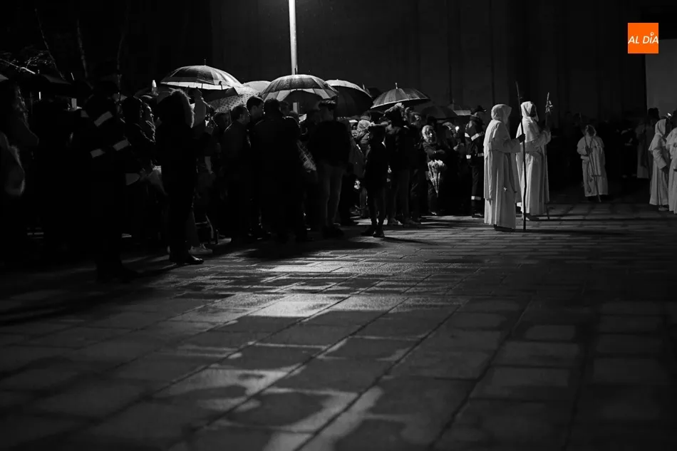 El Amor y la Paz se quedaron a las puertas del casco histórico. Cuando parecía que la primavera este año sí iba a lograr cruzar el Puente Romano, la lluvia mandó de vuelta a la hermandad arrabaleña a su lugar de salida. Sin perder ni el sitio ni la esencia, los faroles alumbraban el camino de regreso de una hilera de capuchas blancas que daban cobijo a lágrimas. Los plásticos no impedían contemplar y admirar al Cristo del Amor y de la Paz y a María Nuestra Madre. ?Ha sido un honor cargar con vosotros. Os deseo lo mejor para vosotros y vuestras familias. Y no lloréis, que el año que viene salimos?. Palabras de ánimo entre la emoción del encargado de dirigir la campana que abre el desfile, que ahora, dada la inversión de orden del cortejo, lo cerraba antes de que la Madre y el Hijo se separasen bajo la lluvia para reencontrarse tras el esfuerzo de sus pies, brazos y hombros bajo el techo de su hogar procesional.