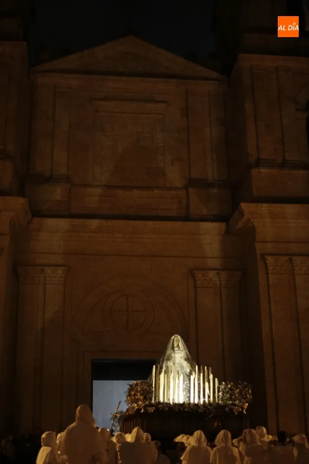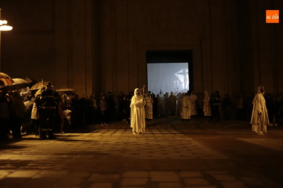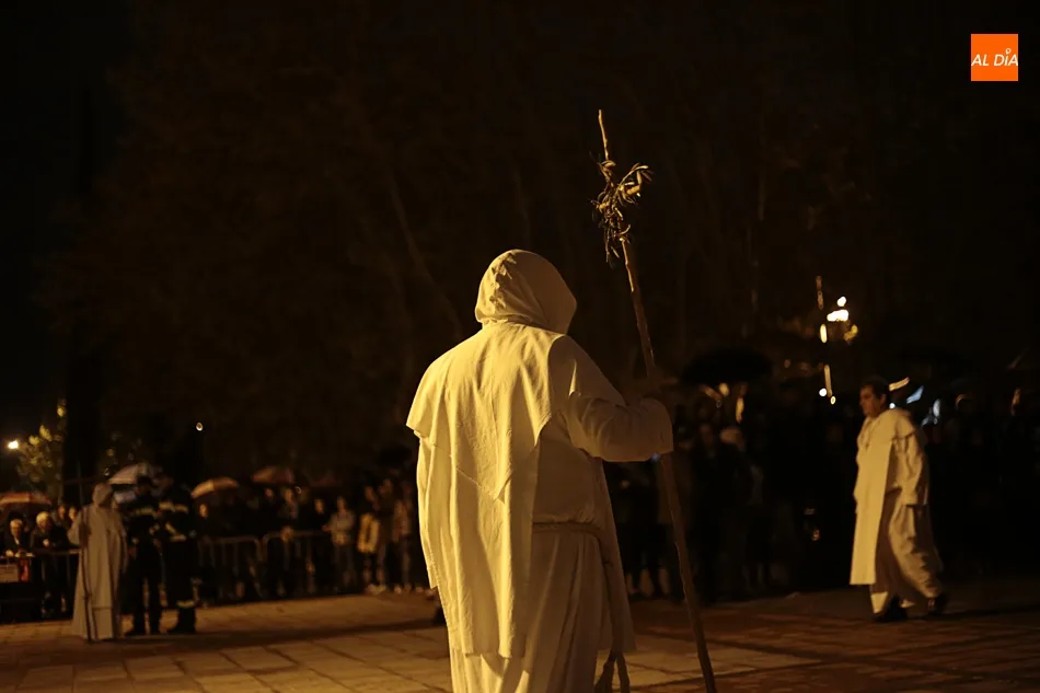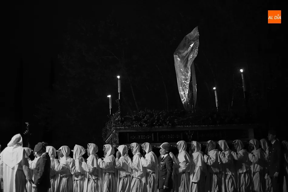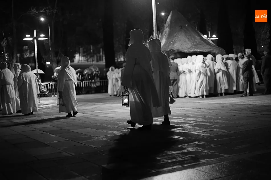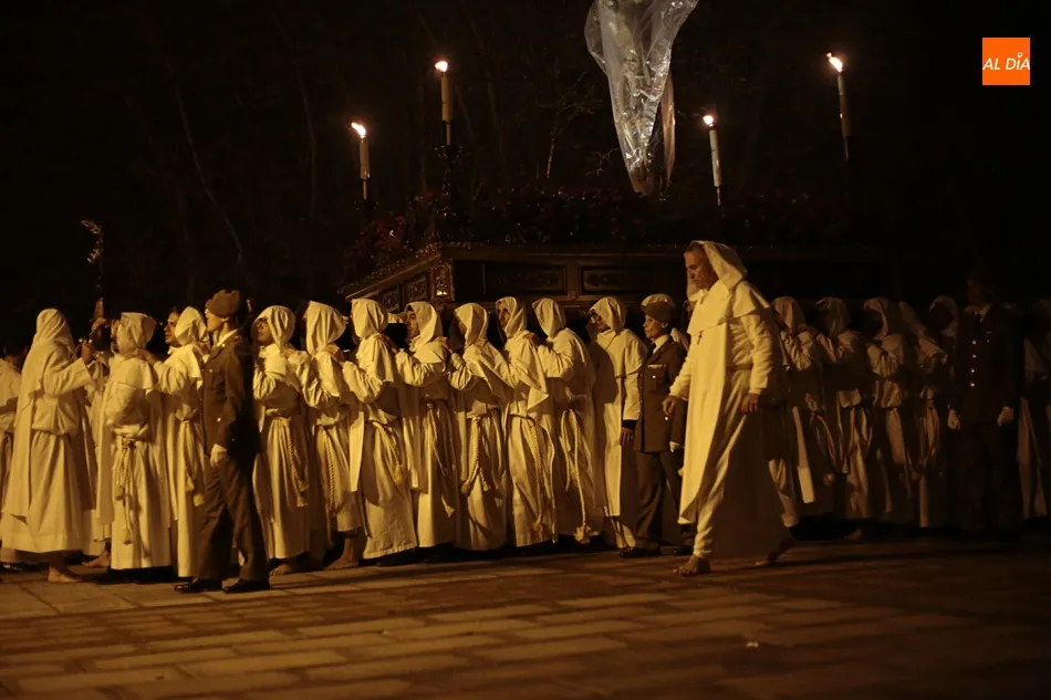 El Amor y la Paz se quedaron a las puertas del casco histórico. Cuando parecía que la primavera este año sí iba a lograr cruzar el Puente Romano, la lluvia mandó de vuelta a la hermandad arrabaleña a su lugar de salida. Sin perder ni el sitio ni la esencia, los faroles alumbraban el camino de regreso de una hilera de capuchas blancas que daban cobijo a lágrimas. Los plásticos no impedían contemplar y admirar al Cristo del Amor y de la Paz y a María Nuestra Madre. ?Ha sido un honor cargar con vosotros. Os deseo lo mejor para vosotros y vuestras familias. Y no lloréis, que el año que viene salimos?. Palabras de ánimo entre la emoción del encargado de dirigir la campana que abre el desfile, que ahora, dada la inversión de orden del cortejo, lo cerraba antes de que la Madre y el Hijo se separasen bajo la lluvia para reencontrarse tras el esfuerzo de sus pies, brazos y hombros bajo el techo de su hogar procesional.
