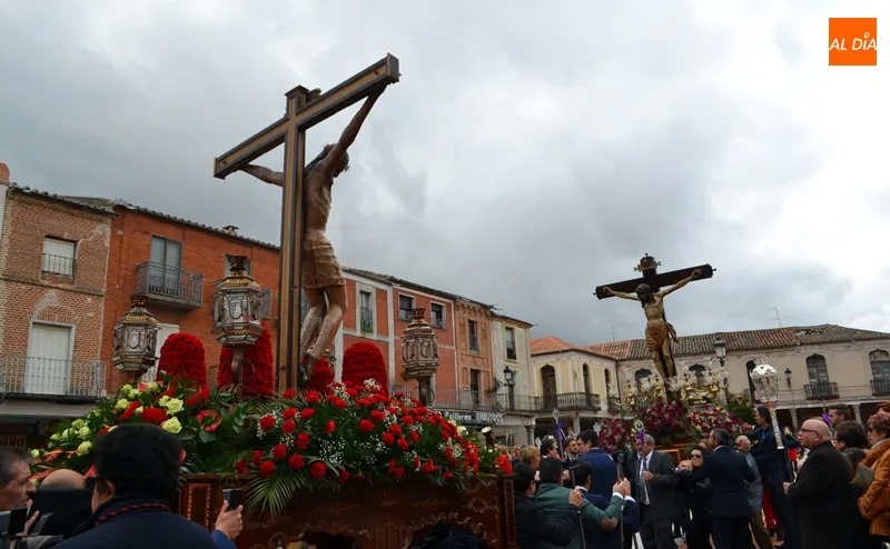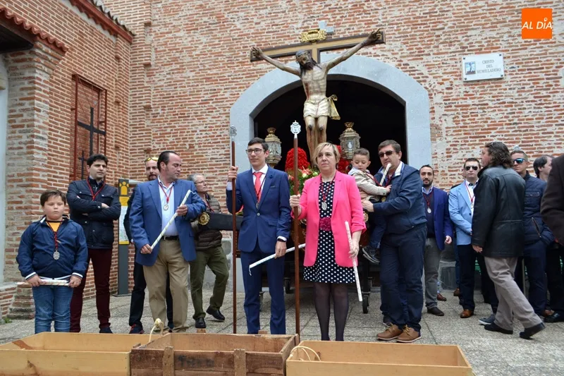 Santo Cristo de San Luis y el Santo Cristo del Humilladero partieron de la Ermita de San Luis, pasadas las once y media de la mañana, para iniciar un trayecto que culminaba en la renovada Plaza de la Constitución, en
