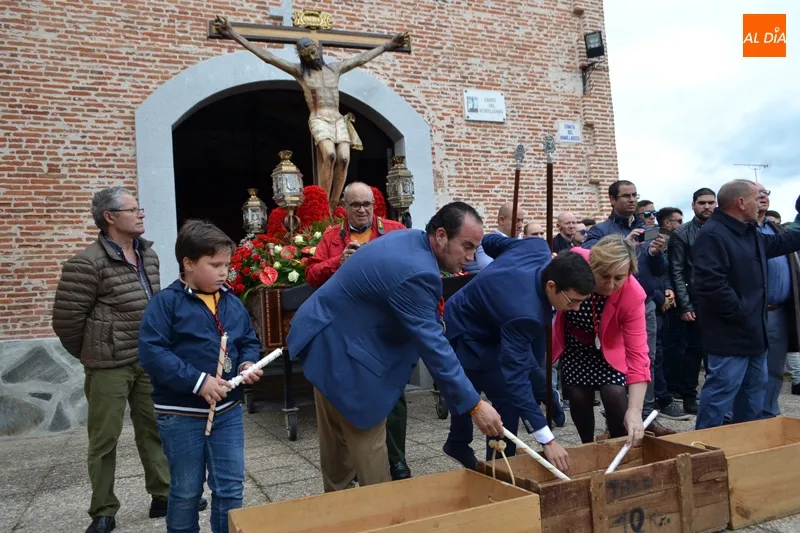 Tras una breve oración realizada por el párroco de Peñaranda, Lauren Sevillano, se abrían las puertas de la Ermita para que las miles de personas que aguardaban pacientes, pudieran depositar las velas ante la imagen del crucificado y entre un gran ambiente familiar.