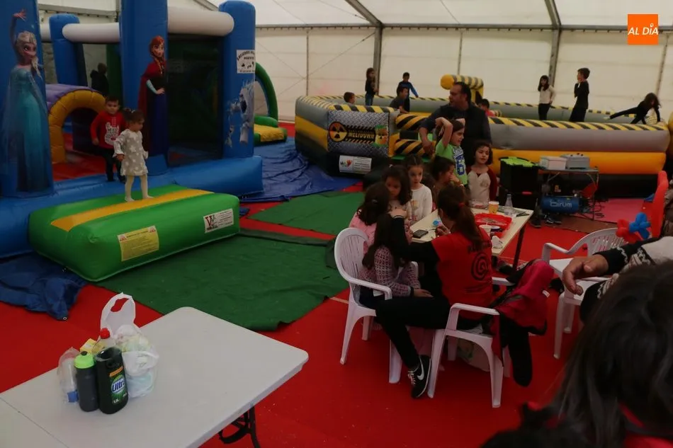 Otro de los reclamos de la feria es el parque infantil con hinchables y taller de pinta-caras instalado en la carpa exterior, atracción que rebosaba de público en la tarde.