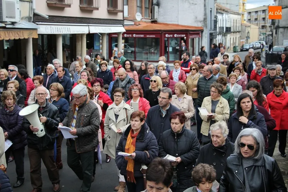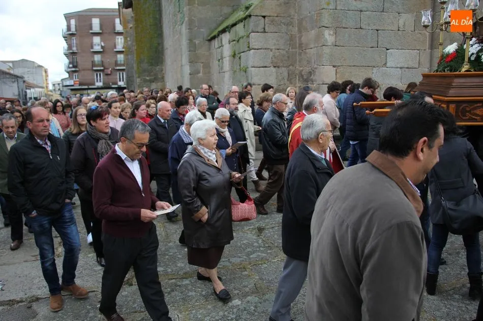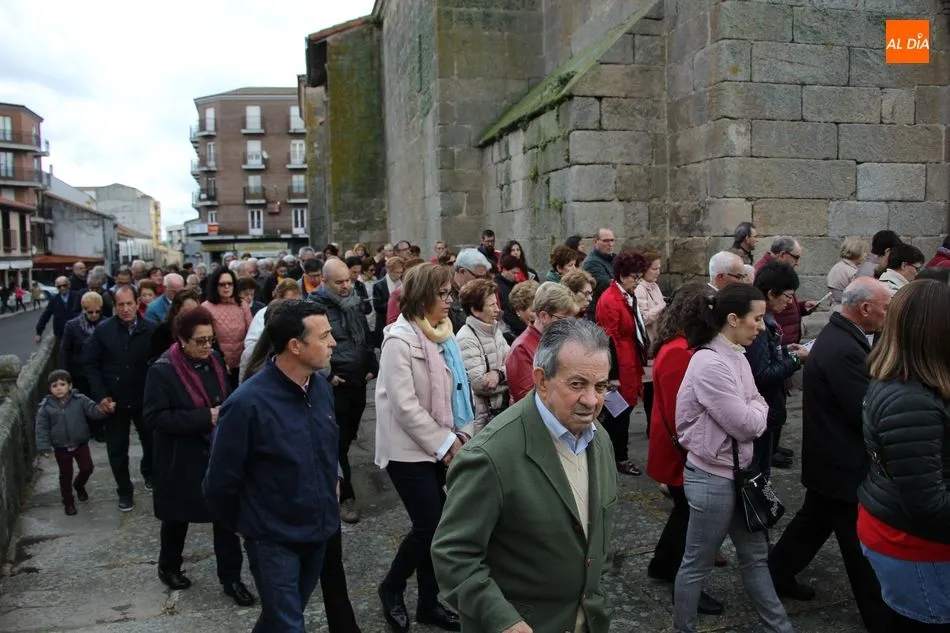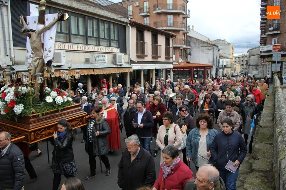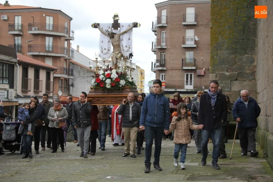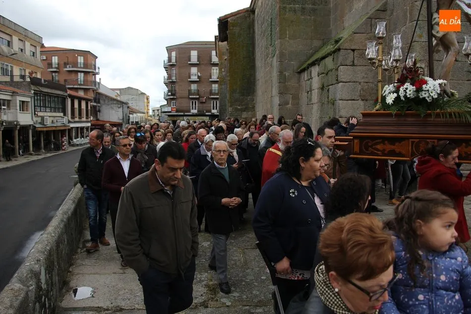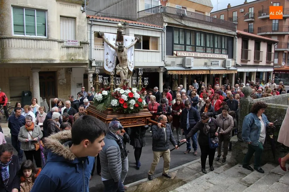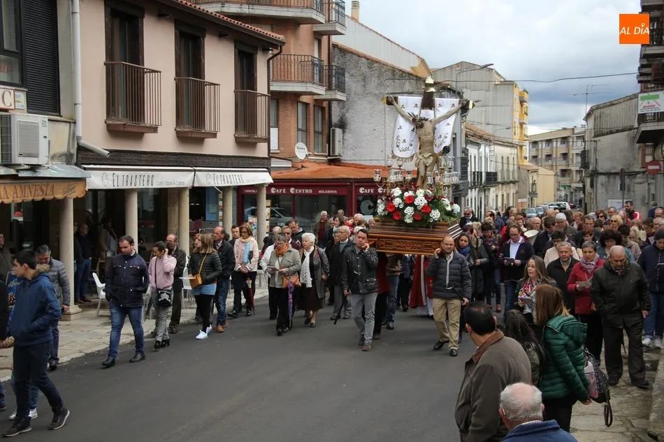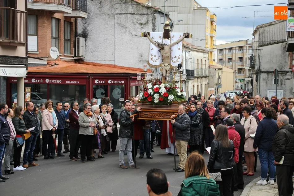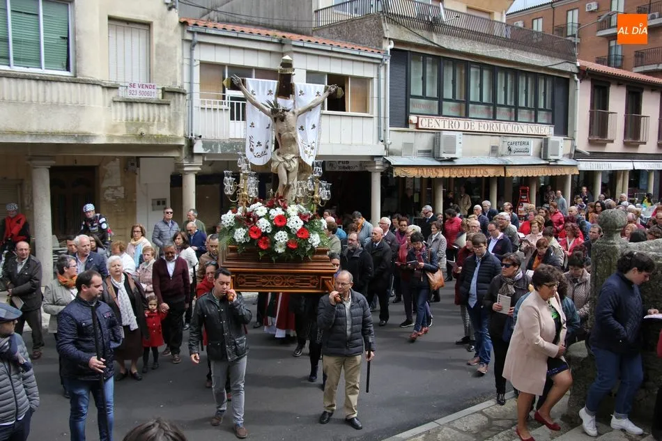 Decenas de fieles acudieron al Vía Crucis celebrado este Viernes Santo en Vitigudino. La imagen del Cristo de los Faroles, que luce un crespón negro en memoria de los cofrades fallecidos, paseó en procesión alrededor de la iglesia. Para esta tarde, a las 20.00 horas, está prevista la procesión del Santo Entierro acompañada por la Banda CC y TT La Salud de Salamanca.