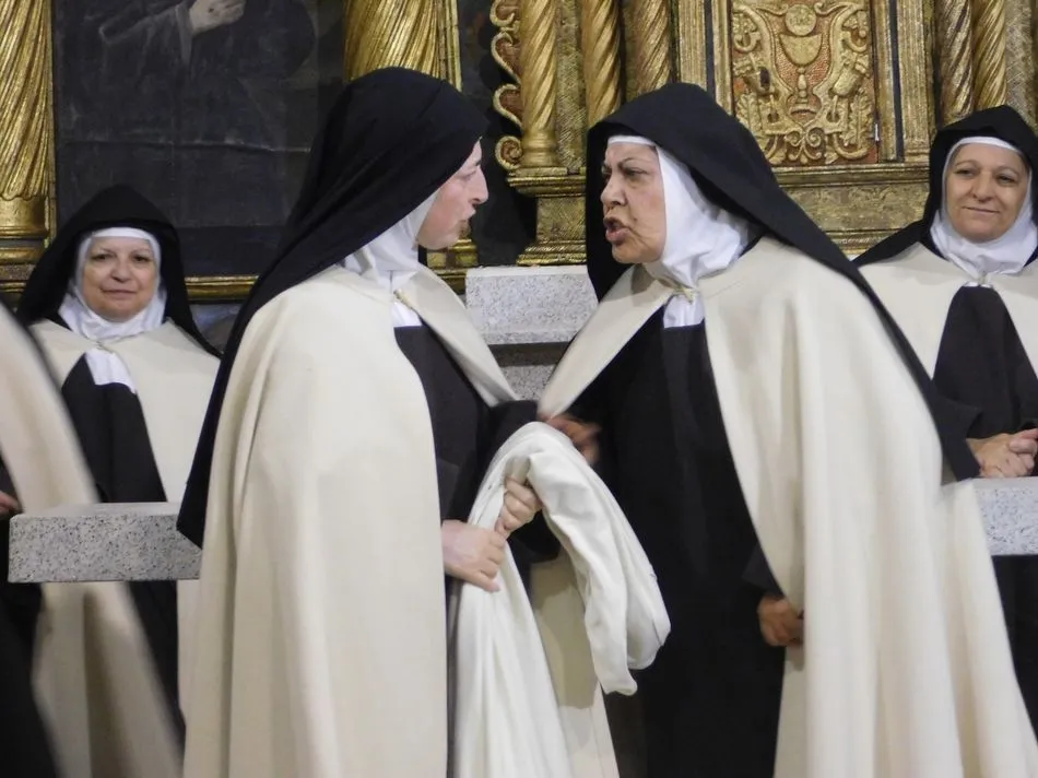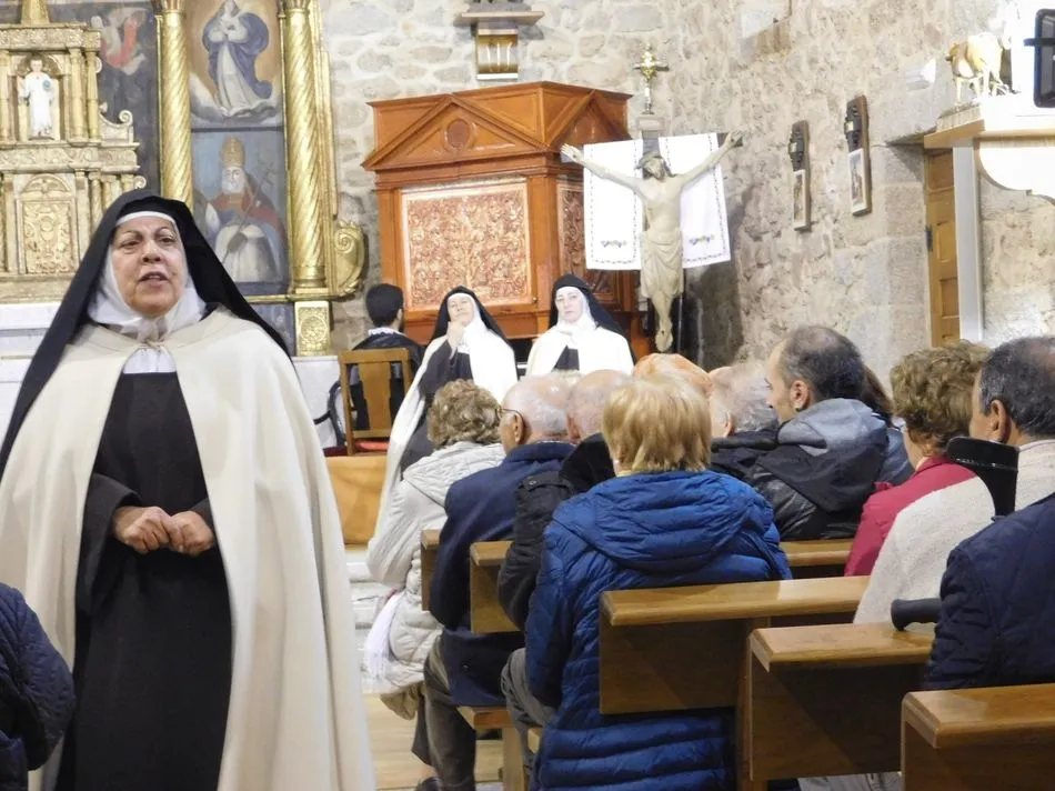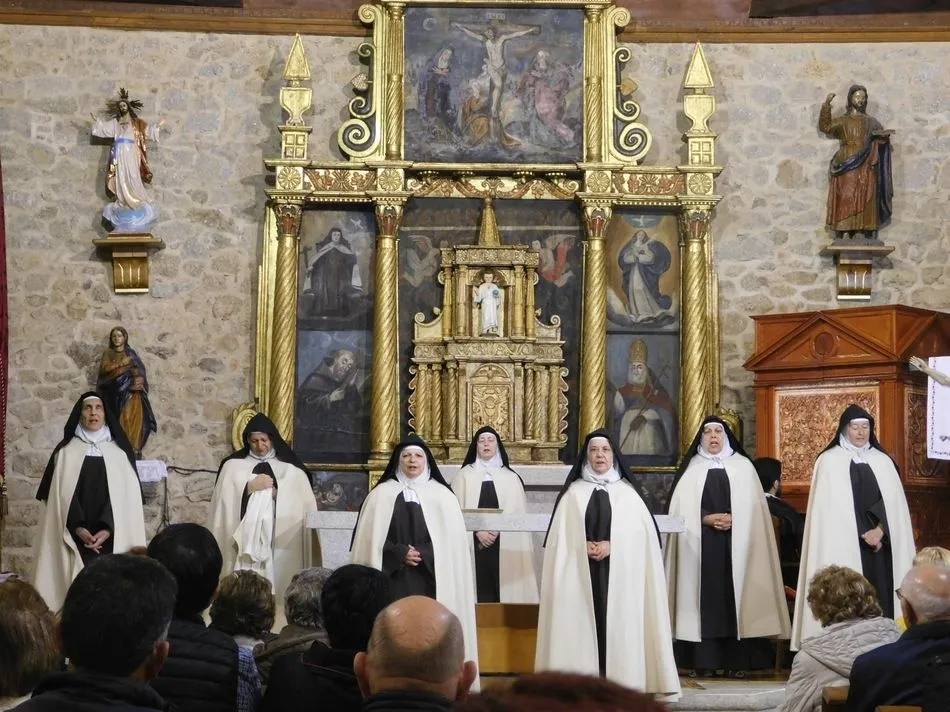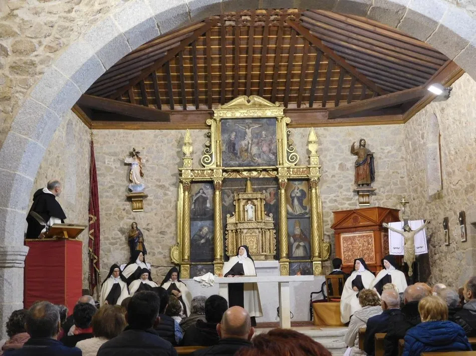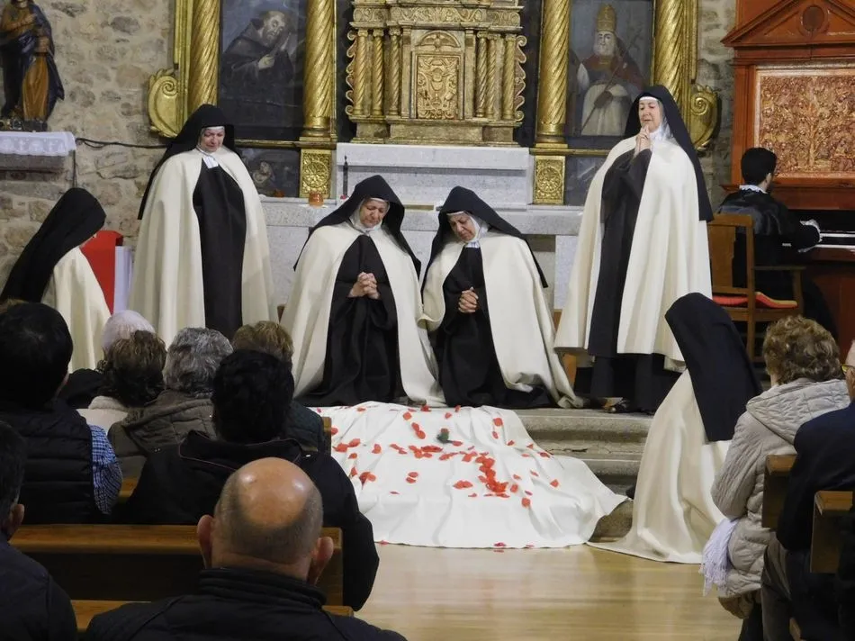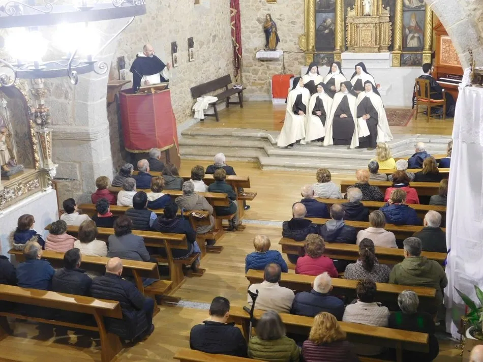 Los muros de la parroquia de esta localidad serrana parecen sentir las familiares vibraciones de la época a la que la obra de teatro traslada a los presentes, pues es el siglo XVI, suena un órgano al que el maestro Salinas interpreta música del Renacimiento, y unas monjas en el portalillo de entrada le dan pie para tocar un Kyrie que ellas cantan según avanzan por la nave. Sus hábitos de paño de oveja no dejan duda alguna de su origen y pertenencia, y un padre dominico en el púlpito desde el que la Inquisición domina la situación empieza un interrogatorio acerca de su amada madre Teresa de Jesús. A partir de ahora la vida se desgrana a borbotones como la sangre de un Cristo que enamoró aquella mujer que como Él quiso cambiar el mundo en clave de Amor. Y lo consiguió porque su ?andariega huella? sigue caminando entre nosotros desde que ?Lazarillo de Tormes? con su peculiar enfoque la haya bajado de los altares para acercarla a la tierra que nunca abandonó hasta su muerte.