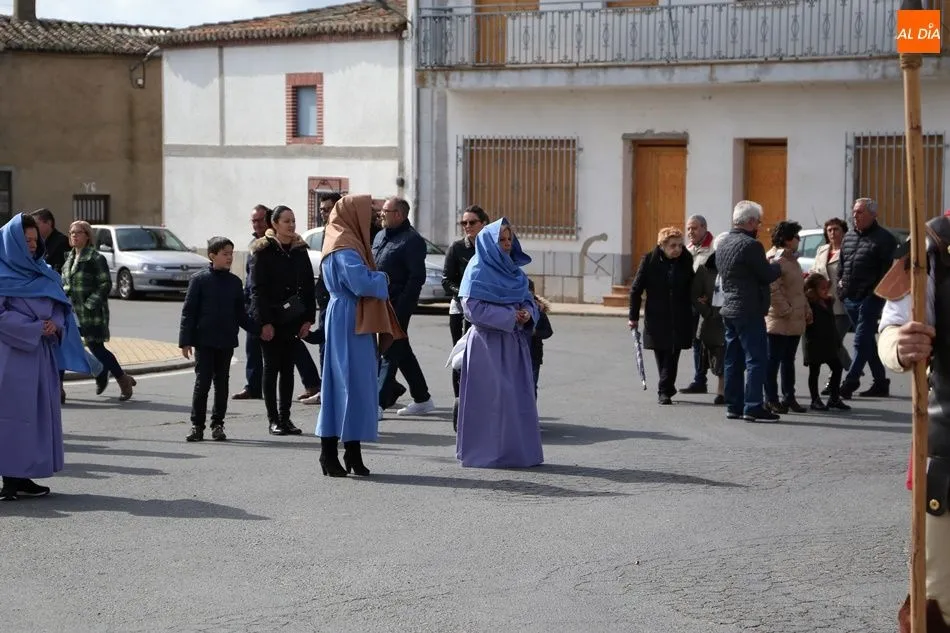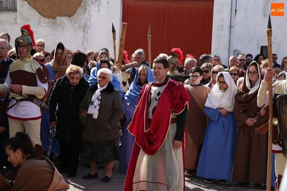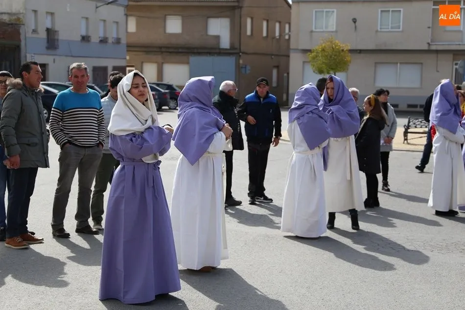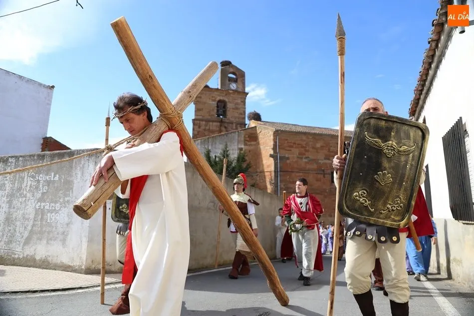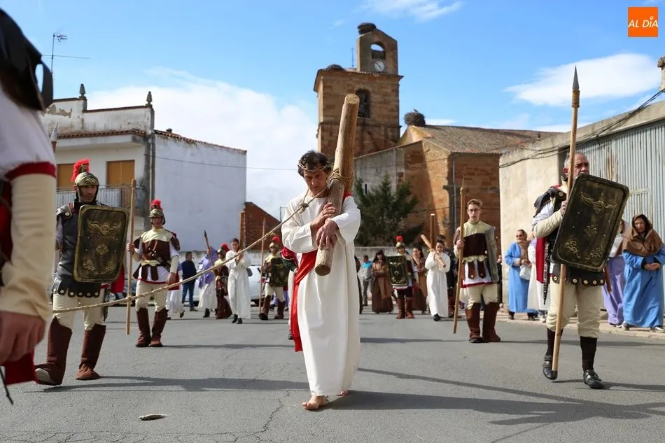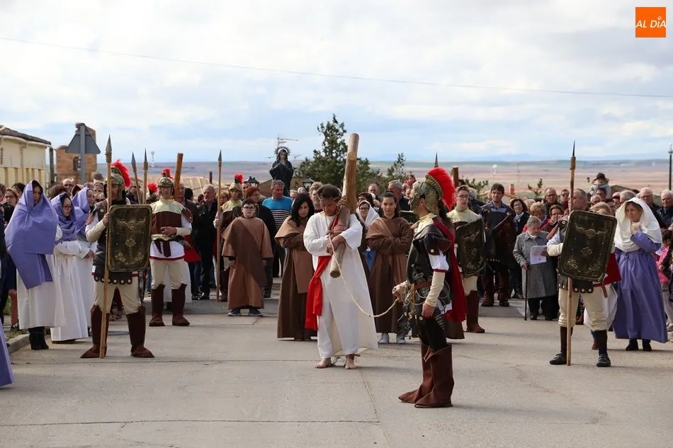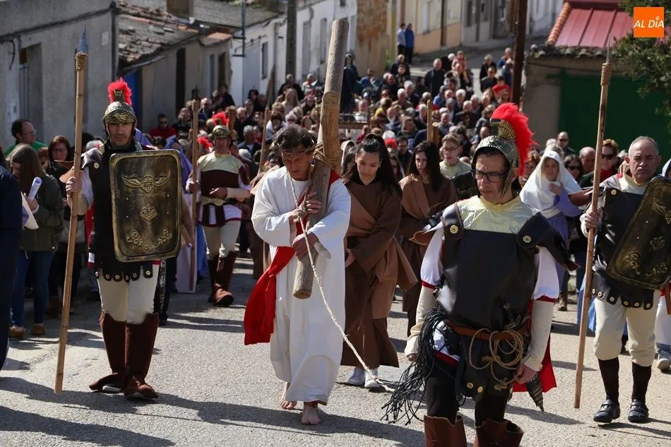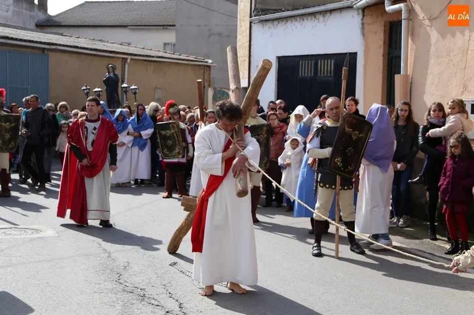 Jóvenes y mayores se implican en la organización de esta cita, una de las más llamativas de la Semana Santa de Las Villas. En esta ocasión los vecinos de la localidad del mimbre estaban atentos al cielo, pero la lluvia respetó el vía crucis, durante el que incluso salió el sol.