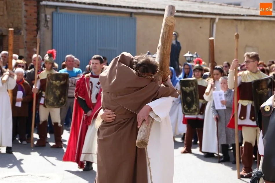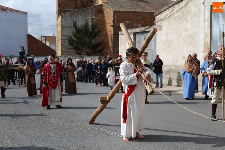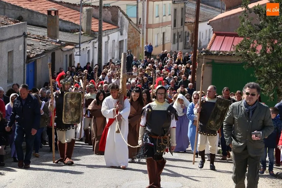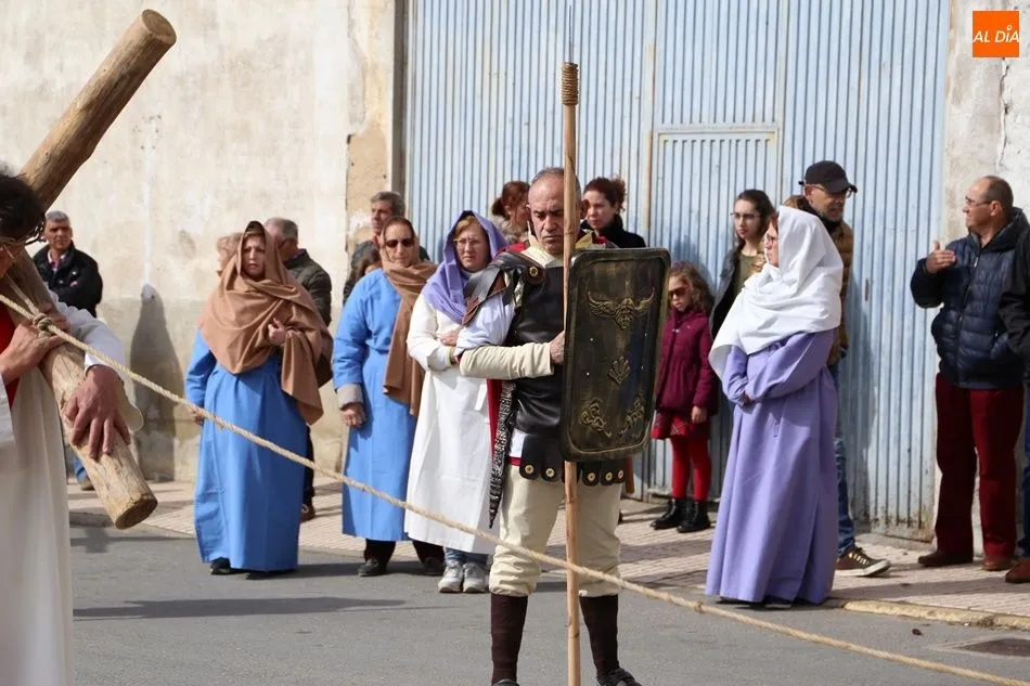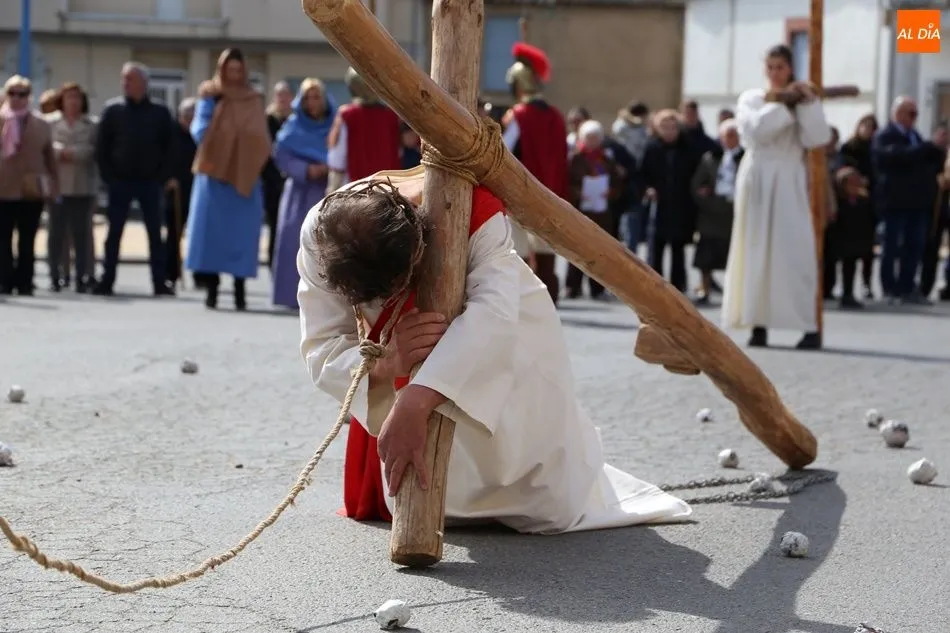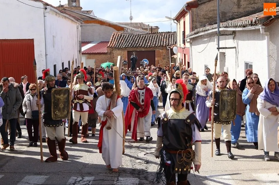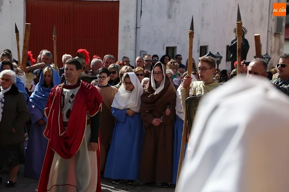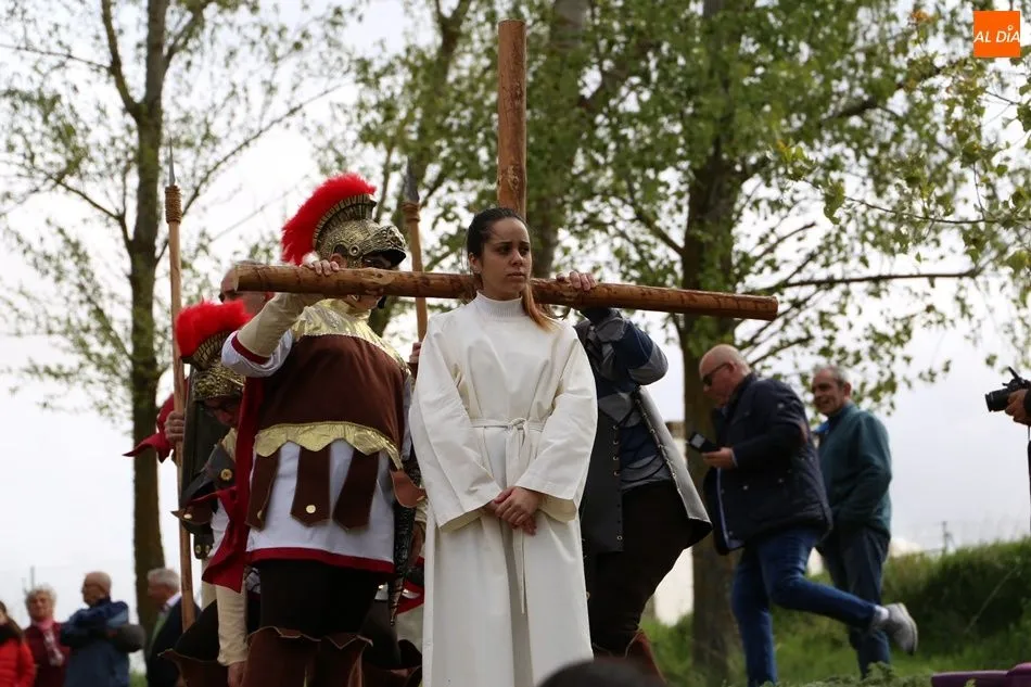 Jóvenes y mayores se implican en la organización de esta cita, una de las más llamativas de la Semana Santa de Las Villas. En esta ocasión los vecinos de la localidad del mimbre estaban atentos al cielo, pero la lluvia respetó el vía crucis, durante el que incluso salió el sol.