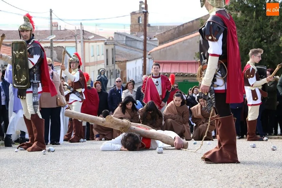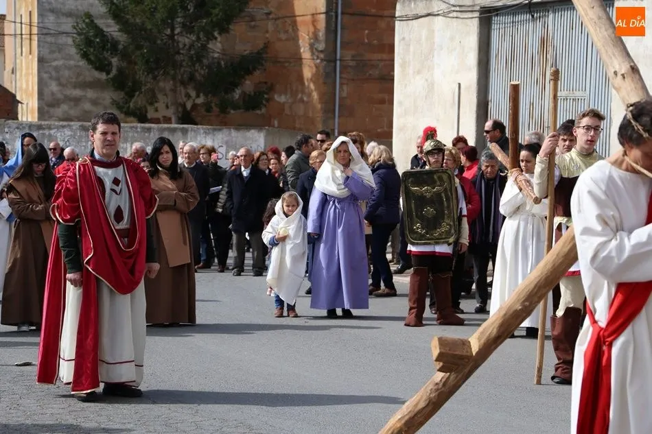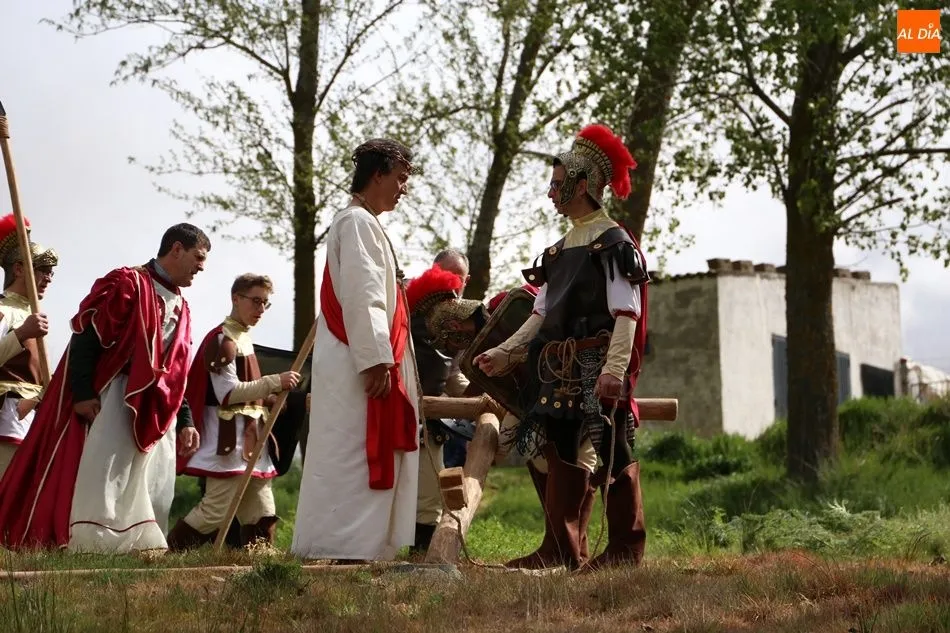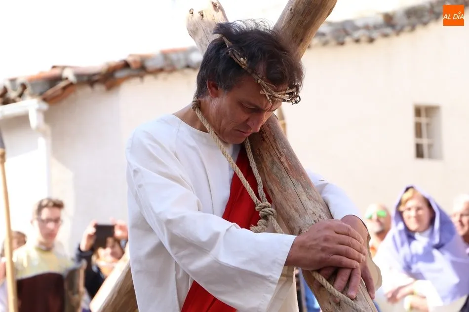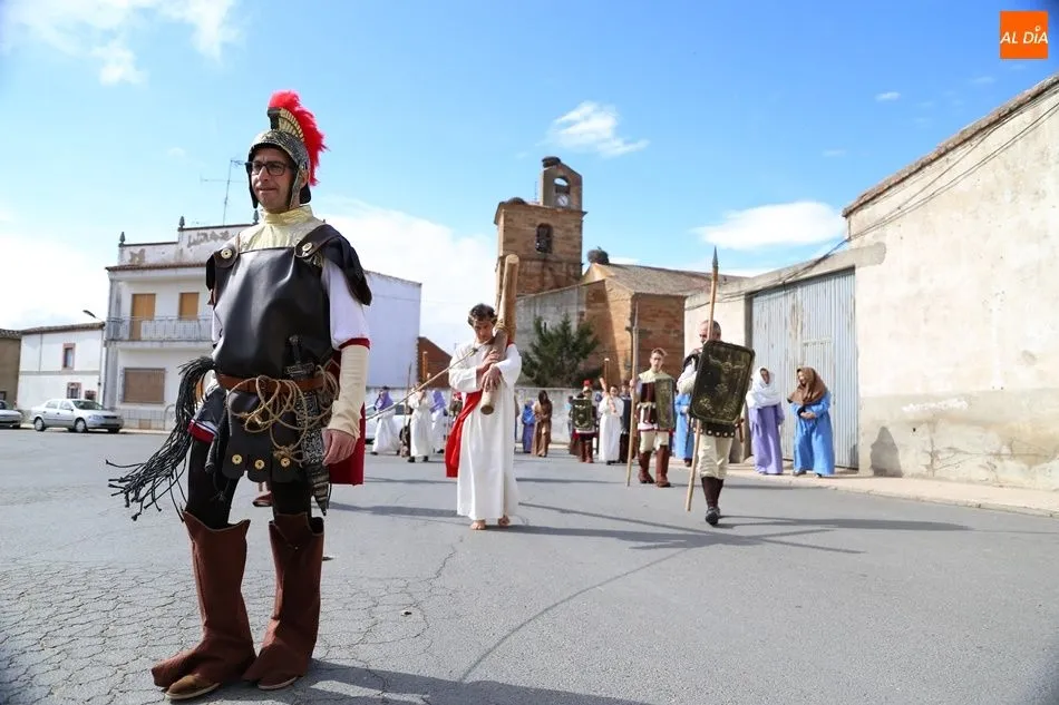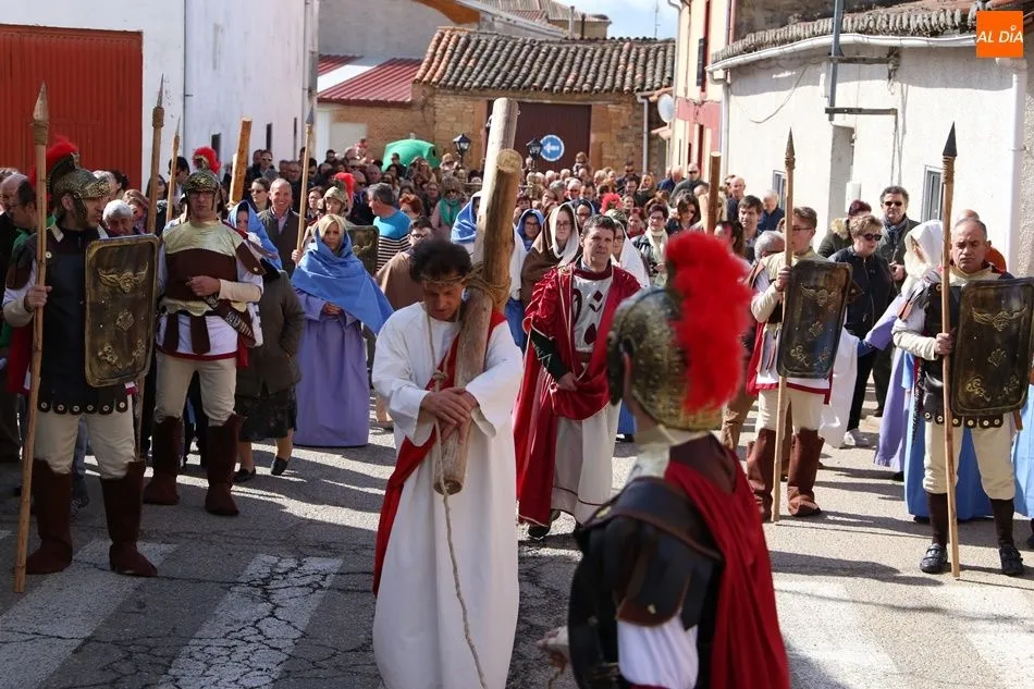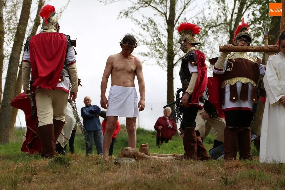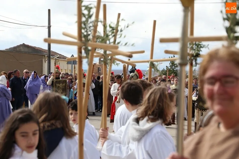 Jóvenes y mayores se implican en la organización de esta cita, una de las más llamativas de la Semana Santa de Las Villas. En esta ocasión los vecinos de la localidad del mimbre estaban atentos al cielo, pero la lluvia respetó el vía crucis, durante el que incluso salió el sol.