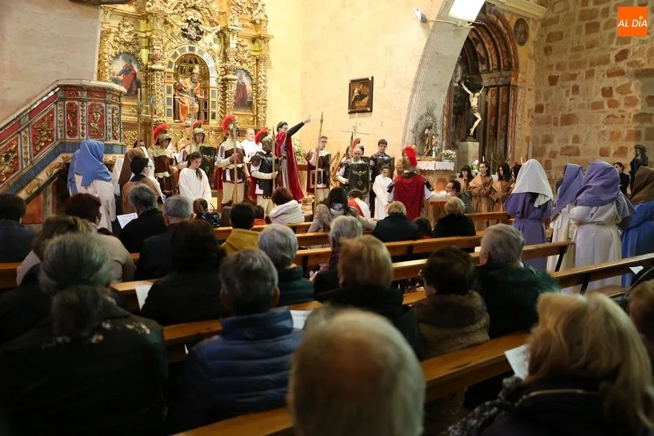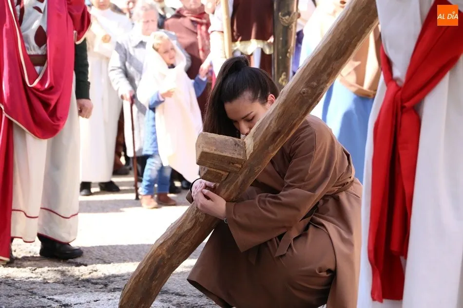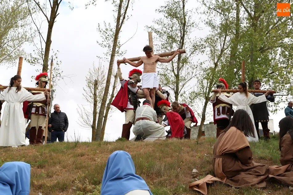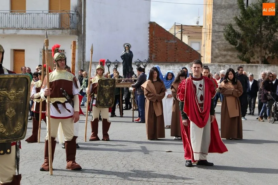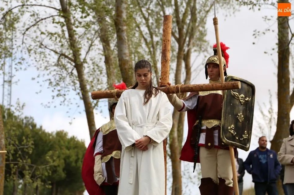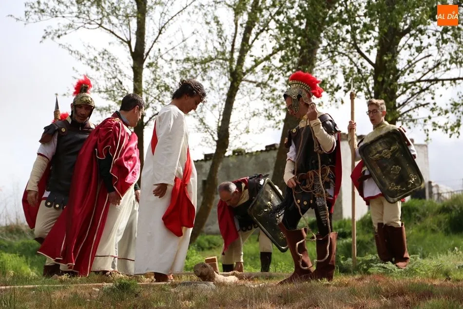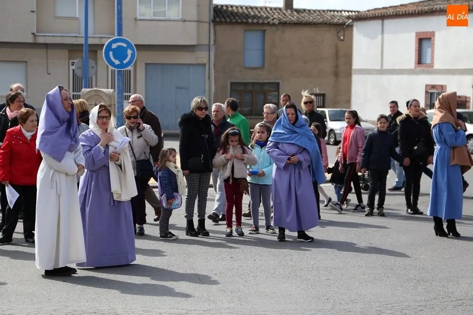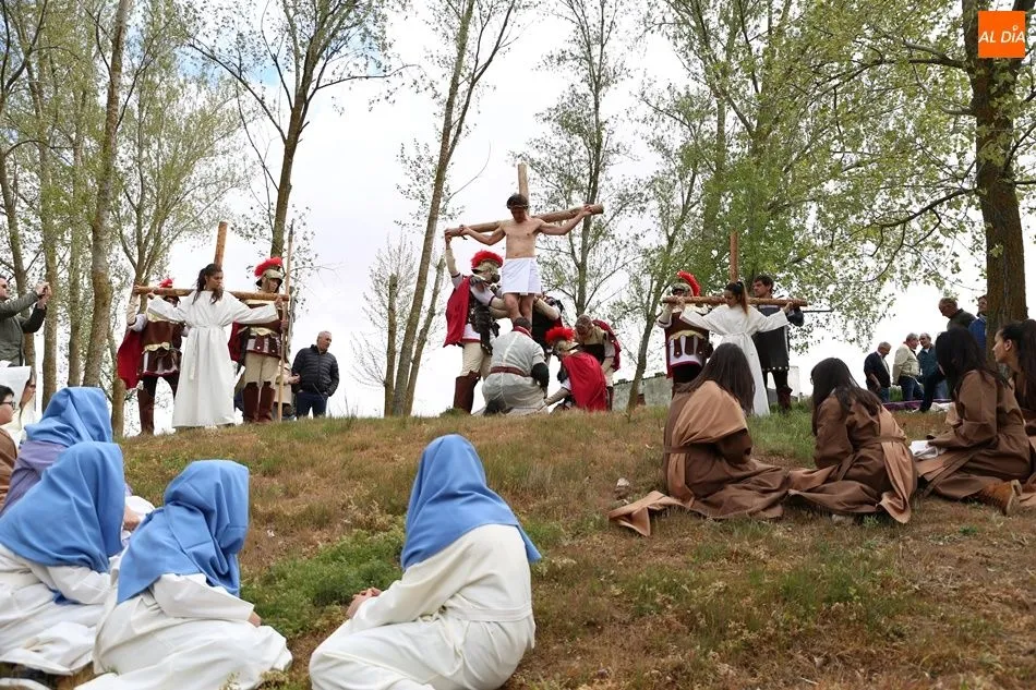 Jóvenes y mayores se implican en la organización de esta cita, una de las más llamativas de la Semana Santa de Las Villas. En esta ocasión los vecinos de la localidad del mimbre estaban atentos al cielo, pero la lluvia respetó el vía crucis, durante el que incluso salió el sol.