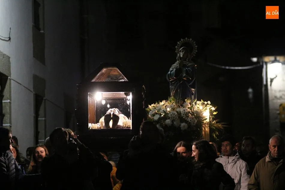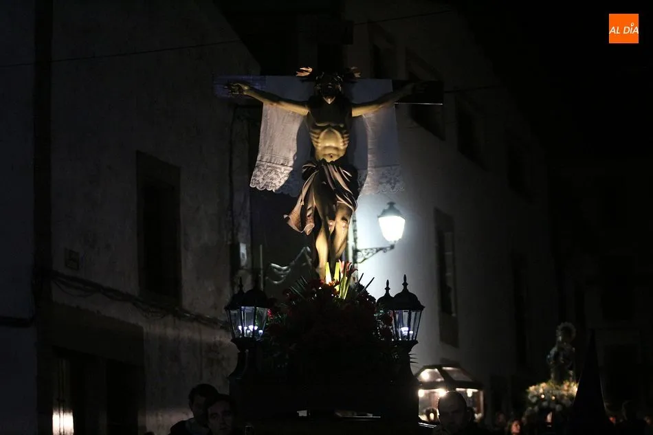 El Viernes Santo ledradense llegó a su final con la última de las celebraciones litúrgicas de la jornada, la Procesión del Santo Entierro. Tras el via crucis a mediodía y la celebración de los Santos Oficios, llegó el turno de la procesión nocturna más multitudinaria del calendario local. Las imágenes del Cristo Crucificado, La Dolorosa, El Nazareno y el Santo Sepulcro formaron parte de la comitiva, tanto a hombros de los hermanos de la cofradía de Jesús el Nazareno, como de fieles vecinos de la localidad. Pese a que le previsión meteorológica anunciaba precipitaciones, la lluvia no hizo acto de presencia y la Cofradía de Jesús el Nazareno y los numerosos fieles pudieron partir en procesión como estaba previsto.