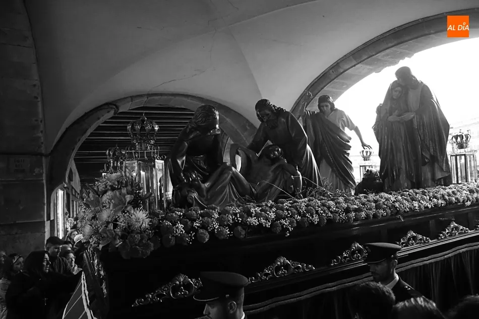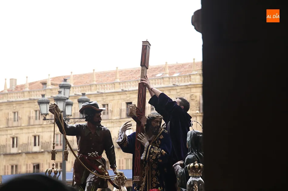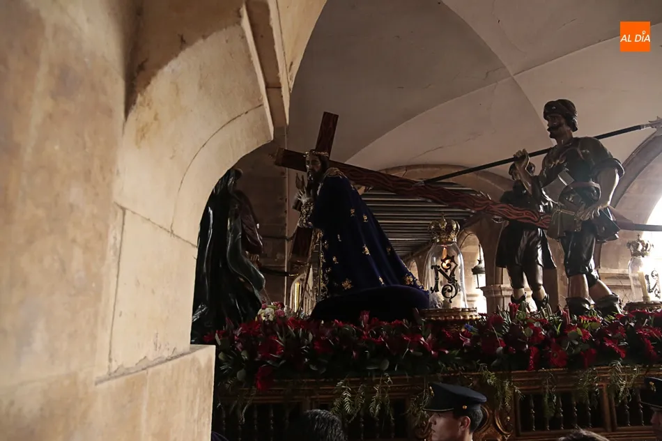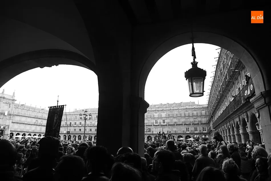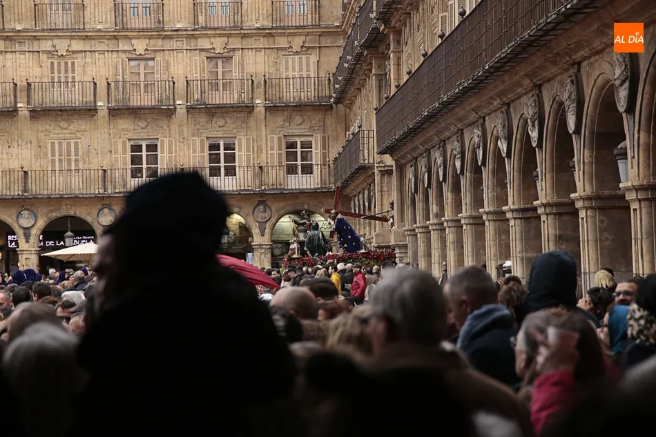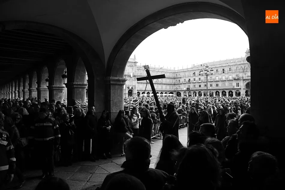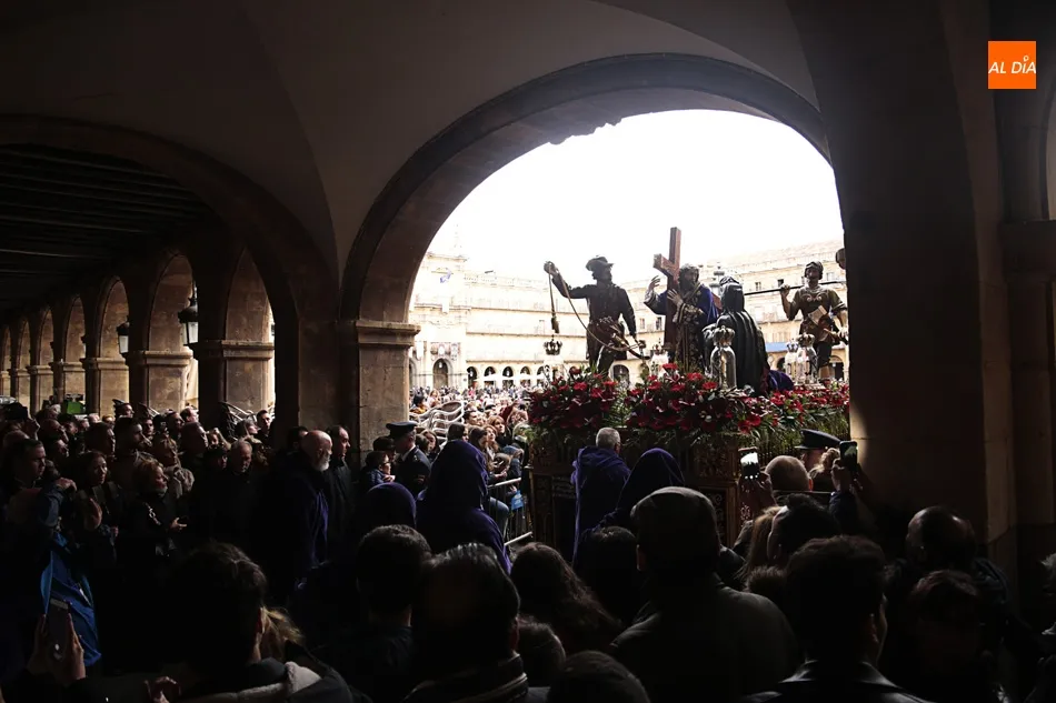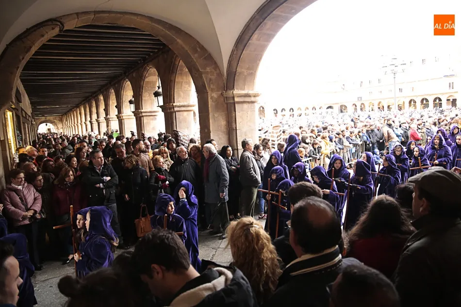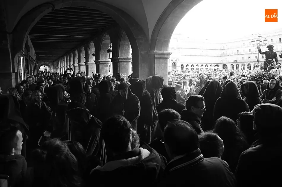 Los que esperaban en el arco de Prior de la Plaza Mayor a Jesús Nazareno y el Santo Entierro no se puede decir que disfrutaran de la procesión. Esta zona del ágora salmantina es un punto de mucho movimiento en el día a día. Pero ayer no era un día cualquiera, era Viernes Santo y el ir y venir era cosa de las cofradías, hermandadades y congregaciones. Algo que no entendieron muchos, a los que poco les importó la presencia de los congregantes portando cruces y corona de espinas y decidieron cruzar, llegando a apartar dichas cruces en algún momento para poder pasar e interrumpiendo y molestando a penitentes, músicos y a todos los allí presentes.