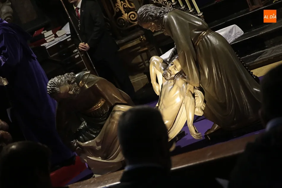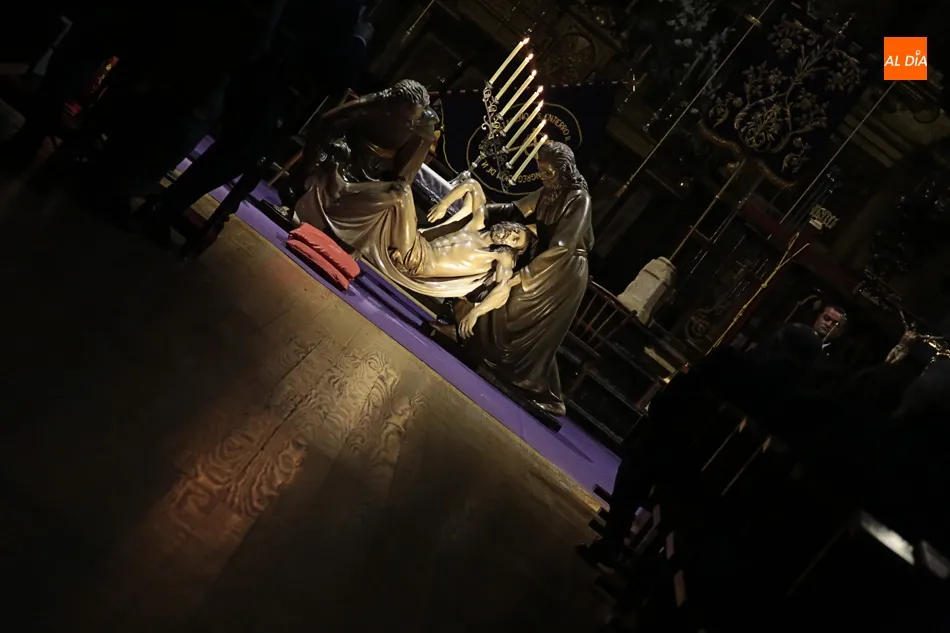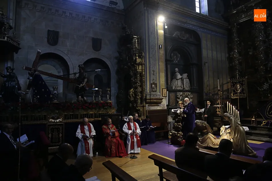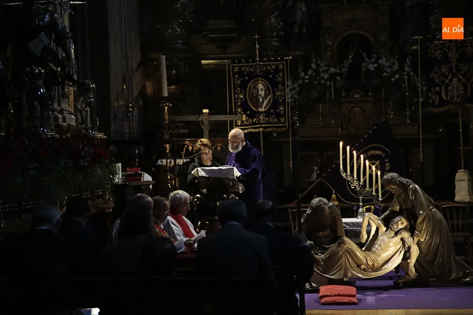 Recuperar ritos perdidos en el tiempo. La Congregación de Jesús Nazareno ha recuperado en la mañana de este Sábado Santo el "officium matutinum" para la Semana Santa de Salamanca. Una meditación ante la el Santo Entierro, imagen representante del Misterio de este día.