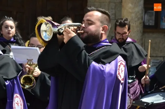 Una vez los pasos de La Dolorosa y Jesús Resucitado fueron introducidos en la Iglesia de San Agustín, la Banda de Cornetas y Tambores de la Cofradía de Jesús Nazareno se dirigió a la Plaza Mayor para encargarse de poner el definitivo punto y final en las calles a la Semana Santa Mirobrigense 2019. La Banda se colocó a los pies de la Casa Consistorial para interpretar un par de marchas, que fueron seguidas por el público que por allí había, que incluso les pidió alguna más.