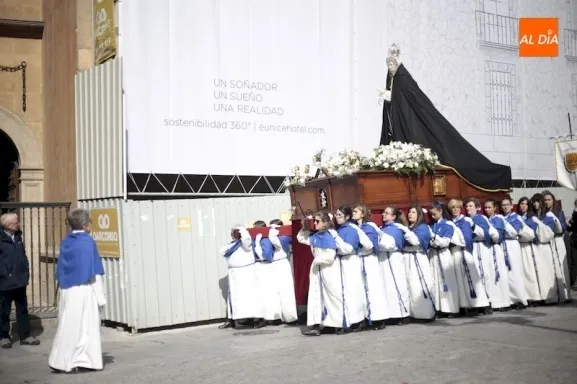 En el desfile inicial iba cubierta por un manto negro del que se despoja en el momento del encuentro con el Resucitado