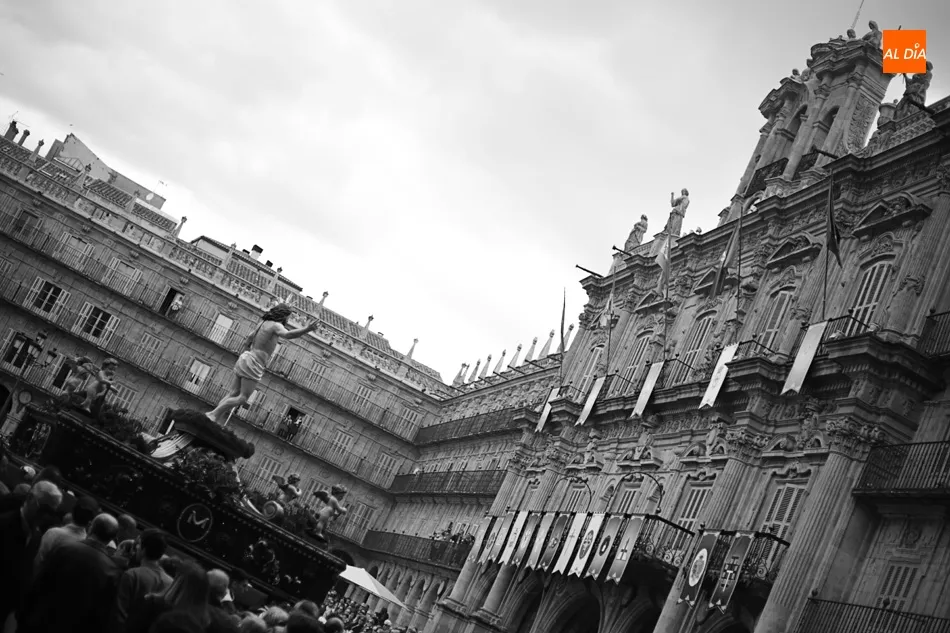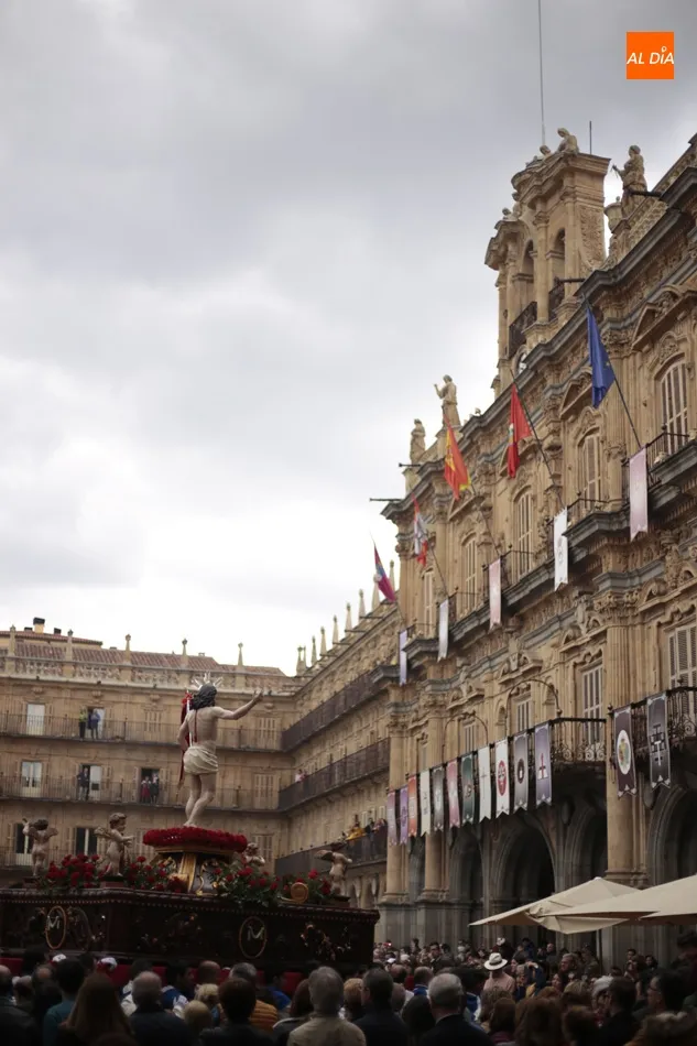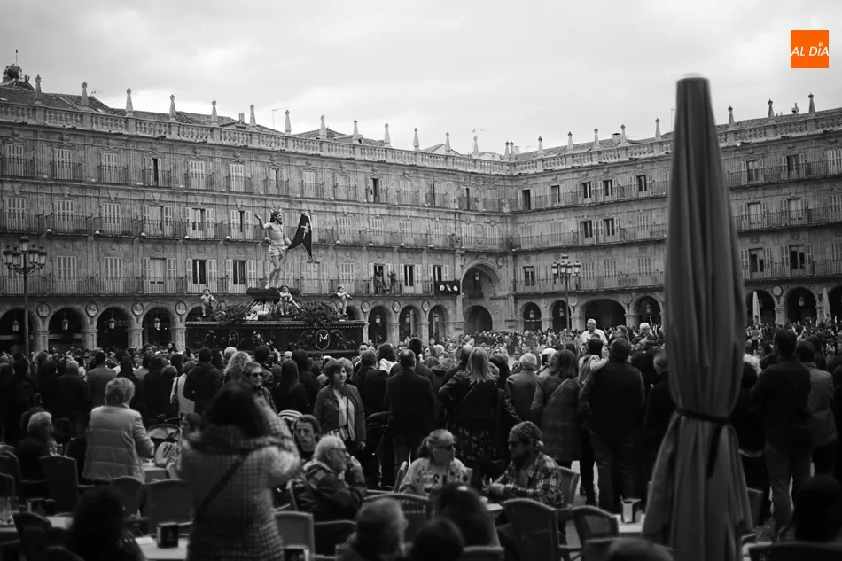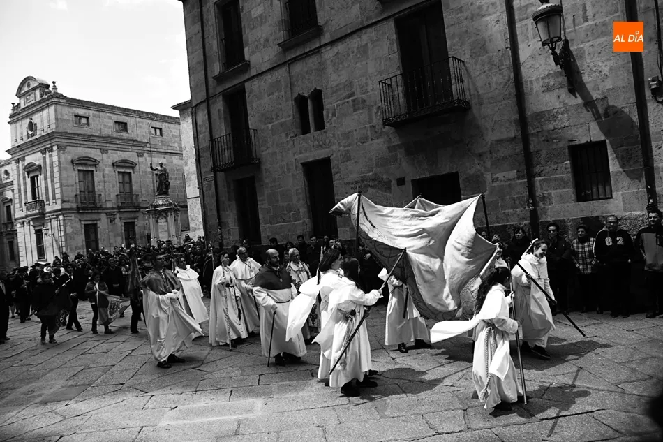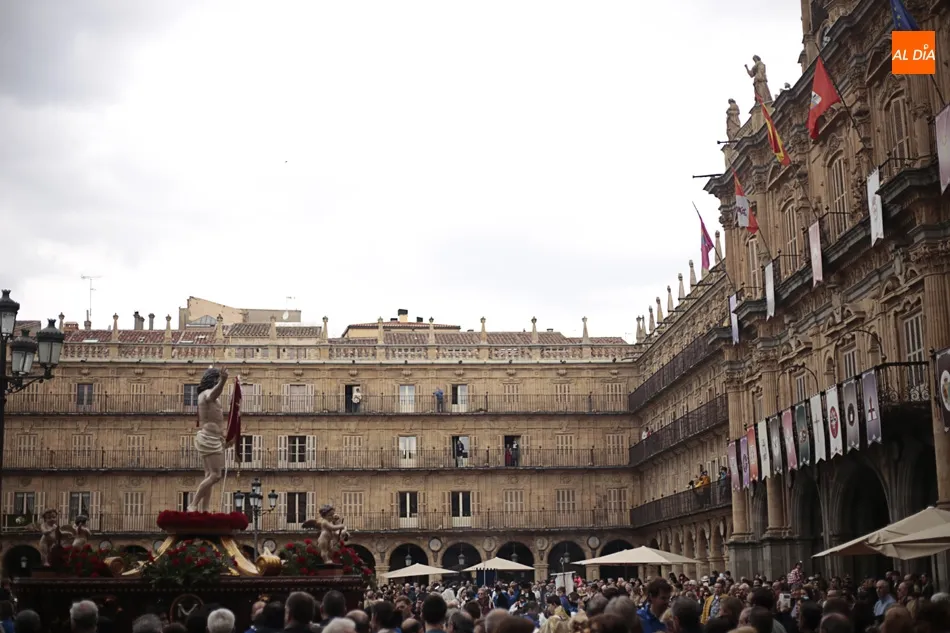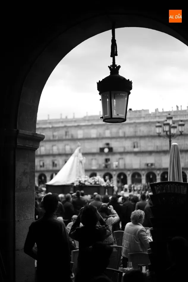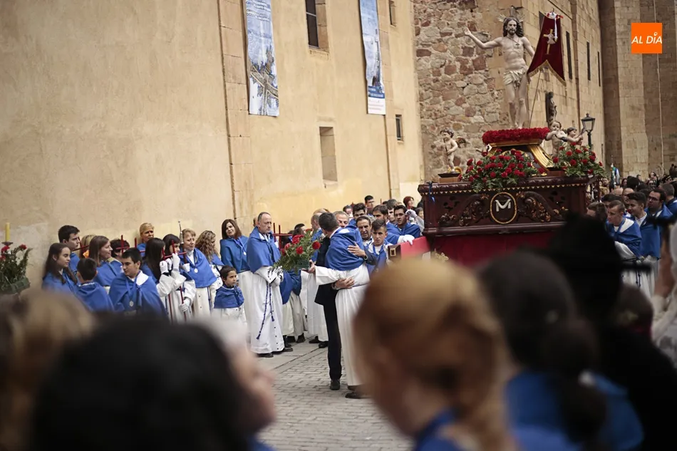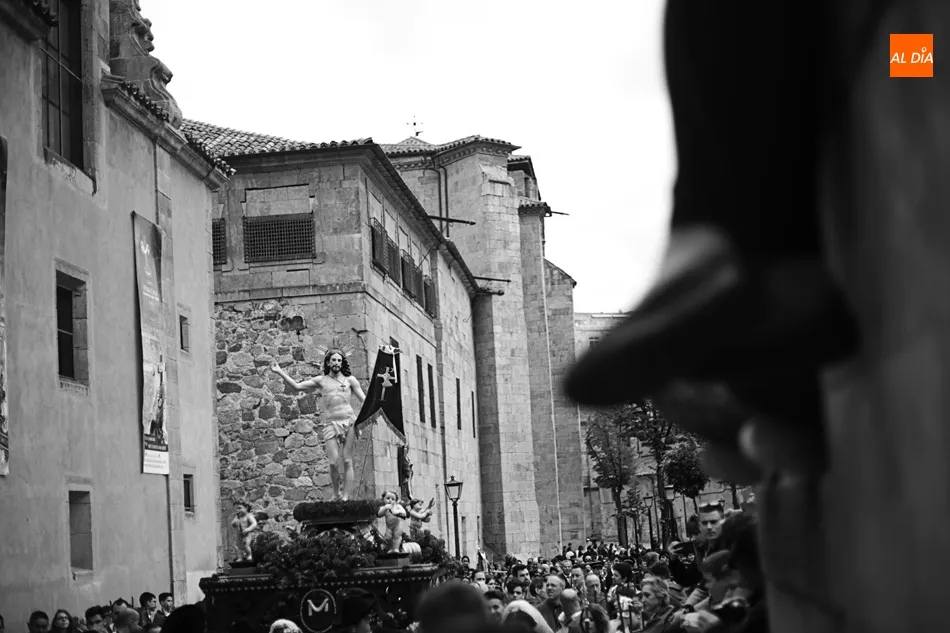 El manto negro ha caído, la Madre y el Hijo se han encontrado. Campanillas en la Rúa para abrir camino al Lignum Crucis y a a la Tres Marías. Detrás, la blanca Alegría. Mientras, el Resucitado da la vuelta en el atrio de la Catedral antes de recibir el ?saludo? del Padre Cámara. La Rúa es el camino de regreso, del último regreso. Por la Plaza Mayor ya sólo queda el poso. Jesús Resucitado baja casi hasta el suelo para abandonar el ágora salmantina a la vez que se empiezan a desmontar algunas de la balconeras de los devotos a su hermandad. Y llega la despedida. Bailes charros antes de la vuelta a casa. Todo vuelve, a su sitio y a empezar de nuevo.