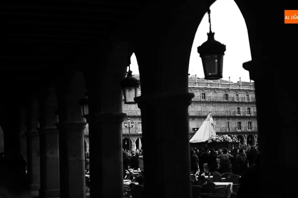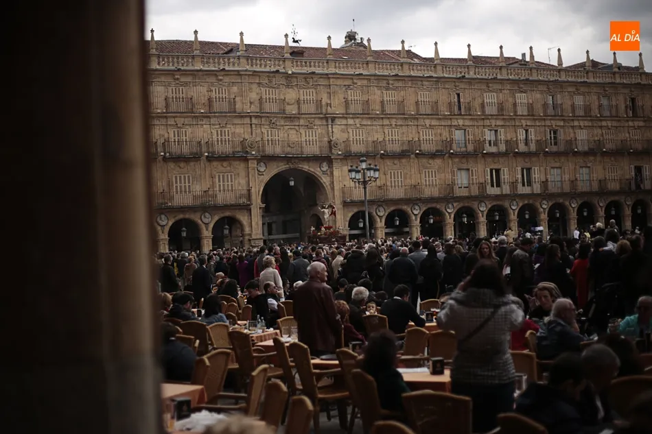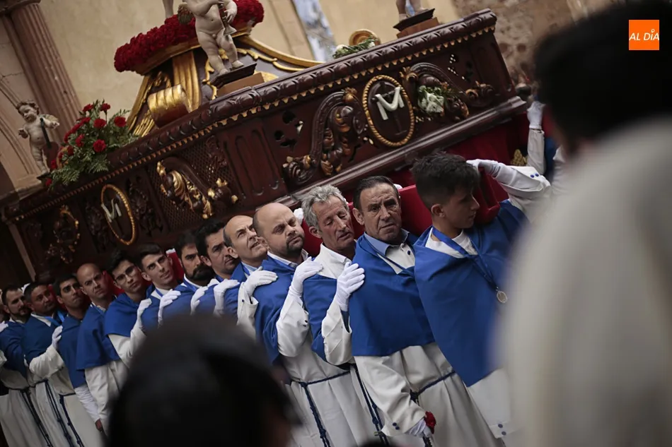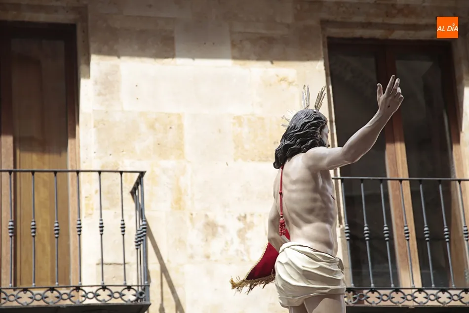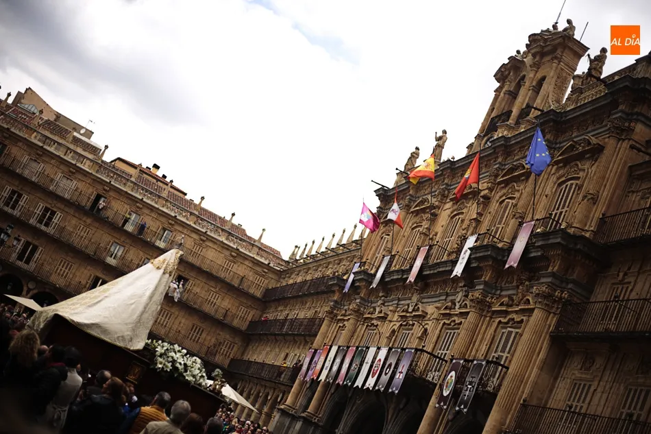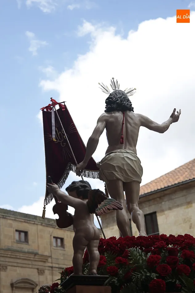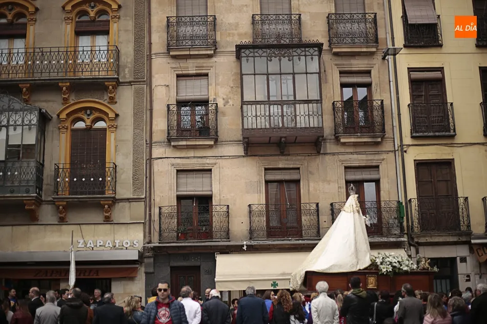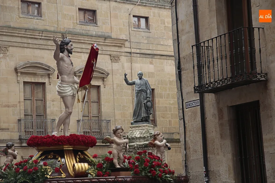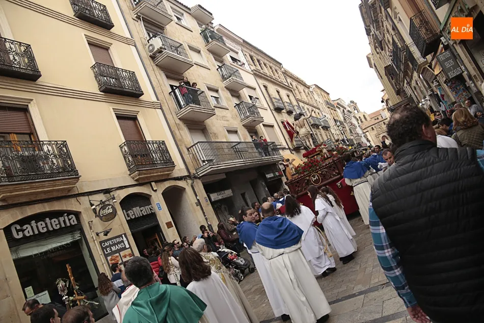 El manto negro ha caído, la Madre y el Hijo se han encontrado. Campanillas en la Rúa para abrir camino al Lignum Crucis y a a la Tres Marías. Detrás, la blanca Alegría. Mientras, el Resucitado da la vuelta en el atrio de la Catedral antes de recibir el ?saludo? del Padre Cámara. La Rúa es el camino de regreso, del último regreso. Por la Plaza Mayor ya sólo queda el poso. Jesús Resucitado baja casi hasta el suelo para abandonar el ágora salmantina a la vez que se empiezan a desmontar algunas de la balconeras de los devotos a su hermandad. Y llega la despedida. Bailes charros antes de la vuelta a casa. Todo vuelve, a su sitio y a empezar de nuevo.