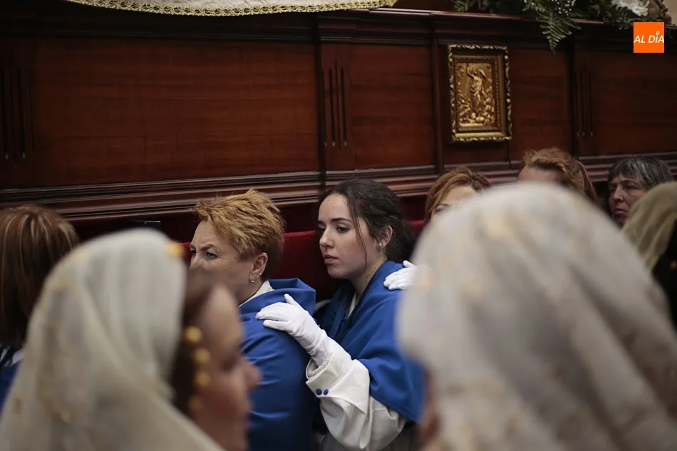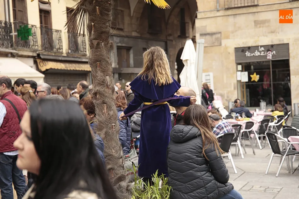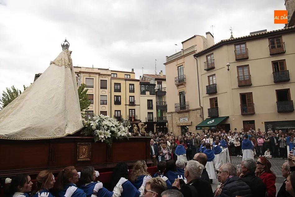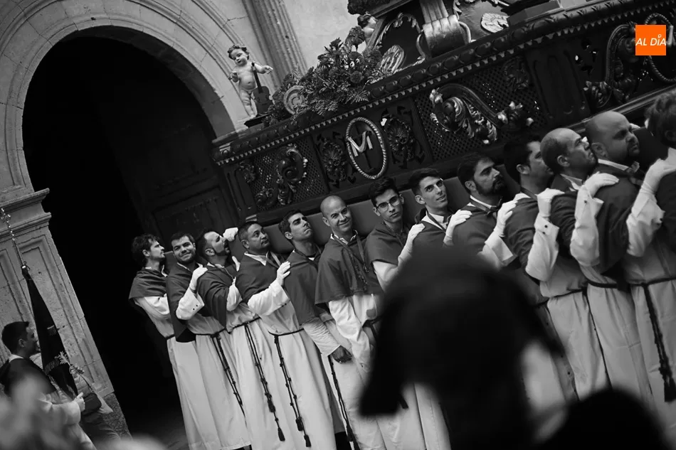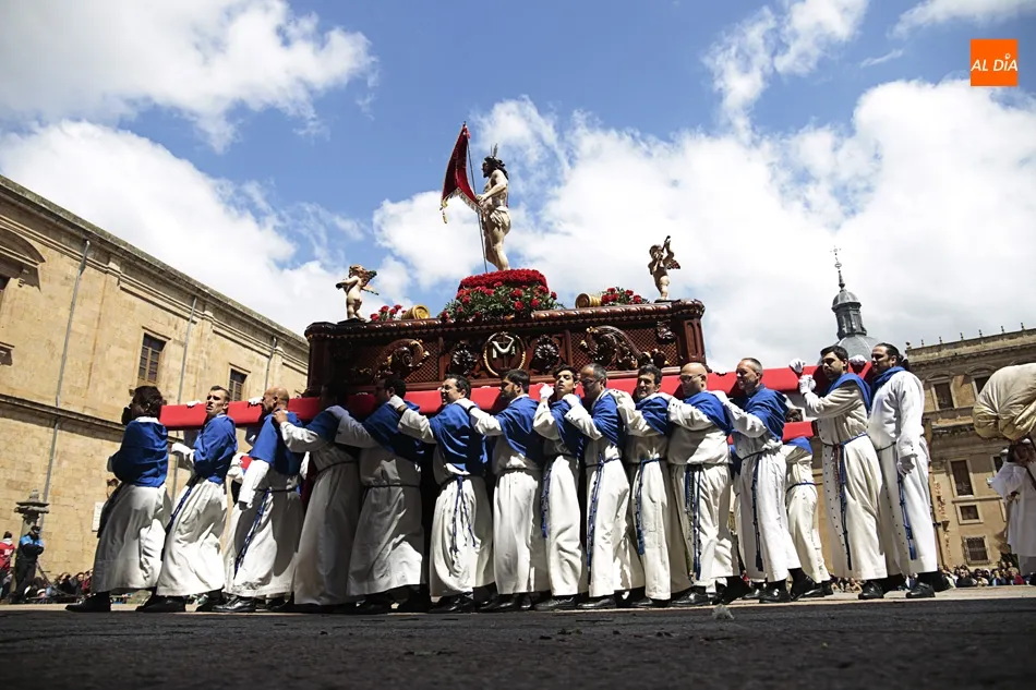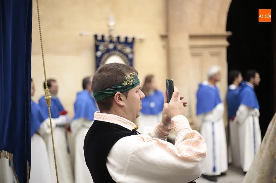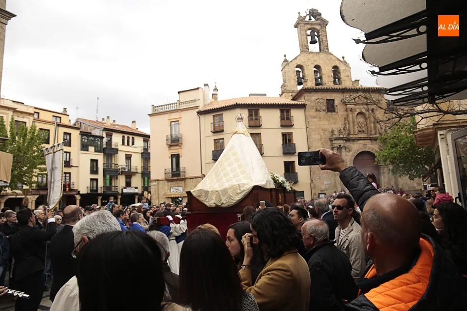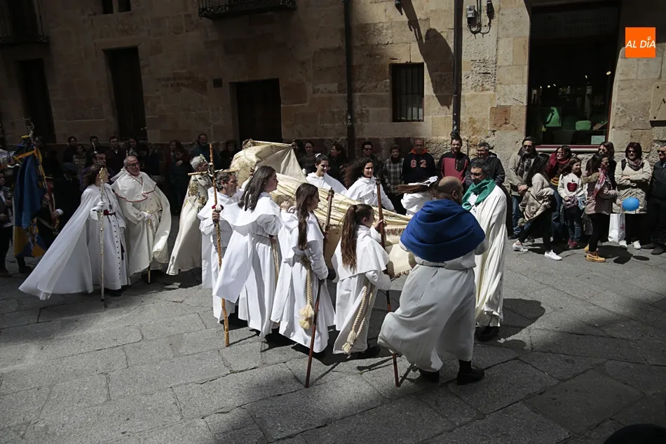 El manto negro ha caído, la Madre y el Hijo se han encontrado. Campanillas en la Rúa para abrir camino al Lignum Crucis y a a la Tres Marías. Detrás, la blanca Alegría. Mientras, el Resucitado da la vuelta en el atrio de la Catedral antes de recibir el ?saludo? del Padre Cámara. La Rúa es el camino de regreso, del último regreso. Por la Plaza Mayor ya sólo queda el poso. Jesús Resucitado baja casi hasta el suelo para abandonar el ágora salmantina a la vez que se empiezan a desmontar algunas de la balconeras de los devotos a su hermandad. Y llega la despedida. Bailes charros antes de la vuelta a casa. Todo vuelve, a su sitio y a empezar de nuevo.