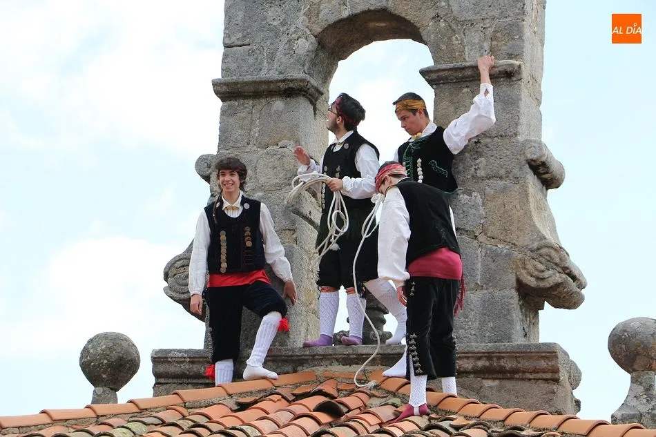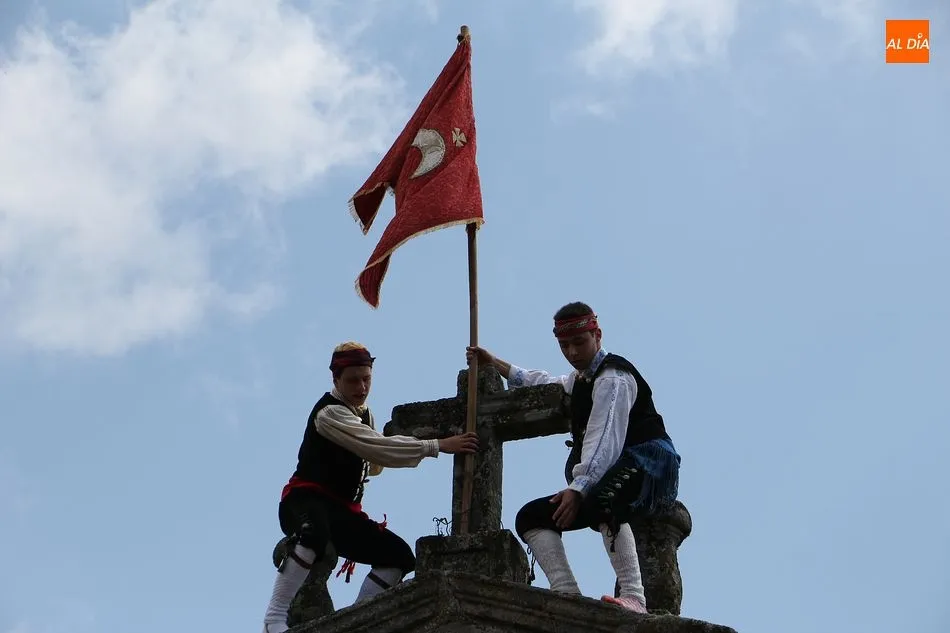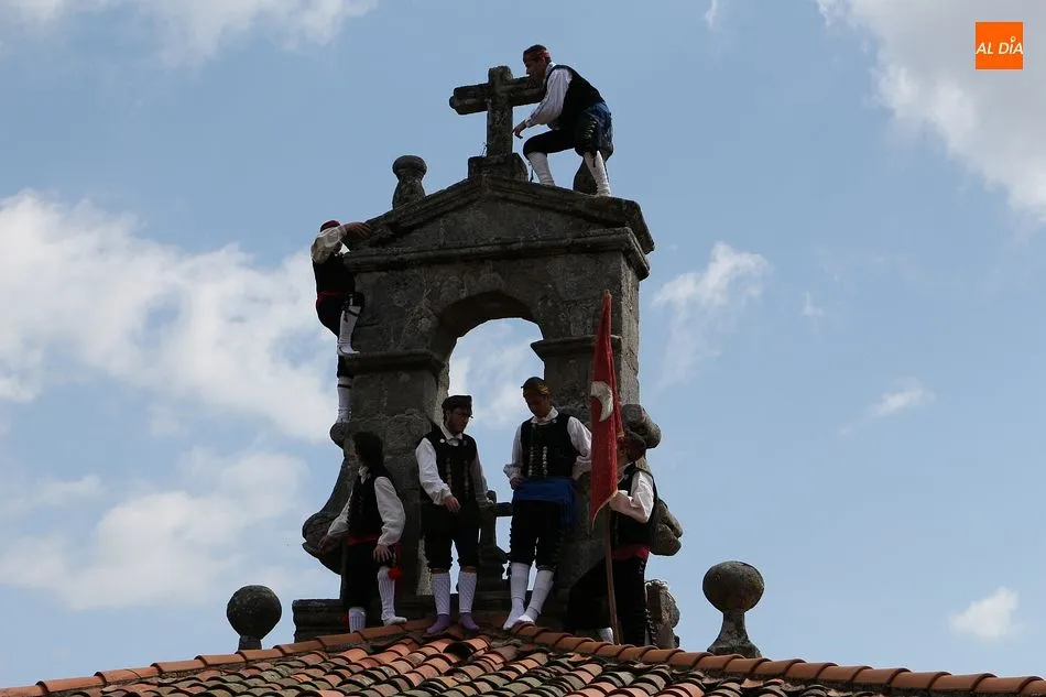 Los Quintos de La Alberca han cumplido con la tradición del pendón y han acudido a la ermita de San Blas para subir la histórica bandera a lo más alto. Numeroso público se ha dado cita en el lugar para presenciar esta antigua tradición local.