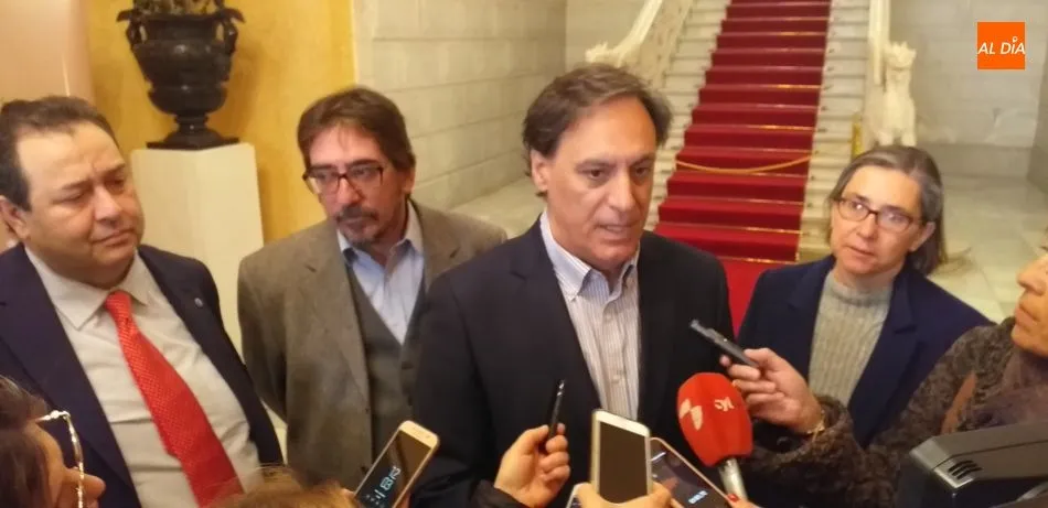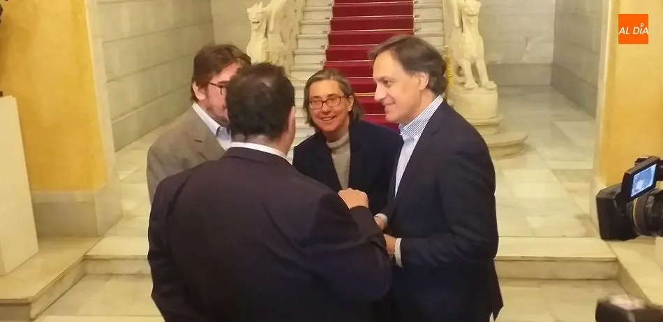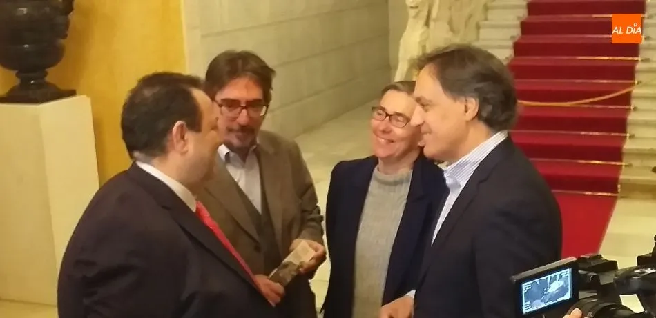 El alcalde, Carlos García Carbayo, acompañado del presidente de AESCO, Benjamín Crespo, y de tres hijos del escritor, Fernanda, Juan Pablo y Jaime, han visitado a los libreros
